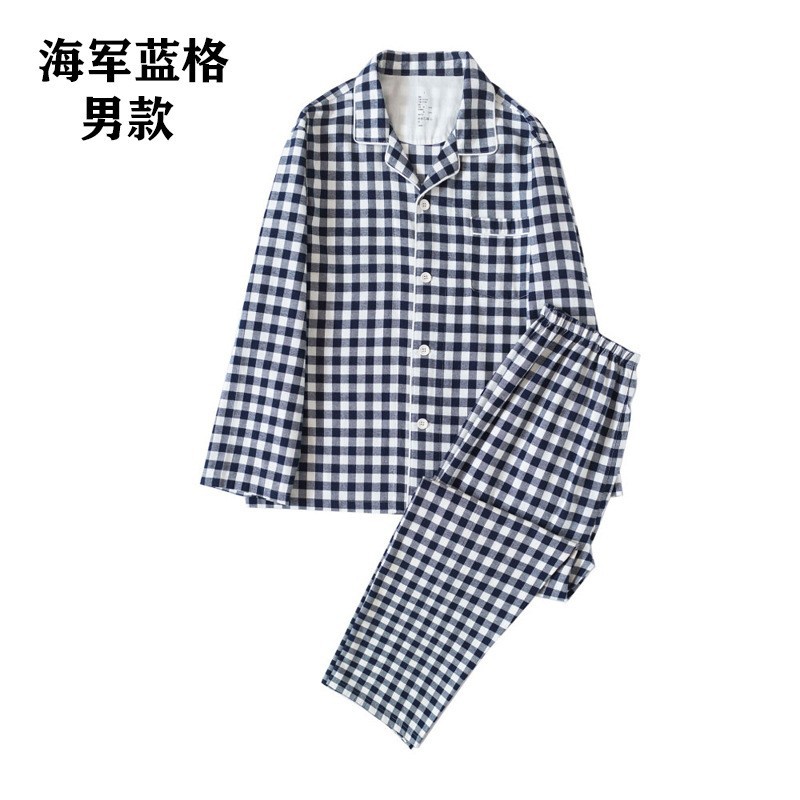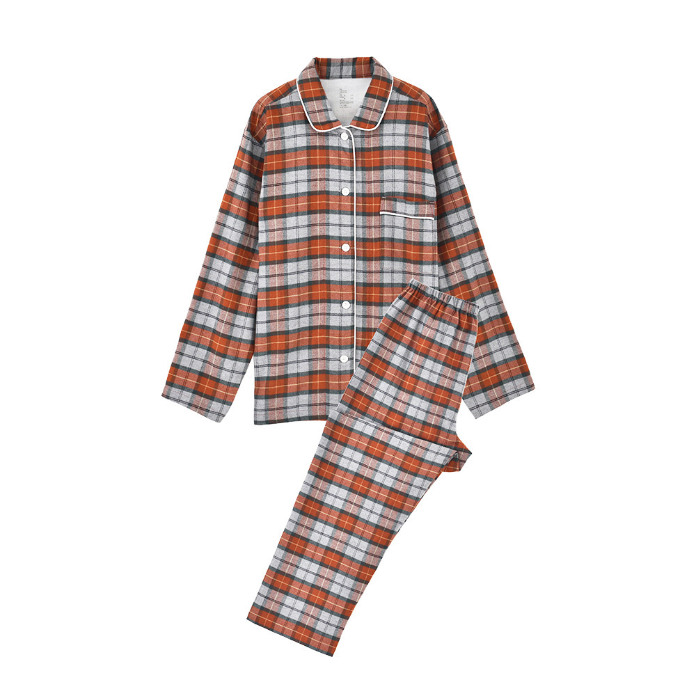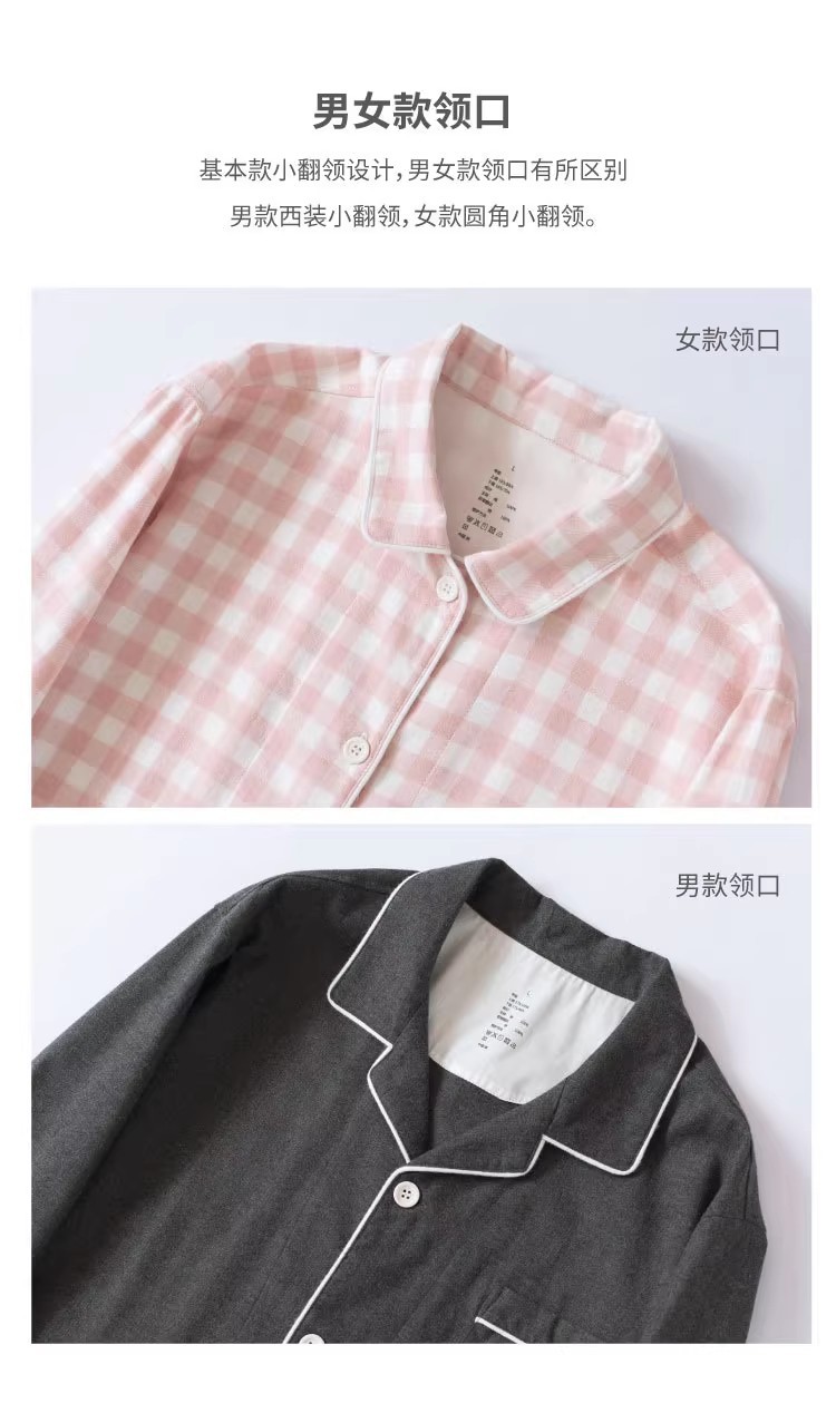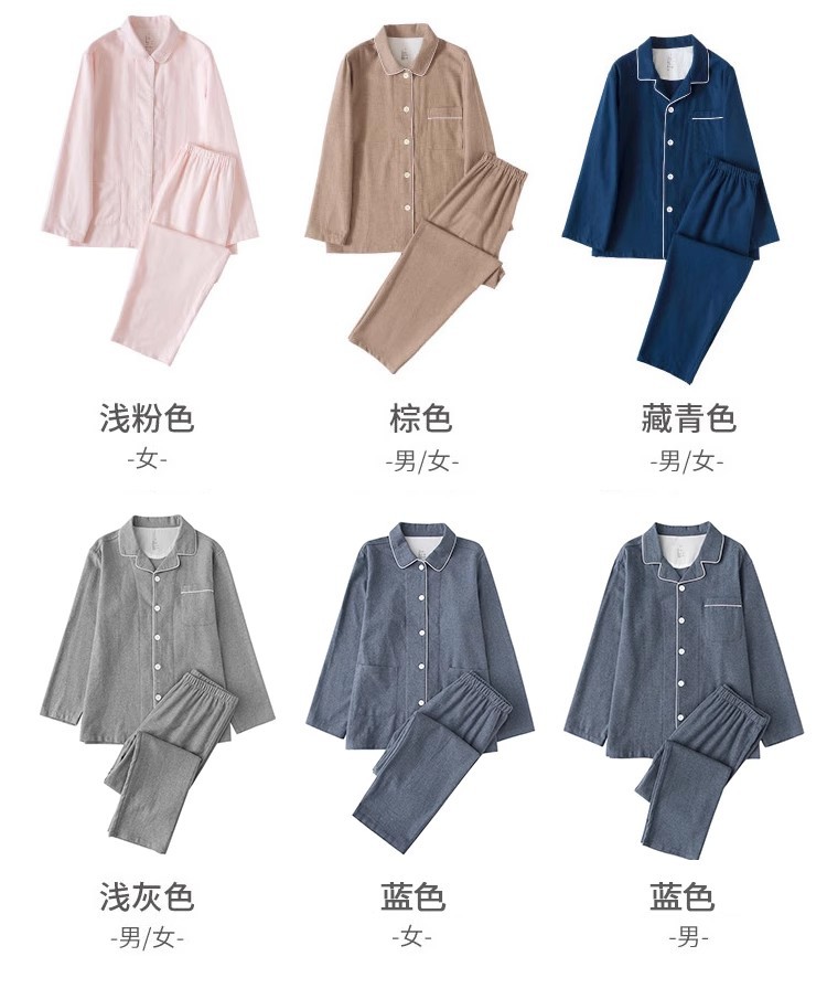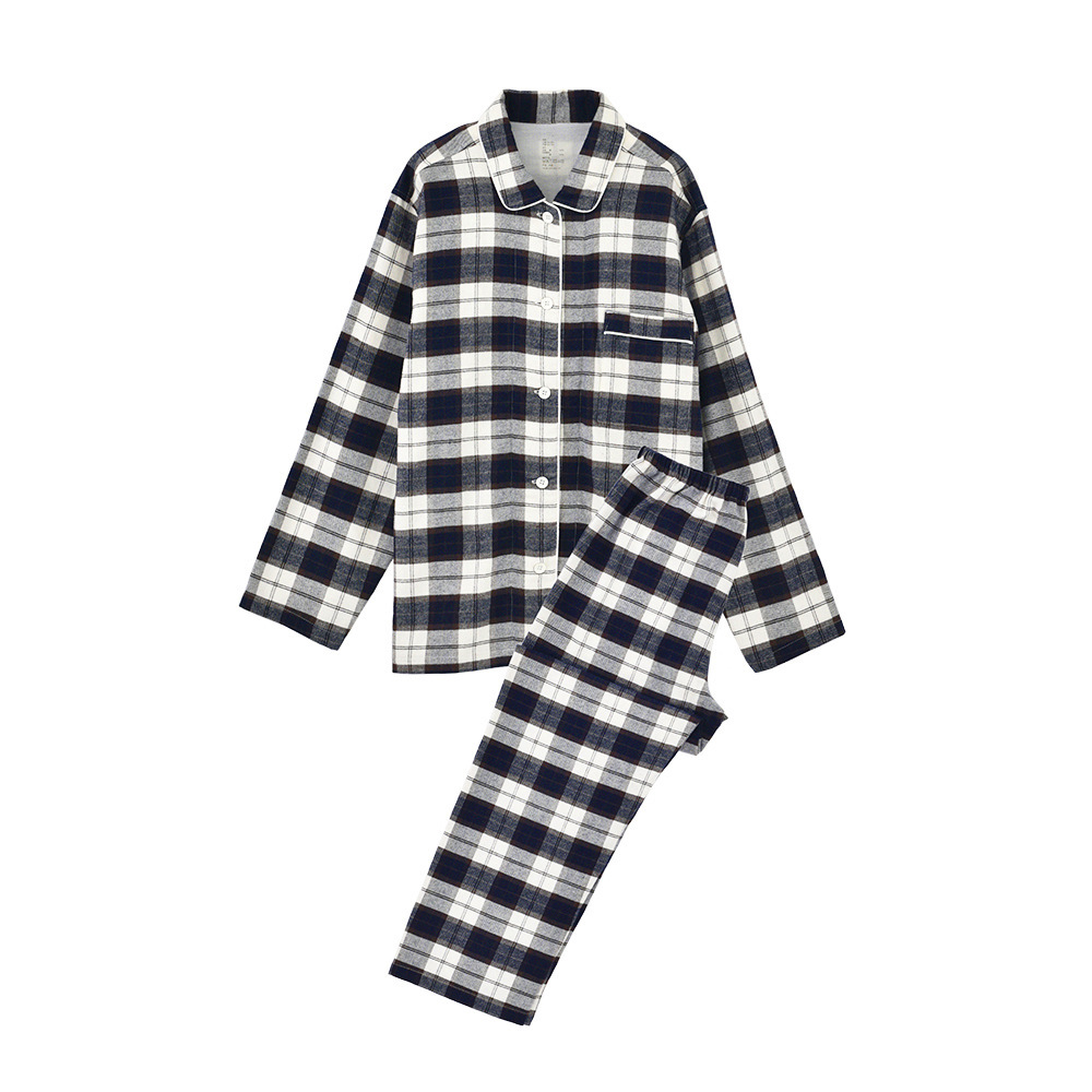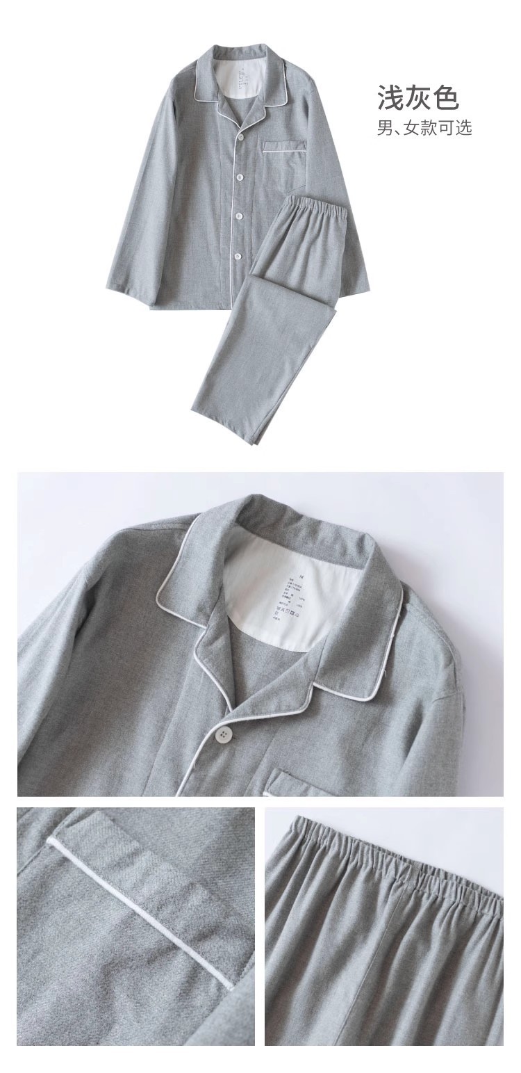일본 무인쇄 플란넬 잠옷, 순면, 양질, 남성용 및 여성용 사이드 심이 없는 가정복 세트, 가을 겨울 순면 기모스토어 가기