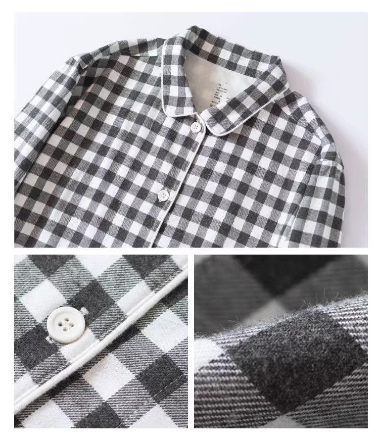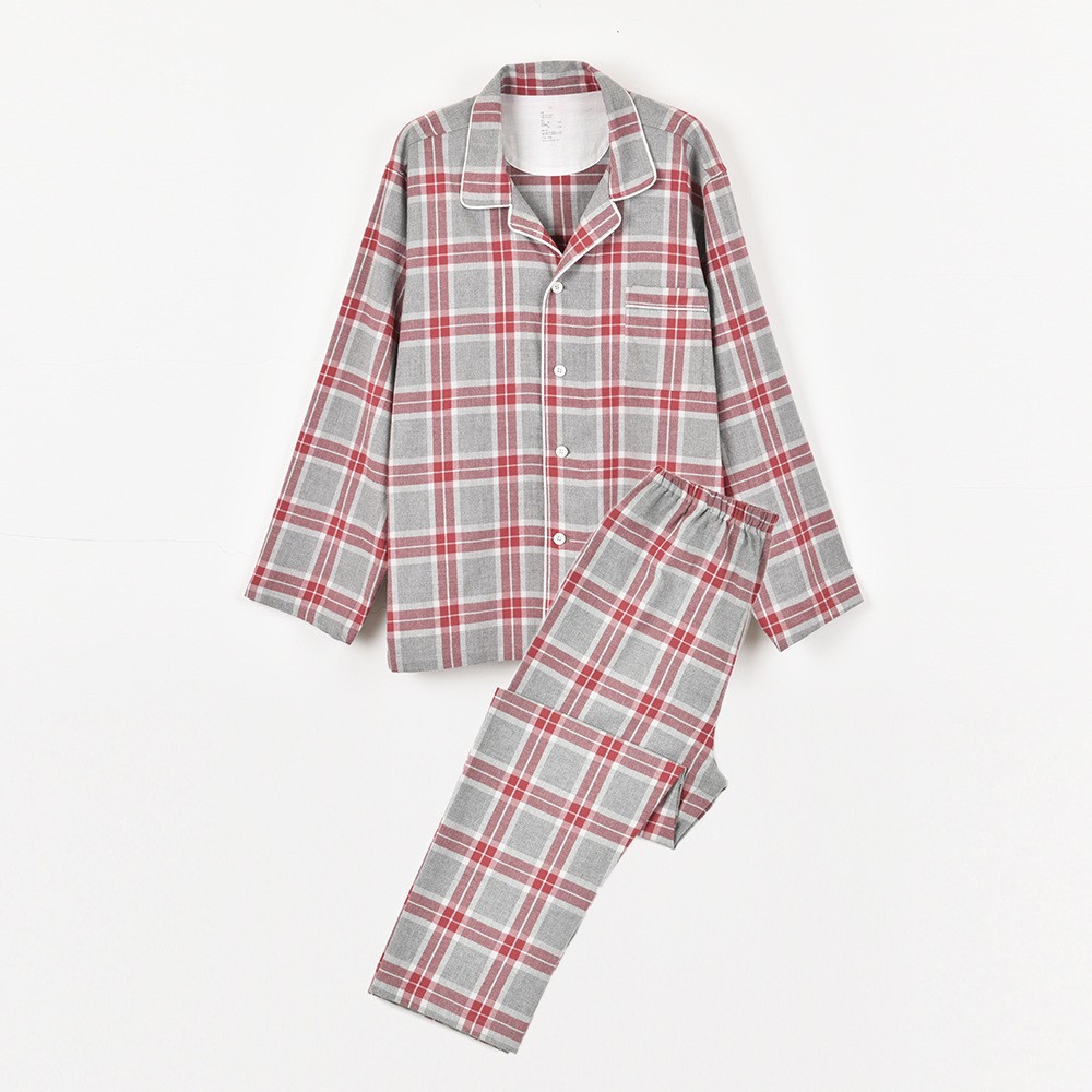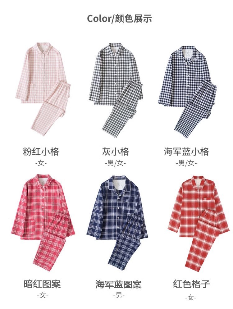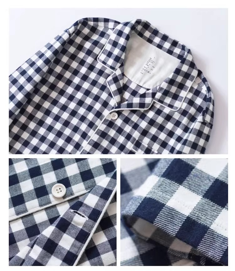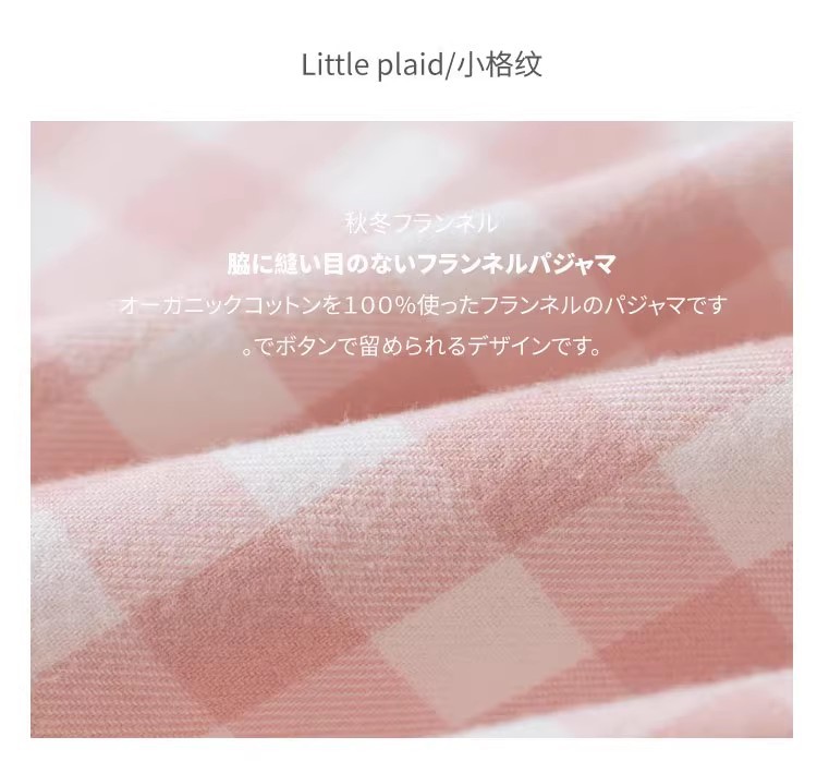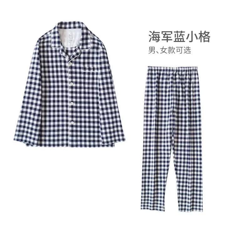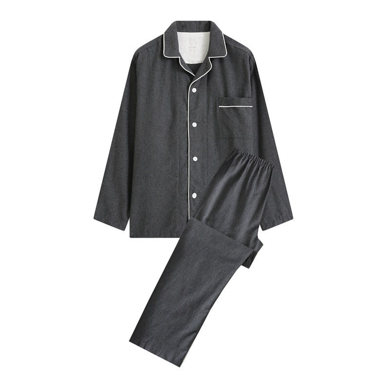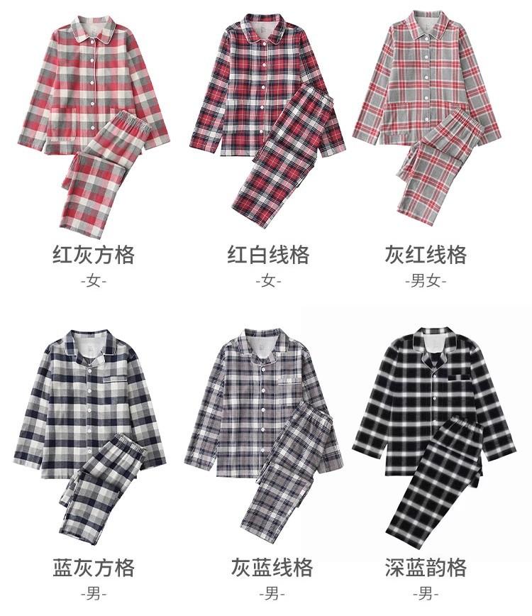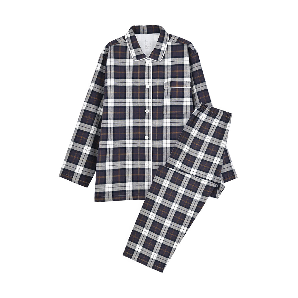 일본 무인쇄 플란넬 잠옷, 순면, 양질, 남성용 및 여성용 사이드 심이 없는 가정복 세트, 가을 겨울 순면 기모스토어 가기