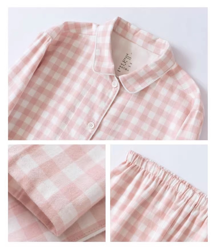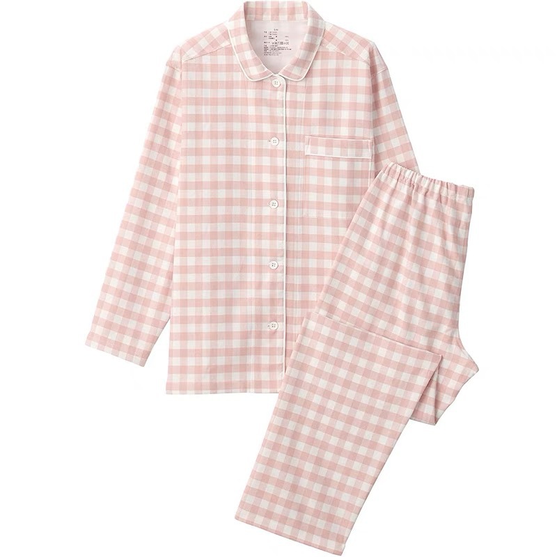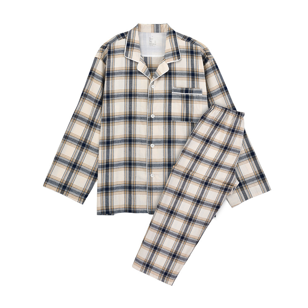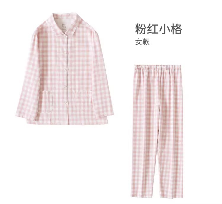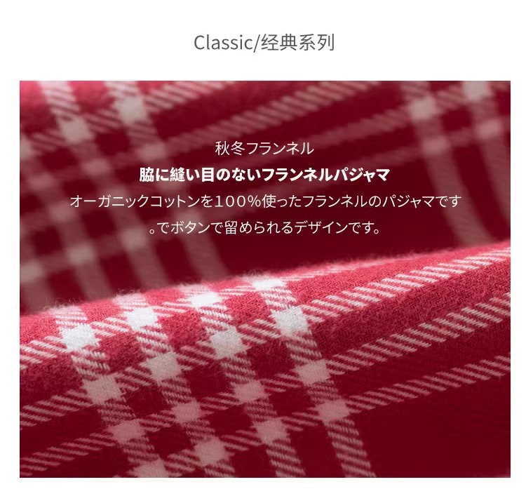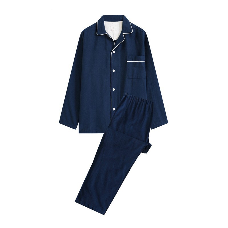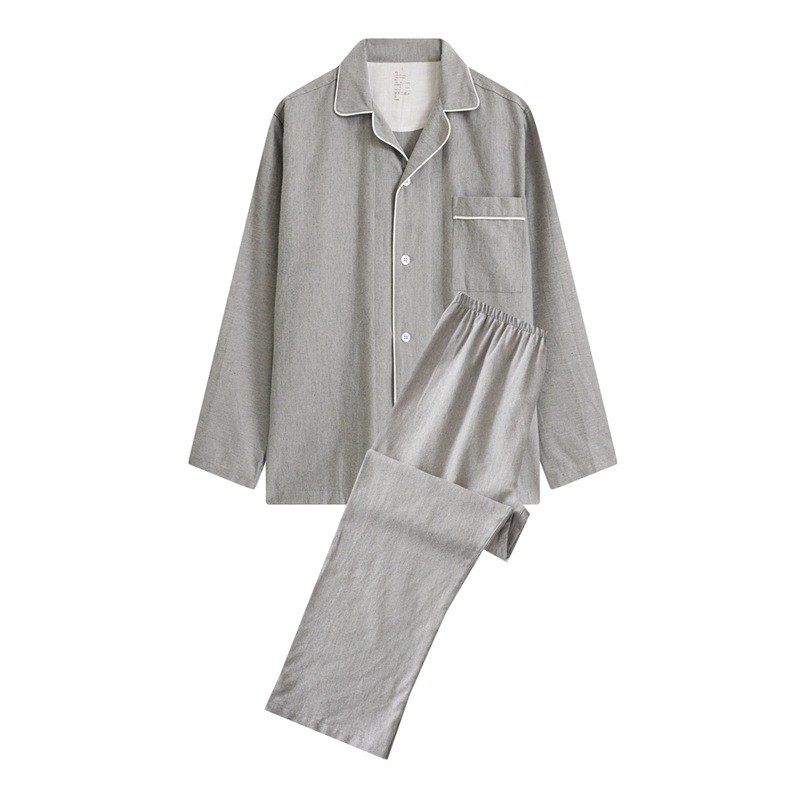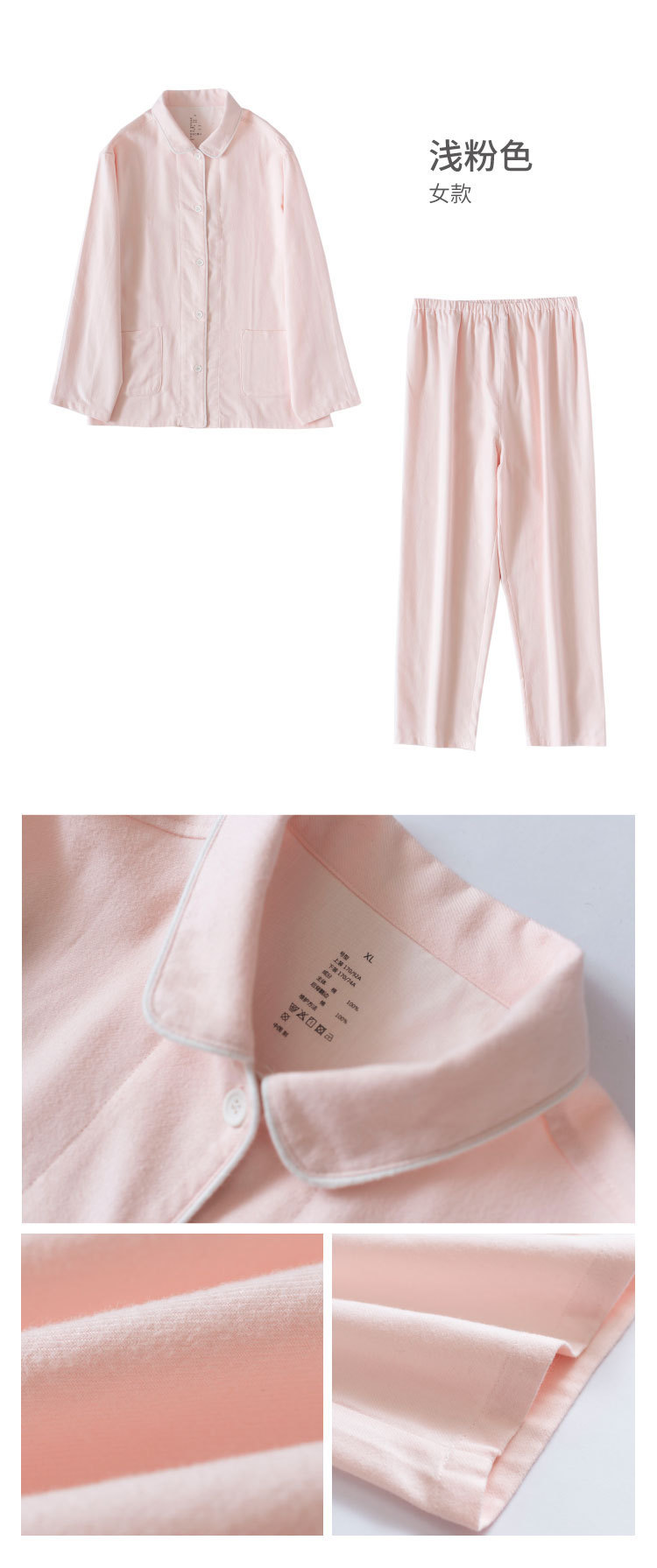 일본 무인쇄 플란넬 잠옷, 순면, 양질, 남성용 및 여성용 사이드 심이 없는 가정복 세트, 가을 겨울 순면 기모스토어 가기