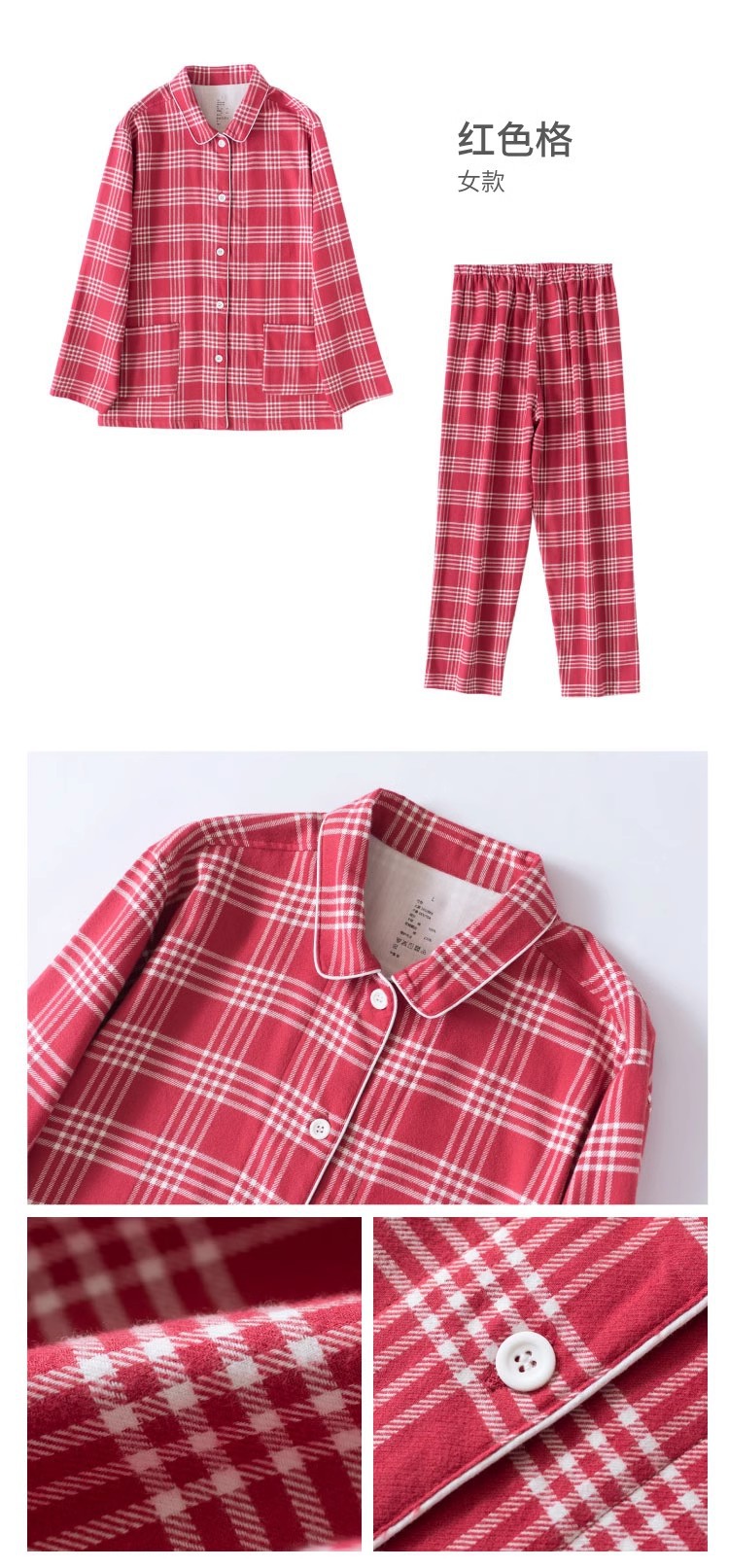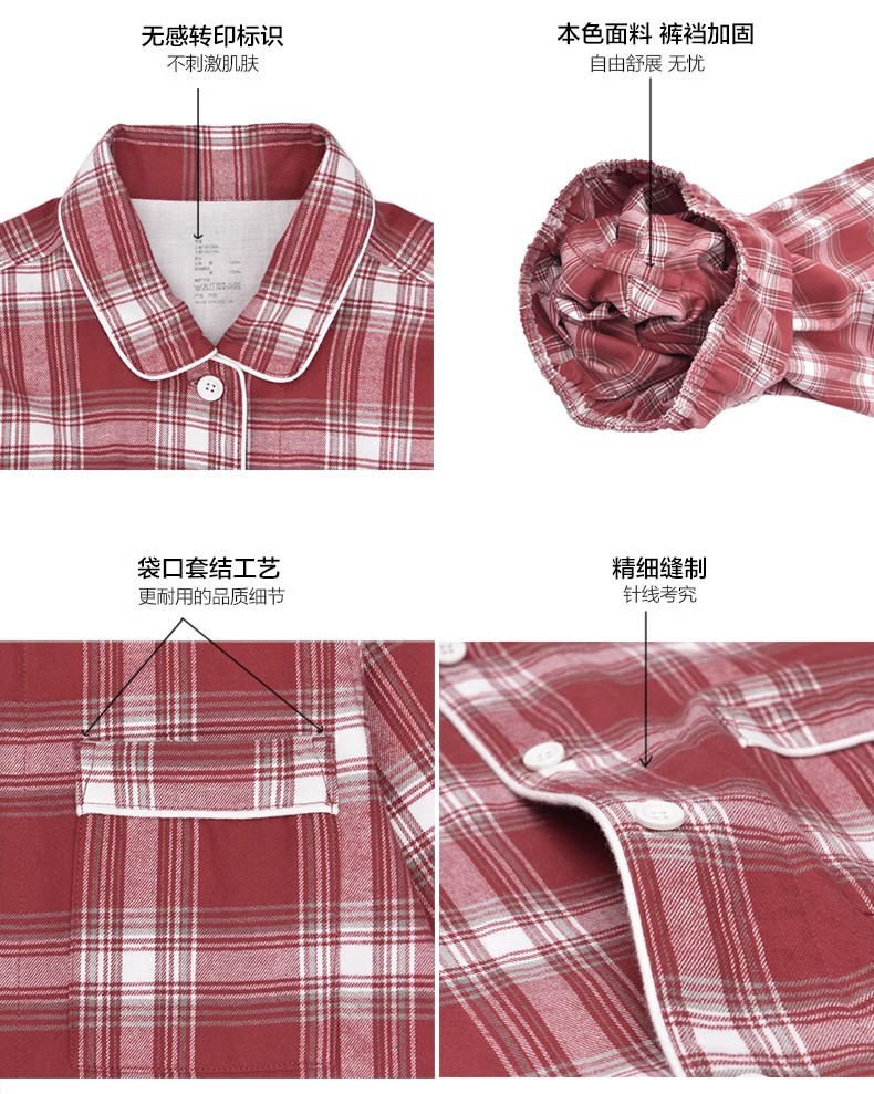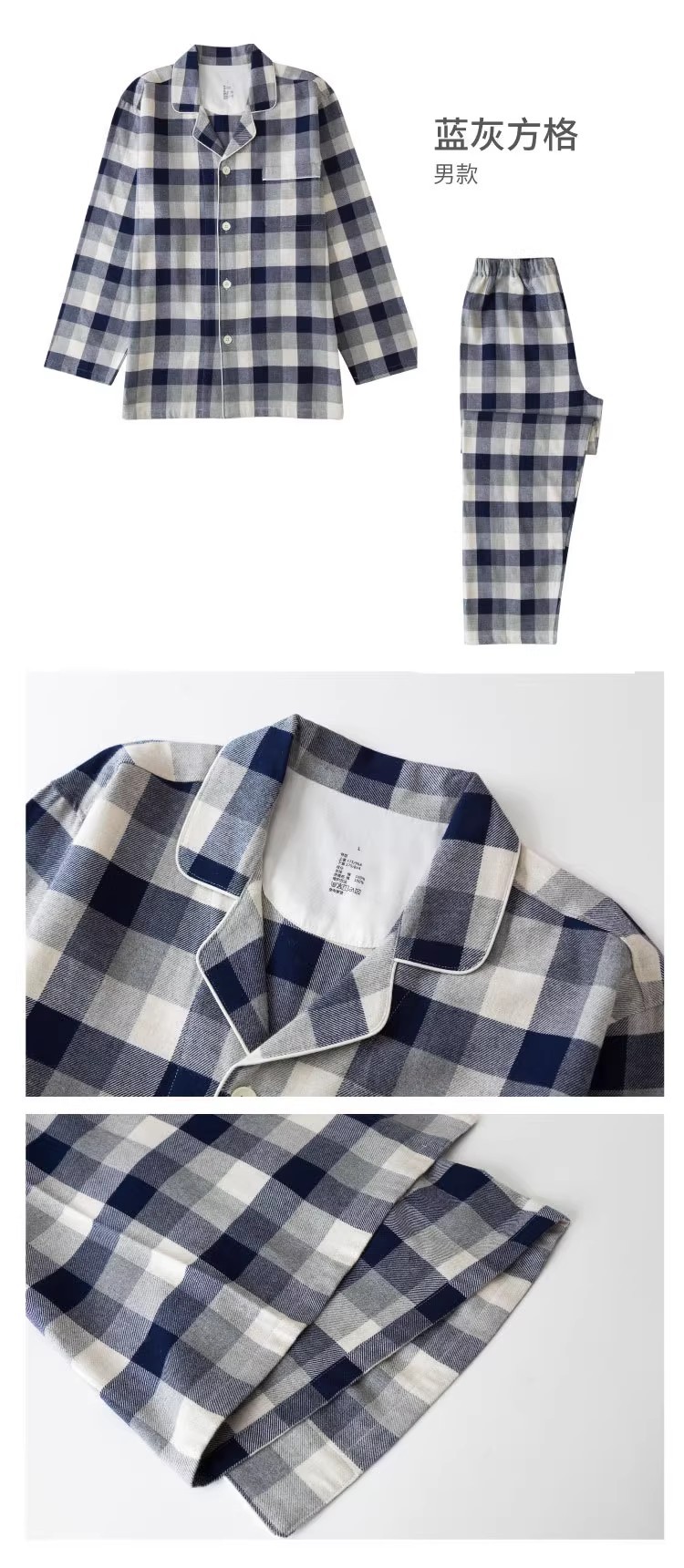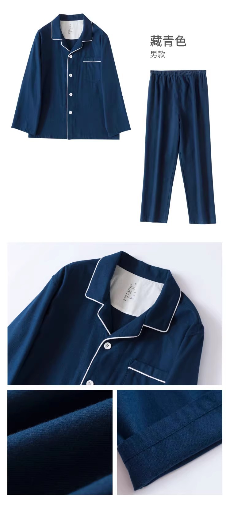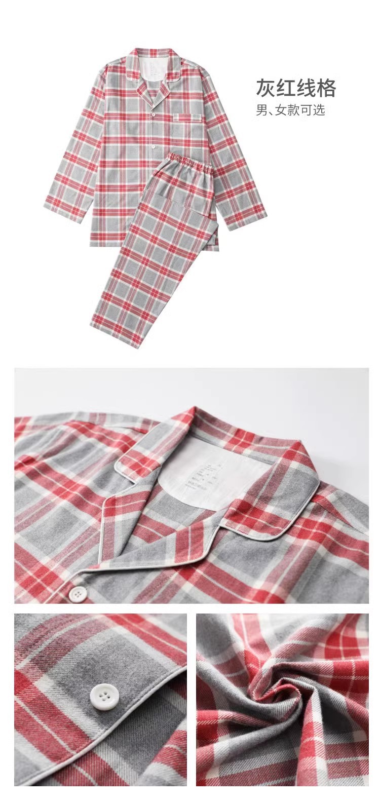 일본 무인쇄 플란넬 잠옷, 순면, 양질, 남성용 및 여성용 사이드 심이 없는 가정복 세트, 가을 겨울 순면 기모스토어 가기