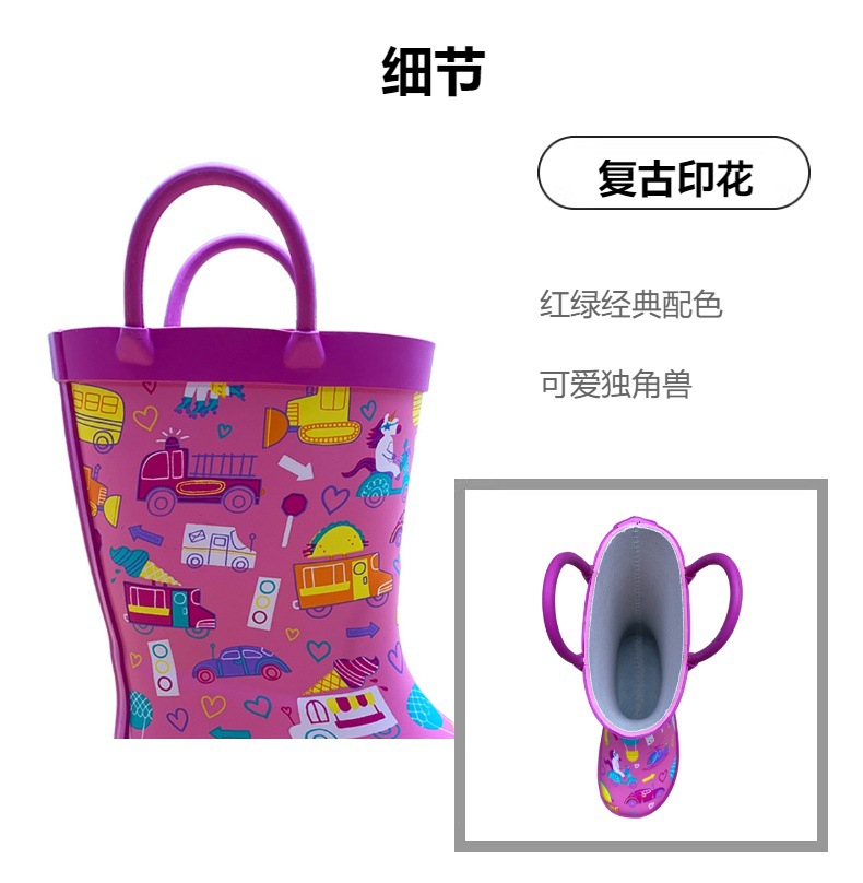 새로운 따뜻한 어린이 장화 아기 방수 미끄럼 방지 두꺼운 장화 귀여운 인쇄 어린이 물 신발 맞춤 장화스토어 가기