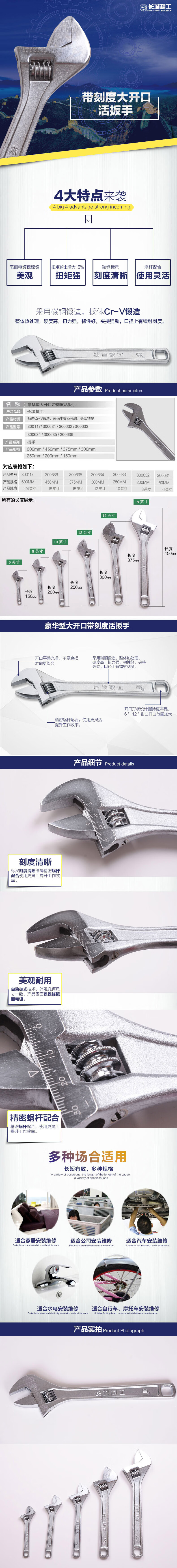 만리장성 150mm(6 인치) 스케일 조절 가능한 렌치 만리장성 세이코 조정 가능한 렌치 300스토어 가기