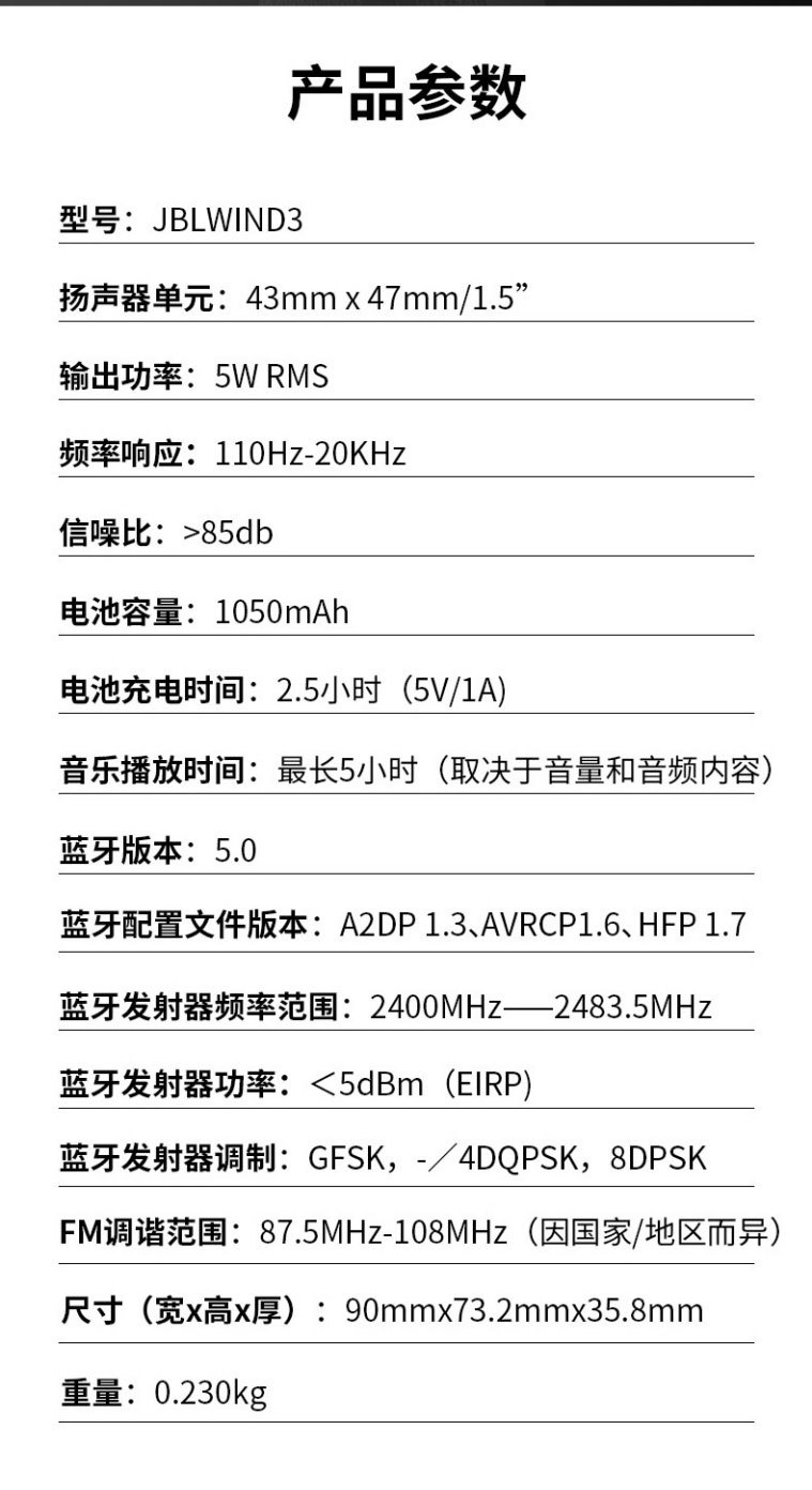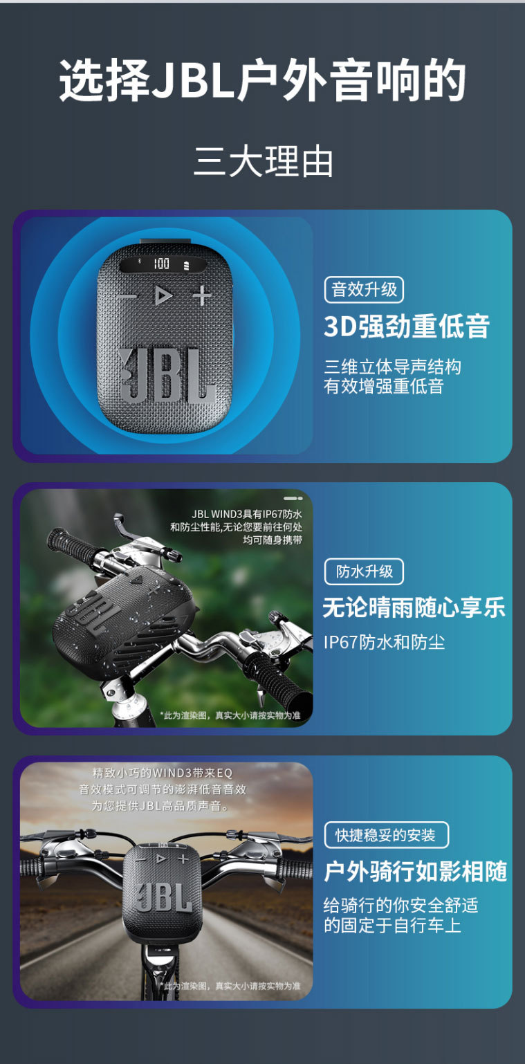 JBLwind3 무선 블루투스 오디오 야외 휴대용 카드 라디오 자전거 오디오 승마 서브 우퍼스토어 가기