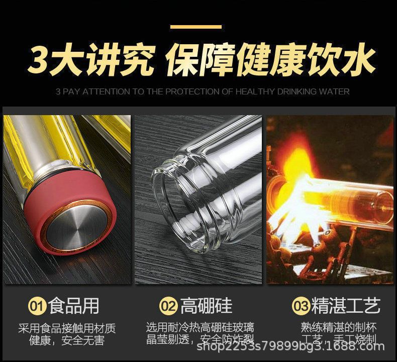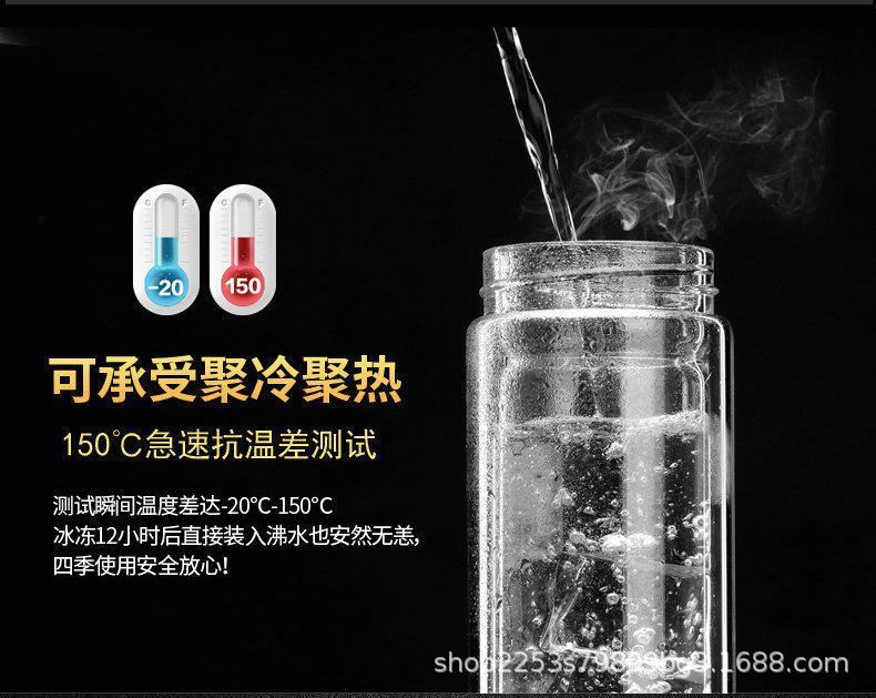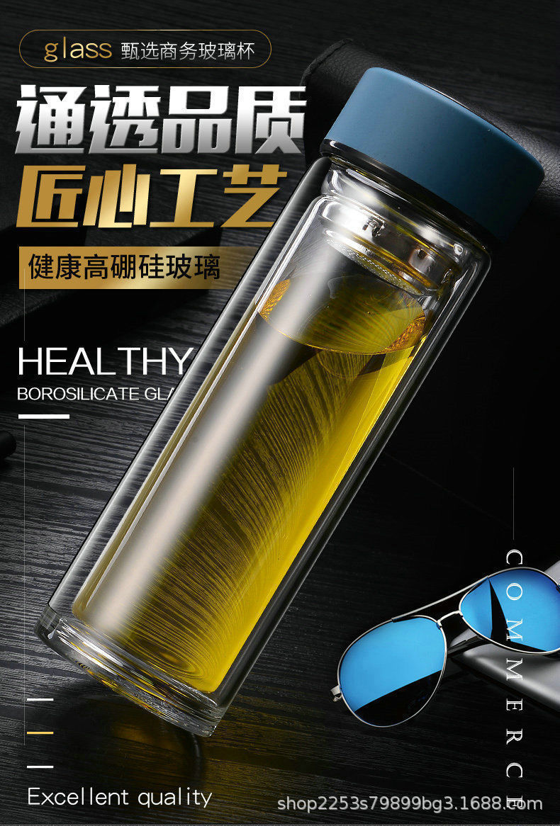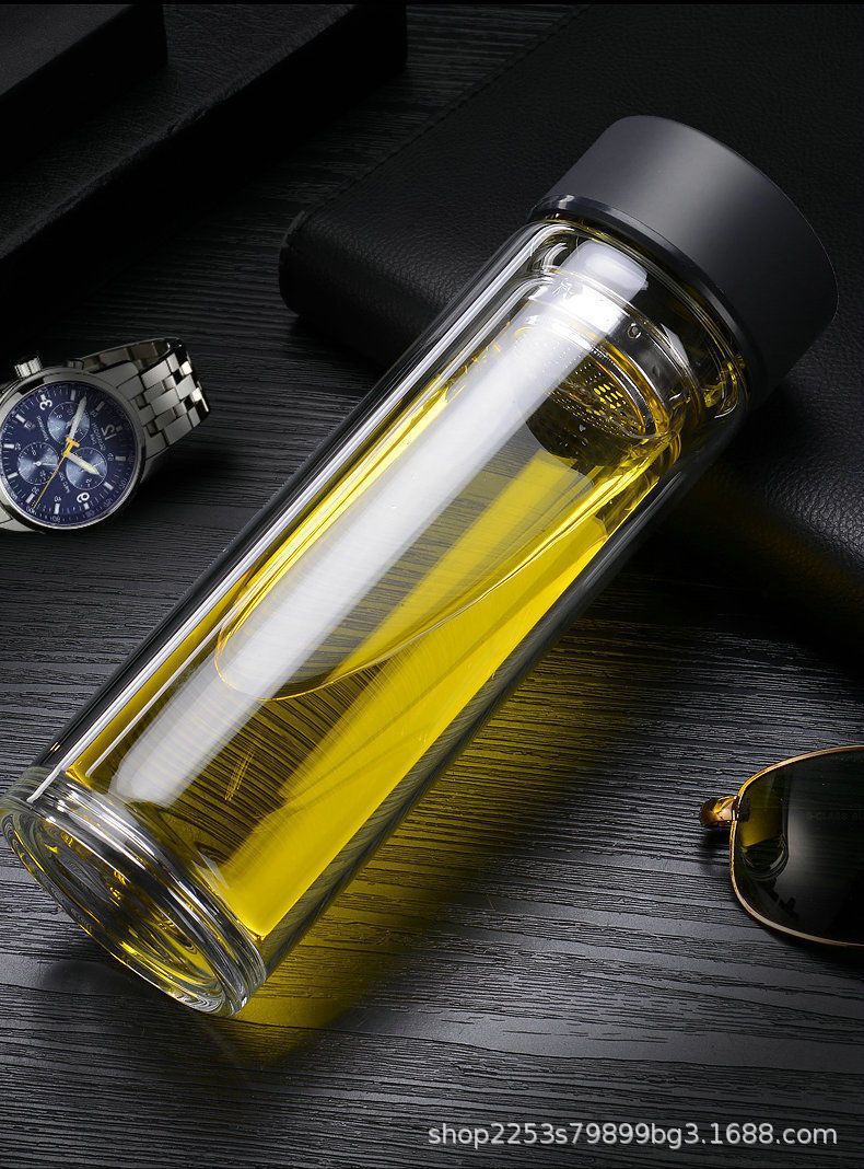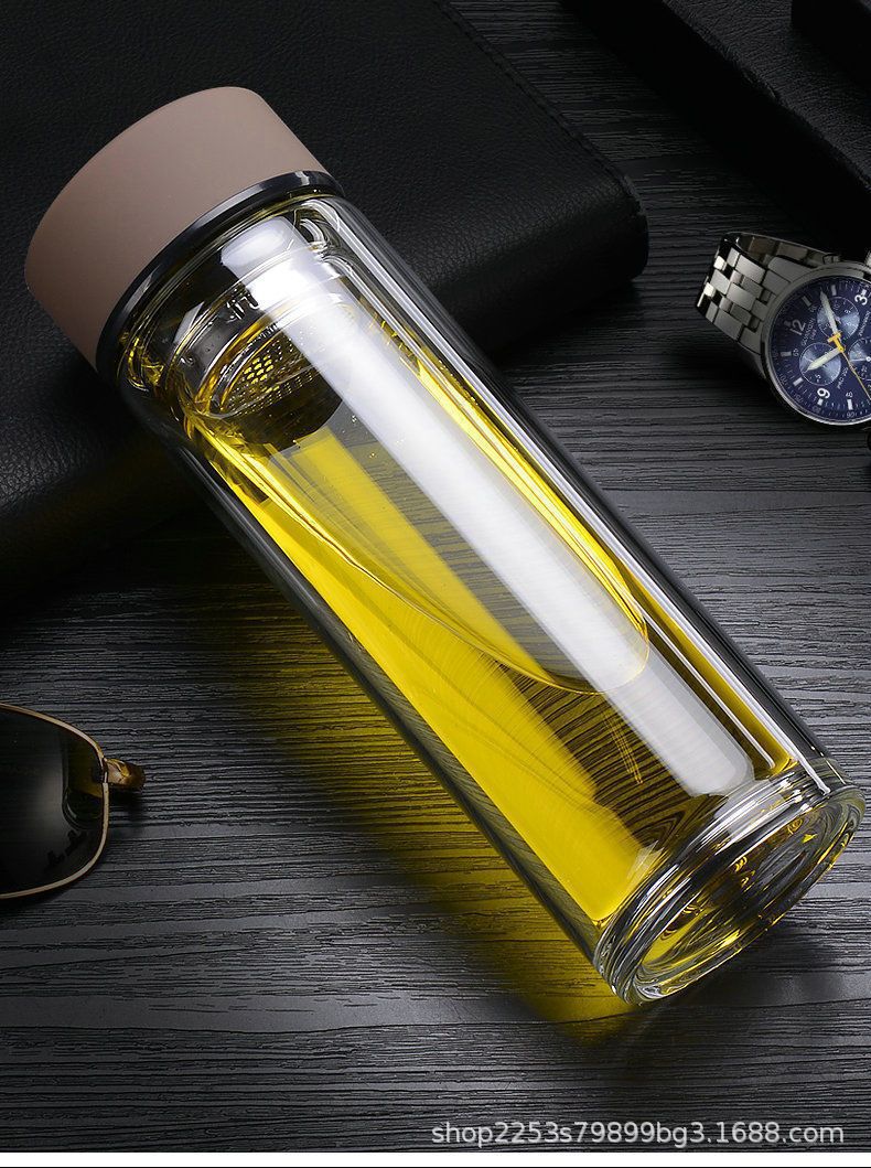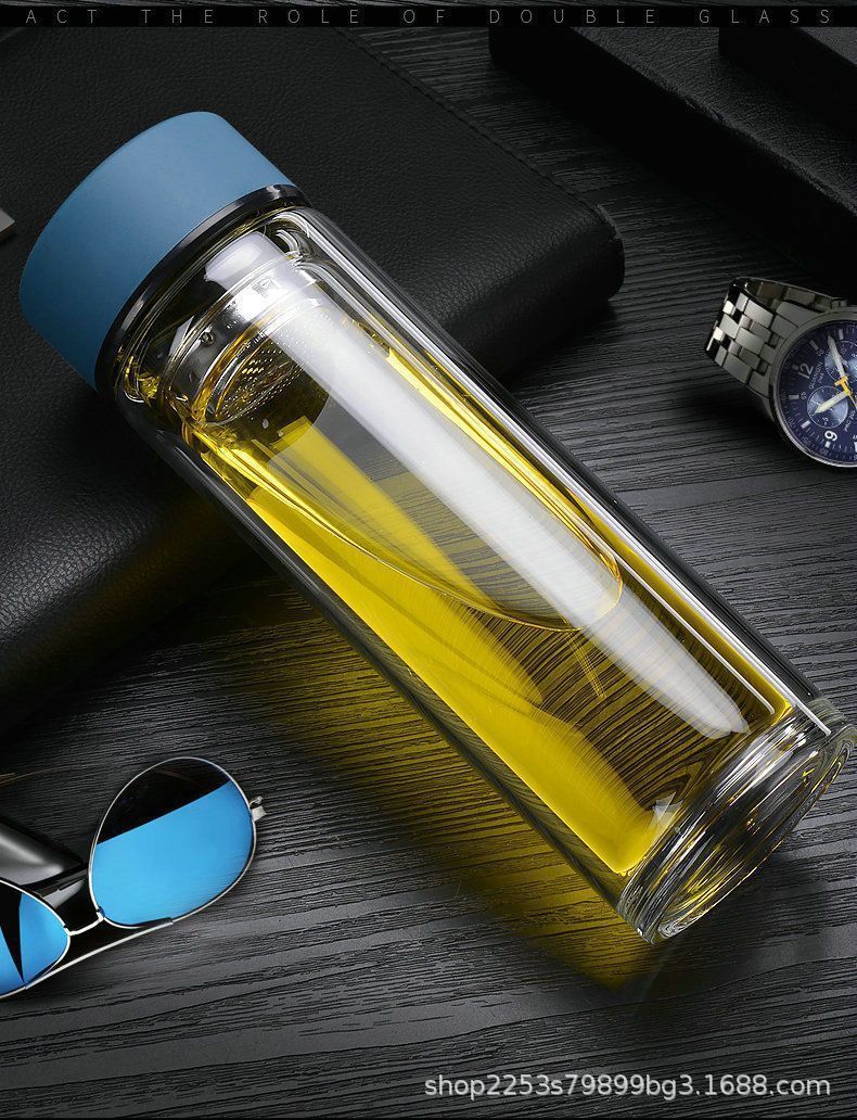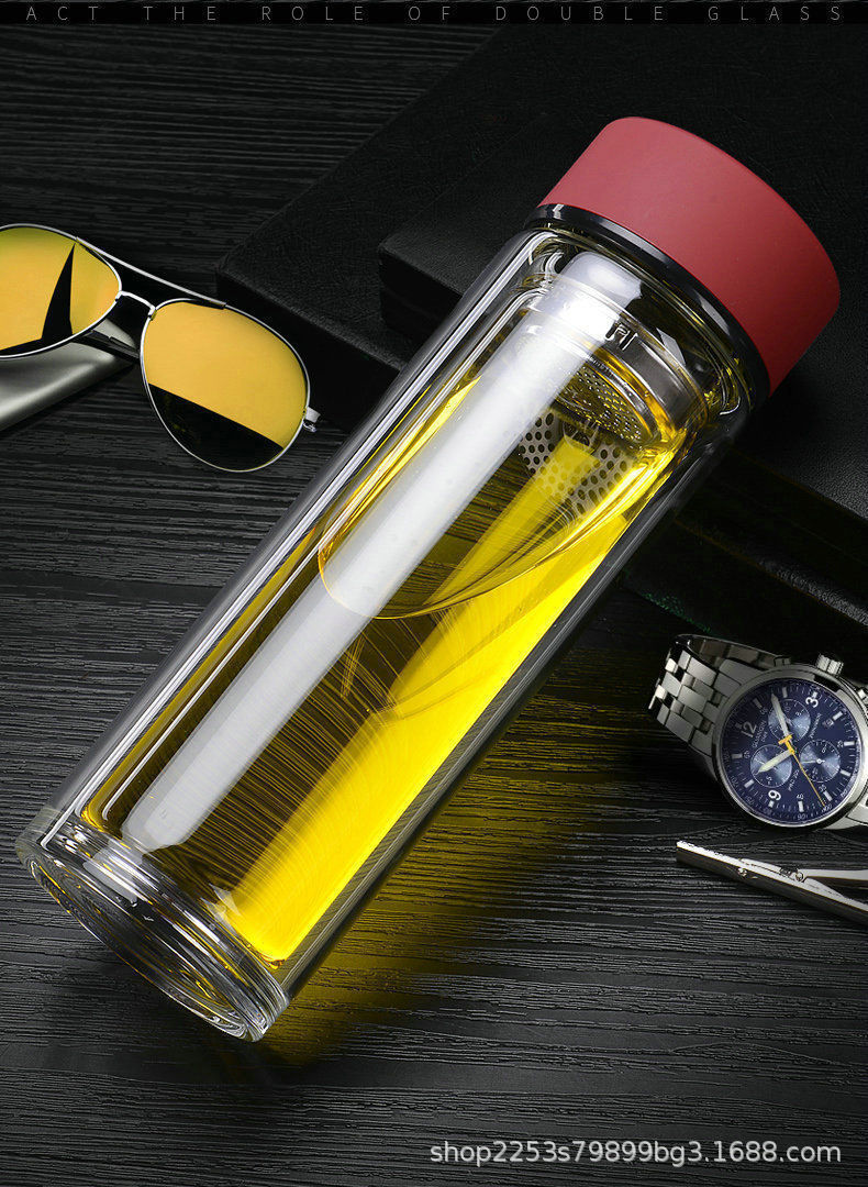 더블 레이어 유리 티 컵 남녀 휴대용 야외 스포츠 워터 컵 자동차 두꺼운 내열 컵 뚜껑