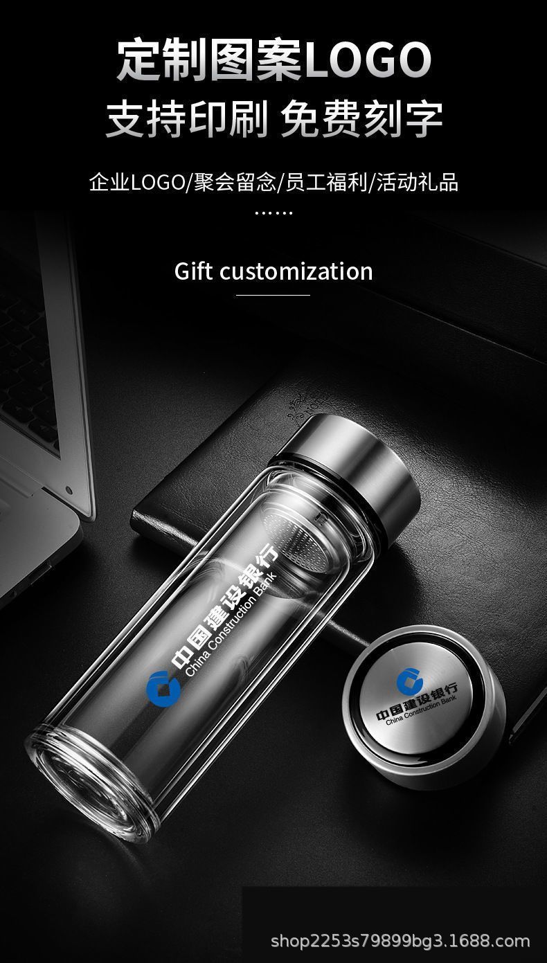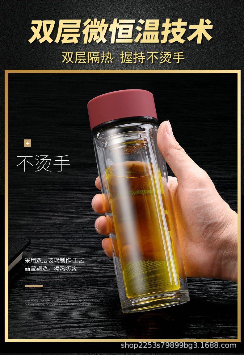 더블 레이어 유리 티 컵 남녀 휴대용 야외 스포츠 워터 컵 자동차 두꺼운 내열 컵 뚜껑스토어 가기