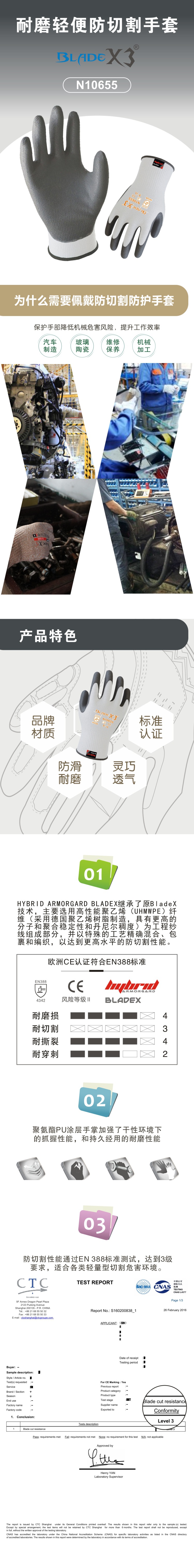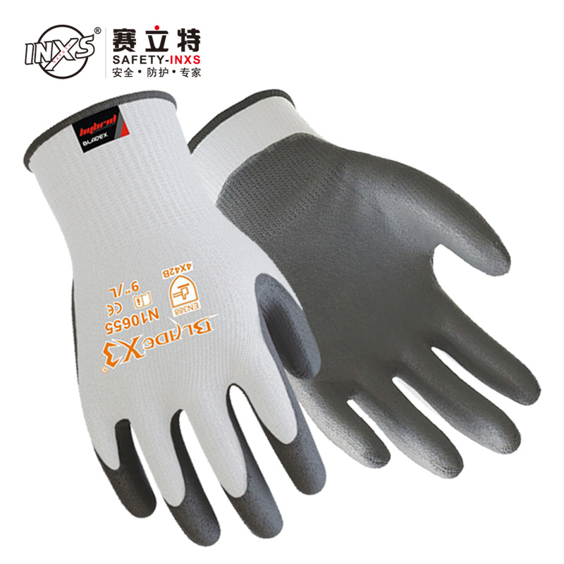 셀라이트 N10655 절단 방지 노동 보호 안전 장갑 PU 담근 코팅 통기성 스마트 내마모성 3 단계 절단 방지