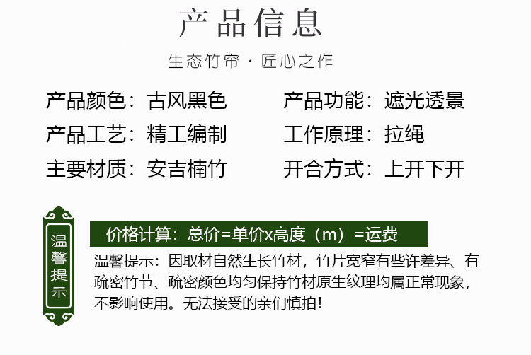 대나무 커튼 야외 정자용 대나무 커튼 롤스크린 방수 리프팅형 차양 대나무 커튼 칸막이 롤스크린 대나무스토어 가기