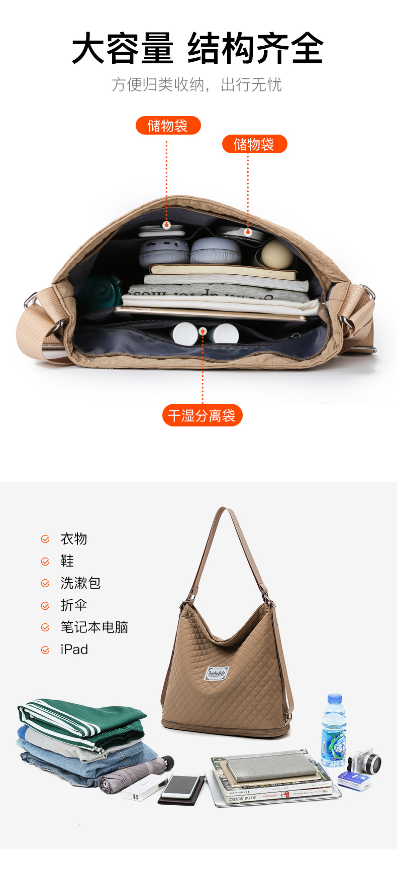 2023 새로운 한국식 여행 가방 대용량 습식 및 건식 분리 패션 남성과 여성의 간단한 어깨 메신저 배낭스토어 가기