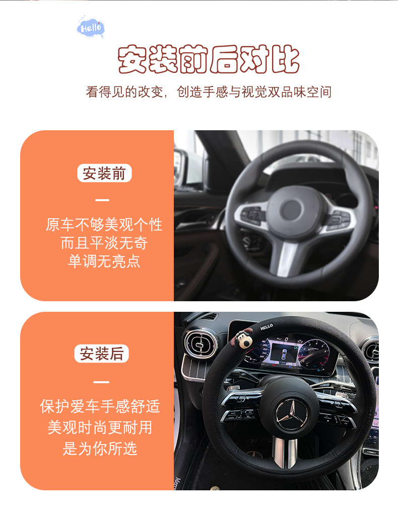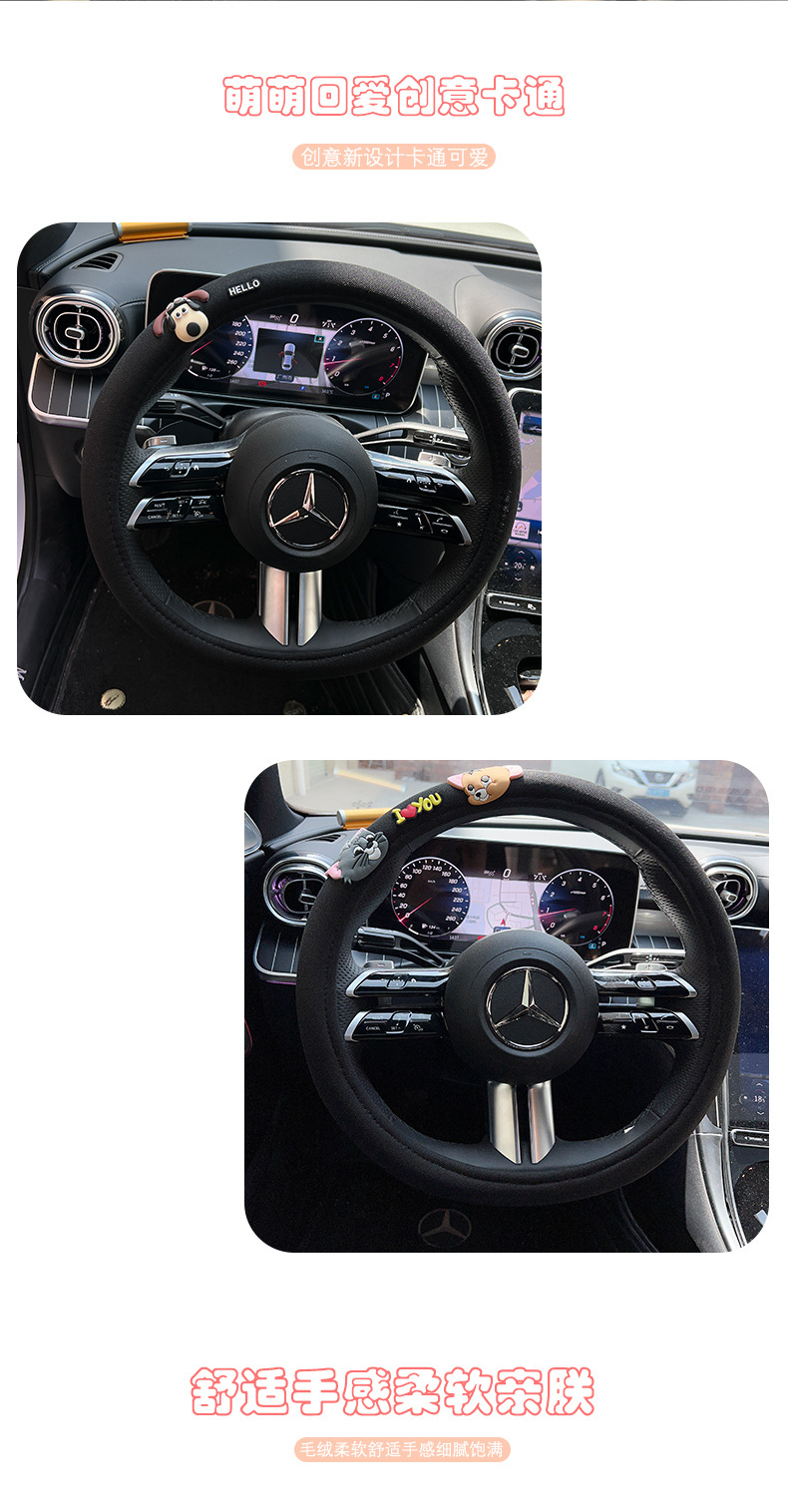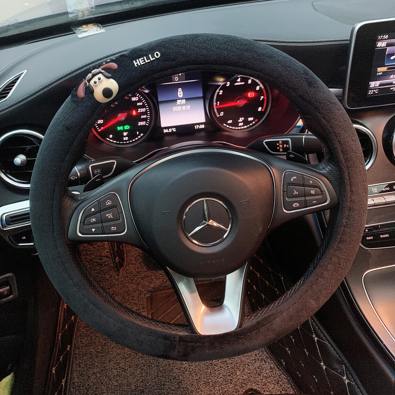 자동차 스티어링 휠 커버 만화 인터넷 인기있는 사계절 유니버설 핸드 독 겨울 플러시 자동차 핸들 커버 미끄럼 통기성 핸들 커버스토어 가기