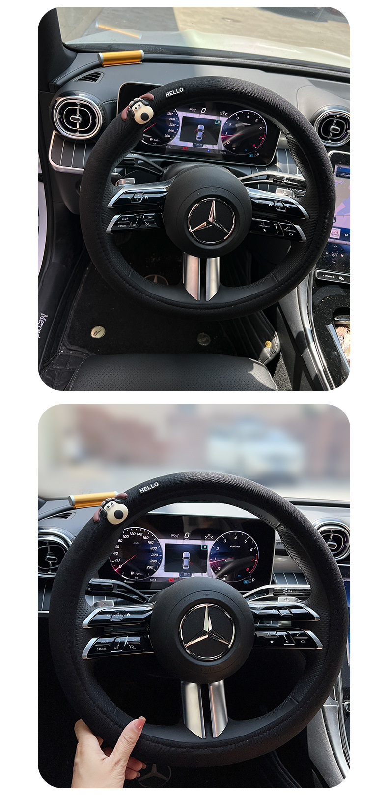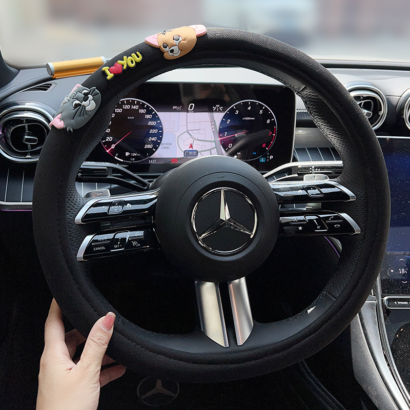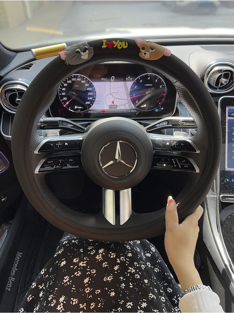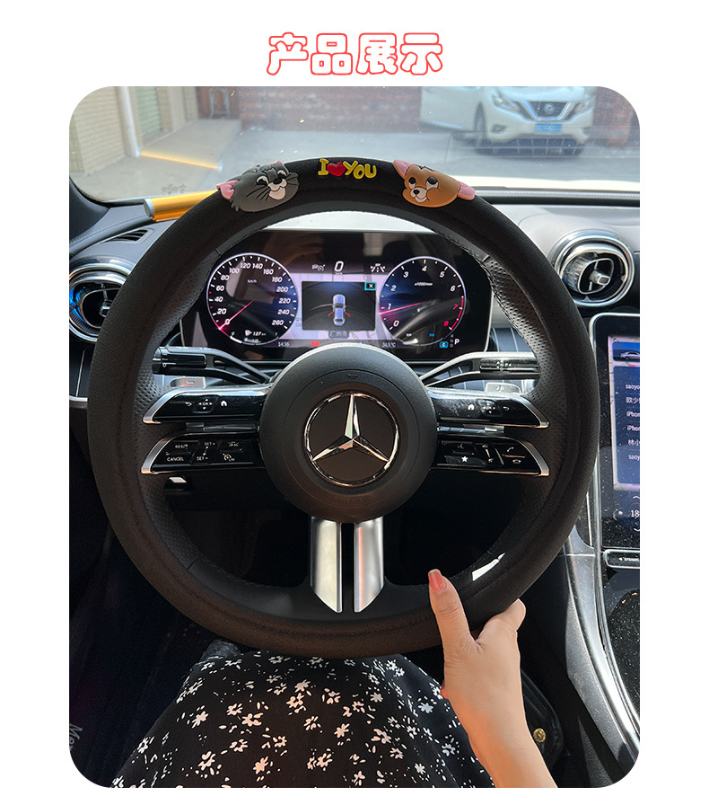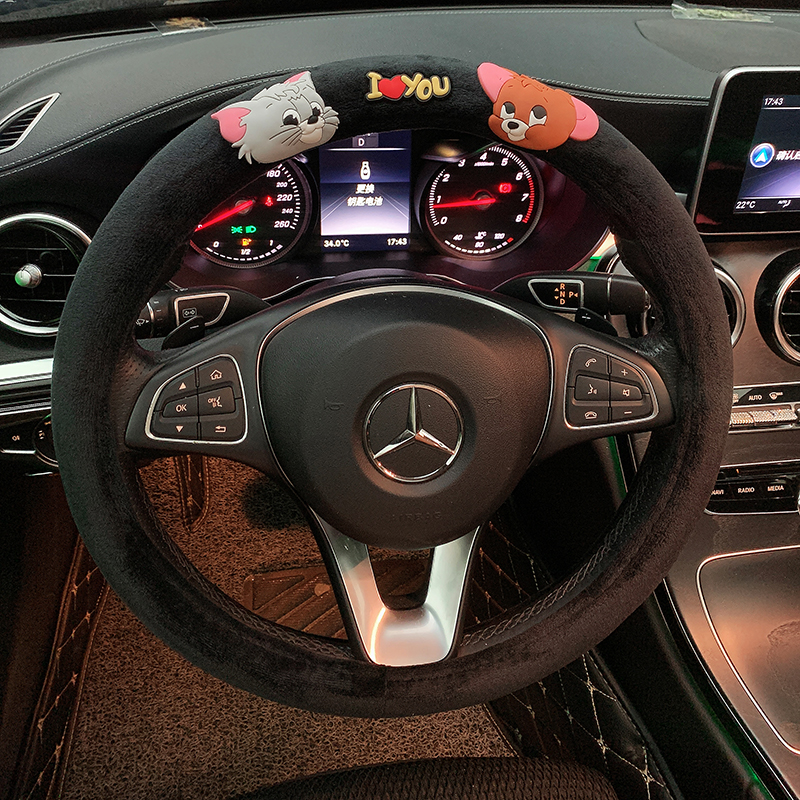 • 고양이와 쥐 검은 짧은 봉제 스티어링 휠 커버