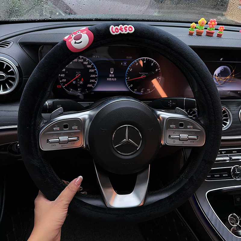 • 딸기 곰 Ls 블랙 짧은 봉제 스티어링 휠 커버