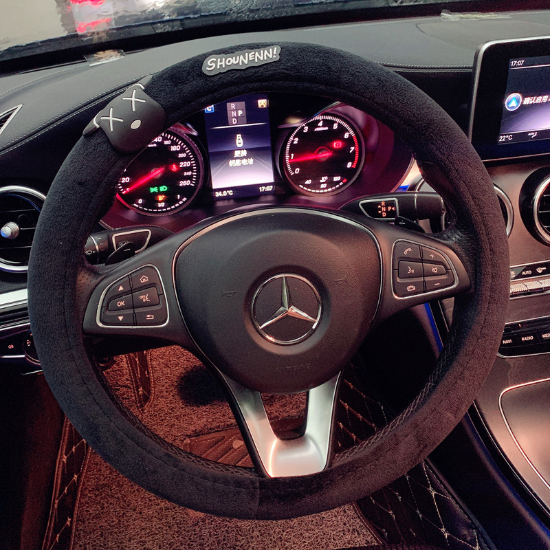 자동차 스티어링 휠 커버 만화 인터넷 인기있는 사계절 유니버설 핸드 독 겨울 플러시 자동차 핸들 커버 미끄럼 통기성 핸들 커버