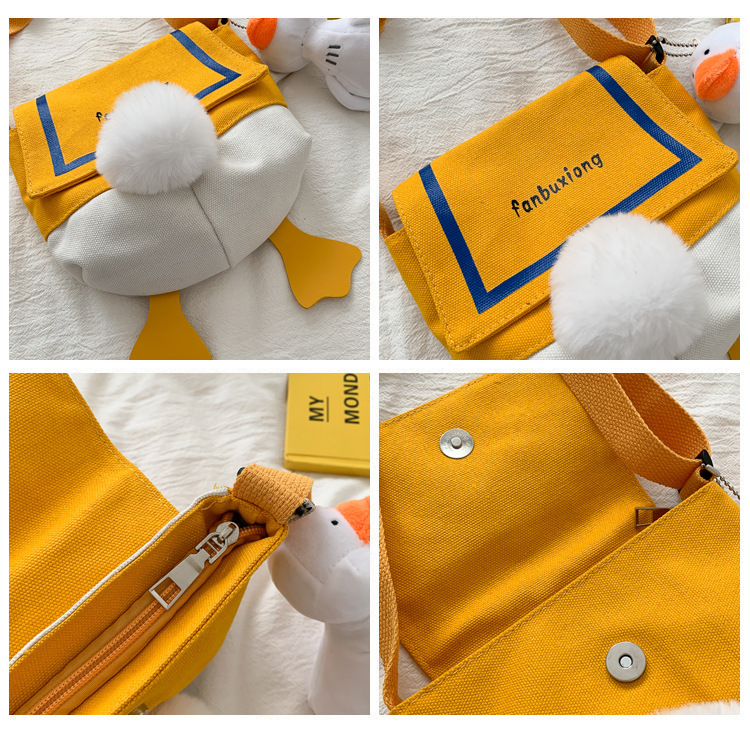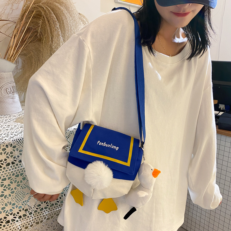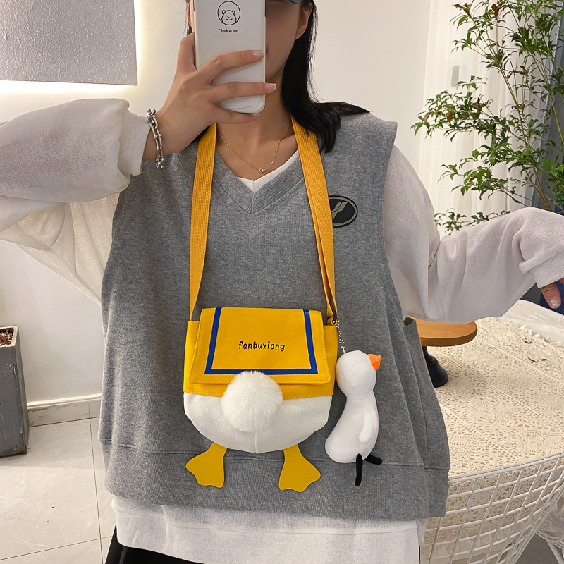 인터넷 유명 인사 캔버스 가방 소녀 재미있는 오리 가방 한국 스타일 유행 귀여운 올 매치 숄더백 메신저 가방 대외 무역 도매스토어 가기