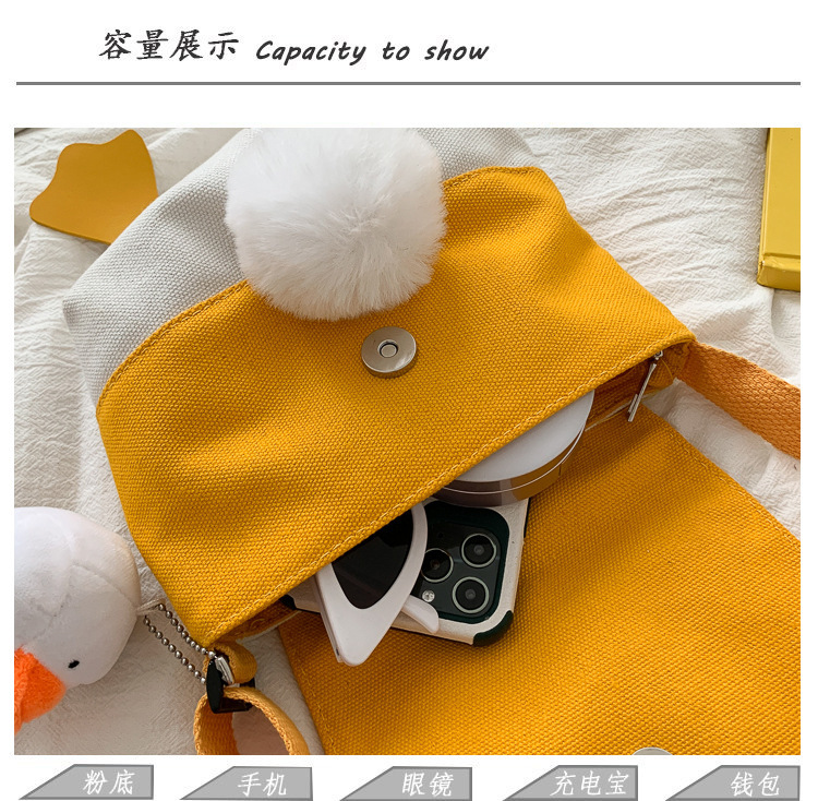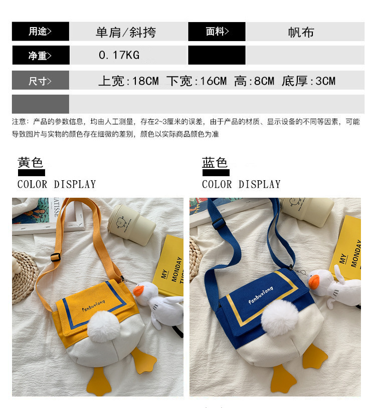 인터넷 유명 인사 캔버스 가방 소녀 재미있는 오리 가방 한국 스타일 유행 귀여운 올 매치 숄더백 메신저 가방 대외 무역 도매