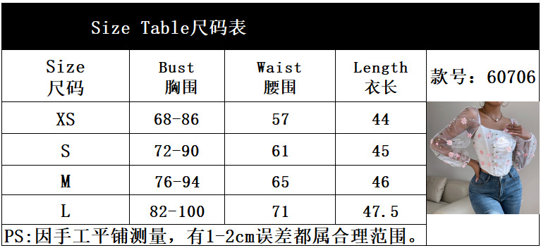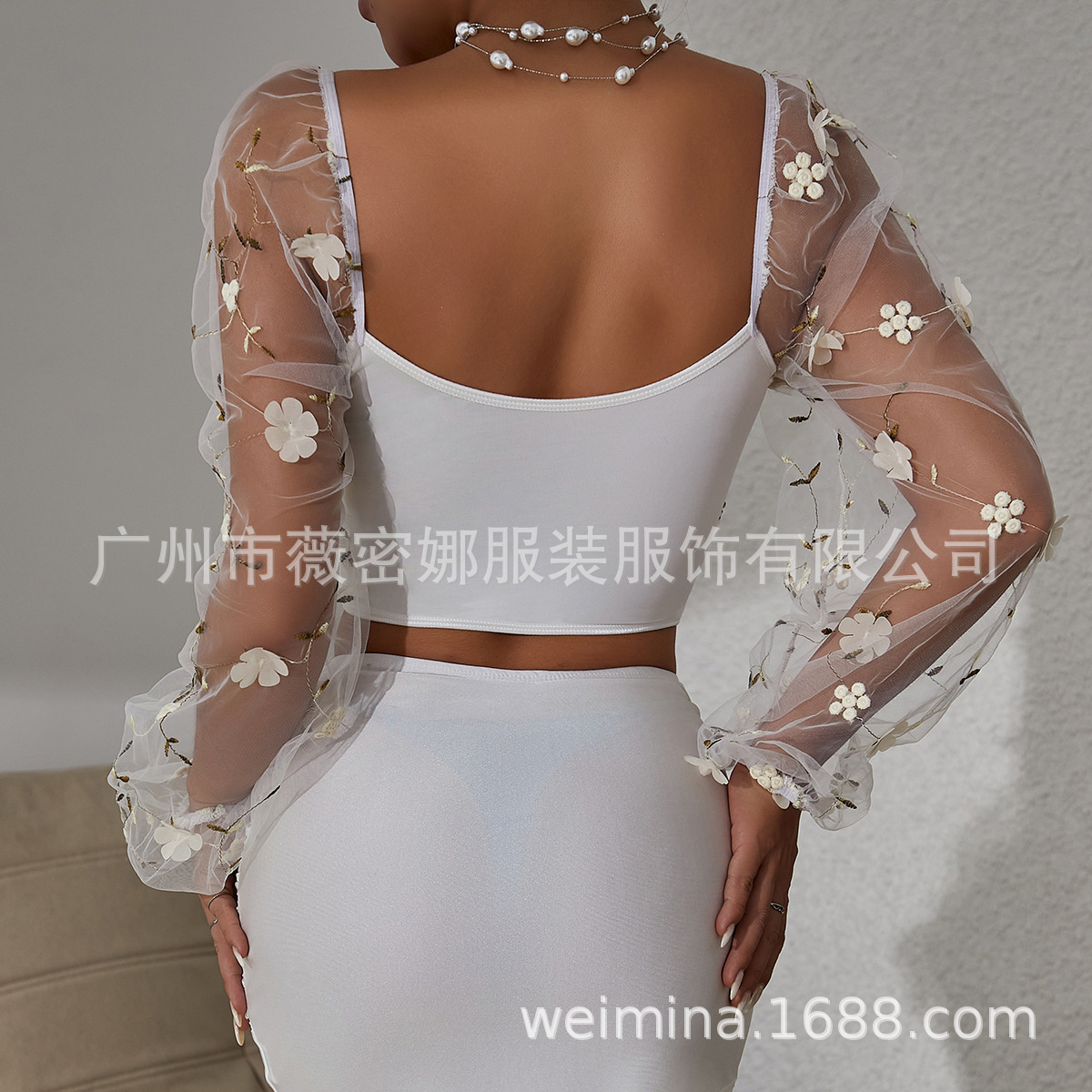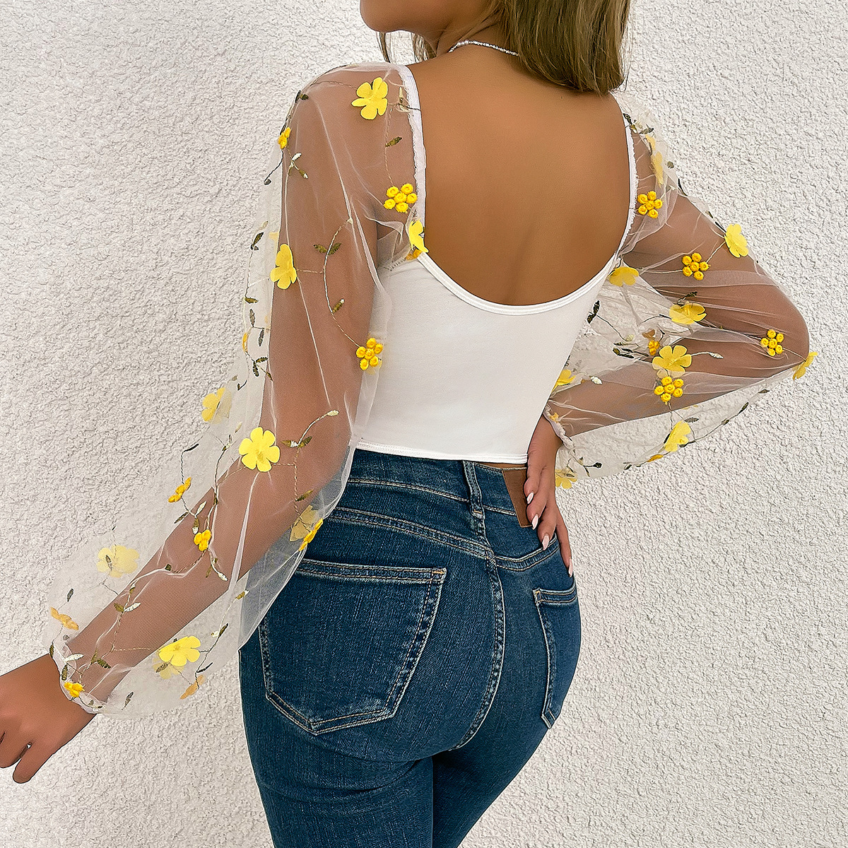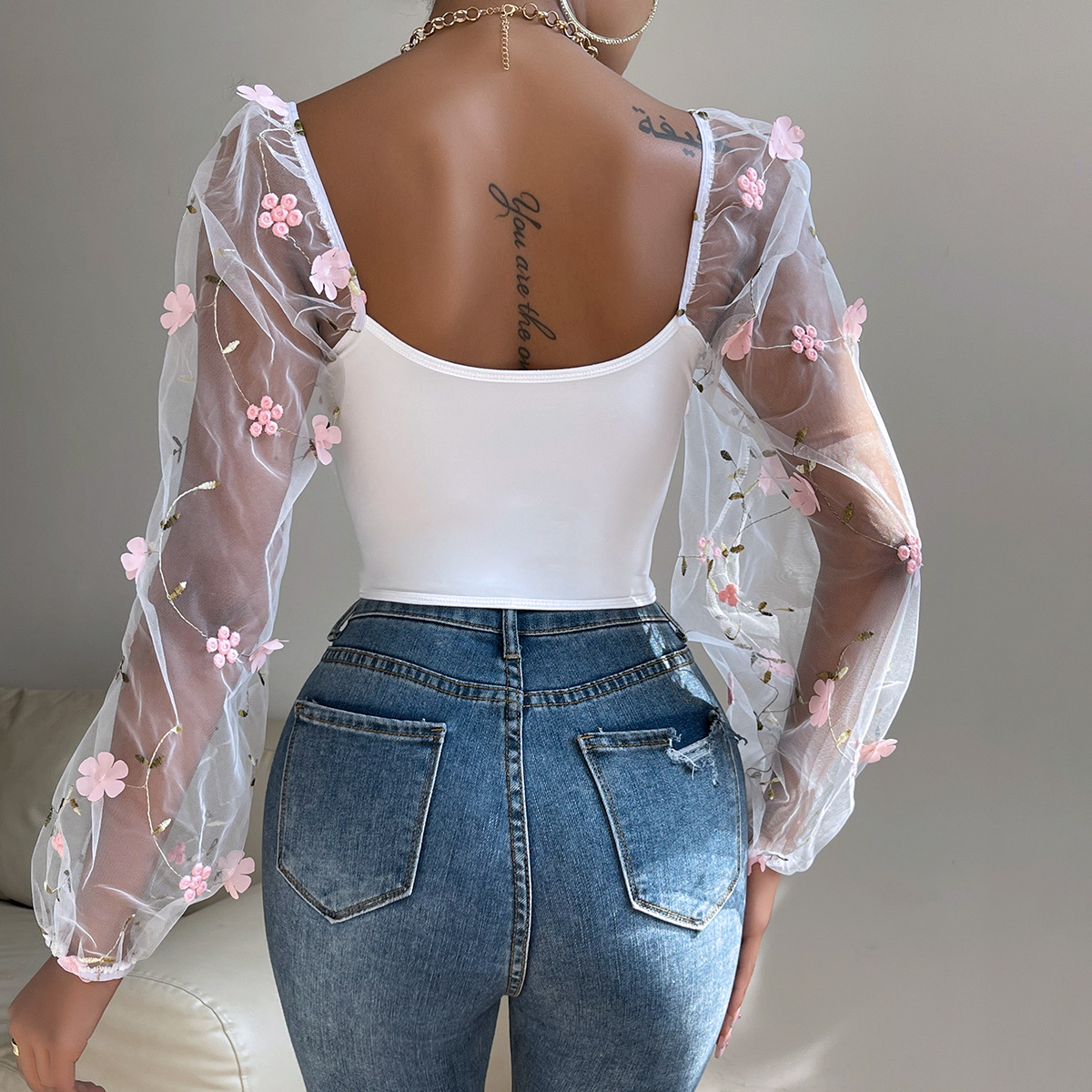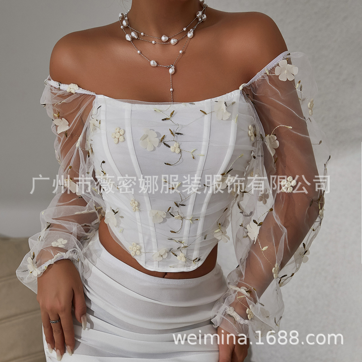 국경을 넘나 드는 유럽과 미국의 여성 인스타그램 스타일 섹시 메쉬 관점 자수 꽃 이중층 어본 긴팔 코르셋 60706