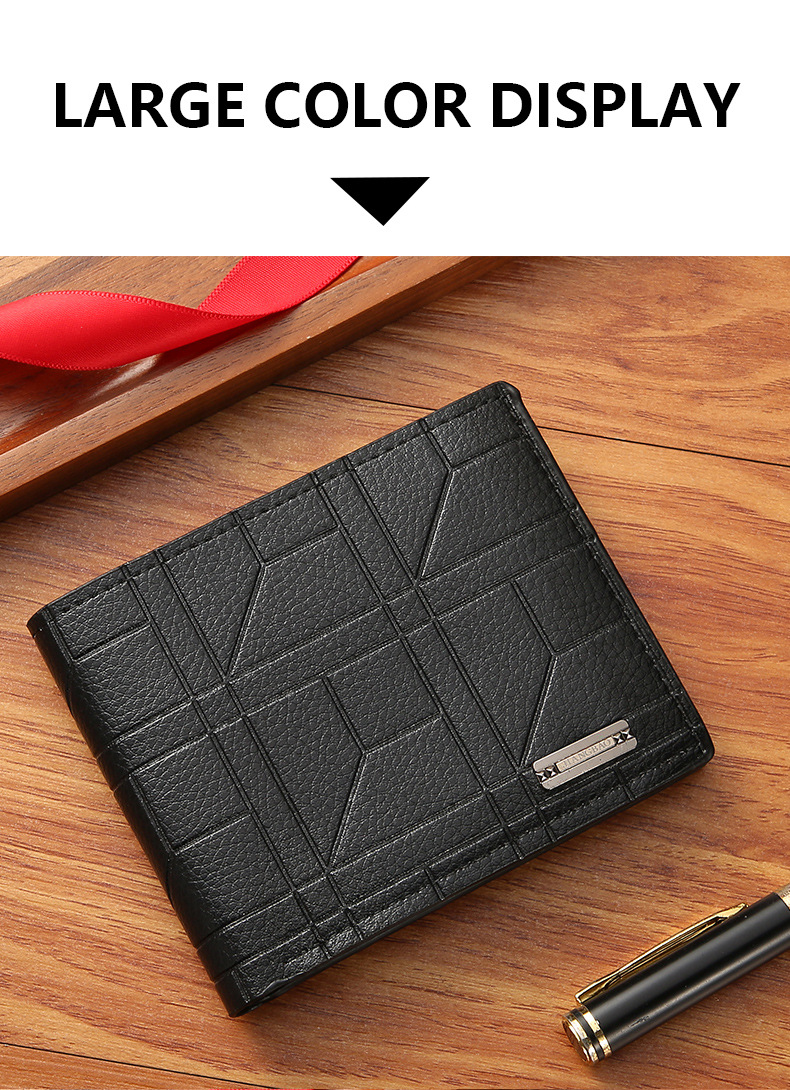 새로운 남성 지갑 남자의 짧은 지갑 청소년 패션 격자 무늬 수평 소프트 지갑 대용량 멀티 카드 지갑