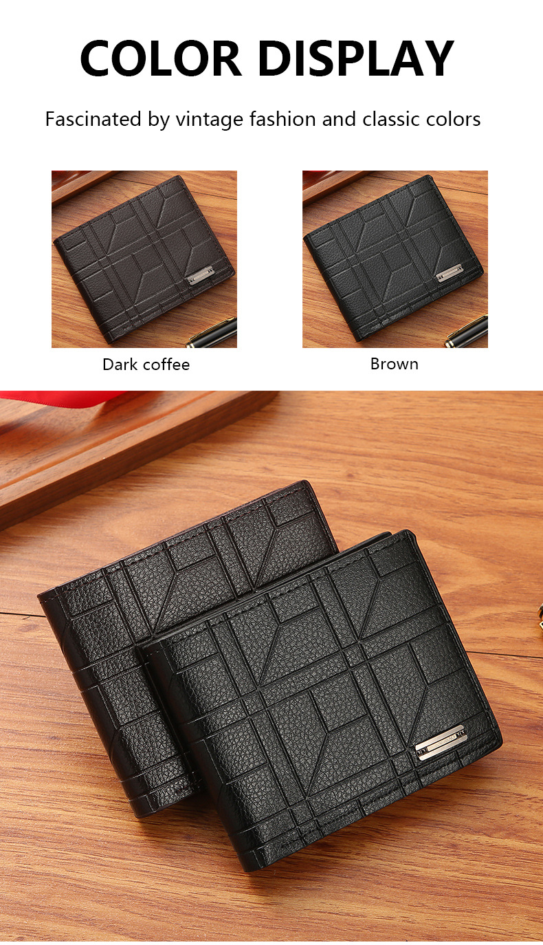 新款男士钱包男短款钱夹青年时尚格纹横款软皮夹大容量多卡位钱包