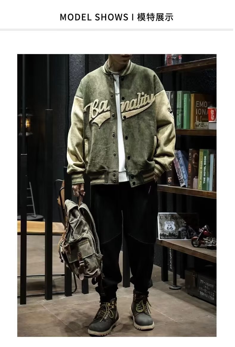 봄과 가을 스웨이드 유행 칼라 방풍 스포츠 야구 세트 남자 2023 새로운 패션 브랜드 일본 스타일 루즈 레트로 재킷스토어 가기