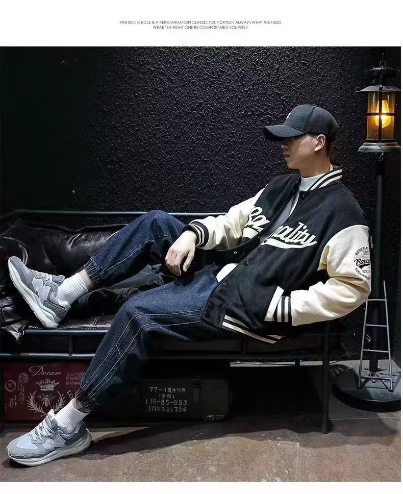 봄과 가을 스웨이드 유행 칼라 방풍 스포츠 야구 세트 남자 2023 새로운 패션 브랜드 일본 스타일 루즈 레트로 재킷