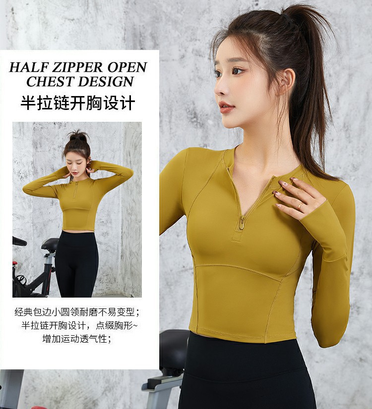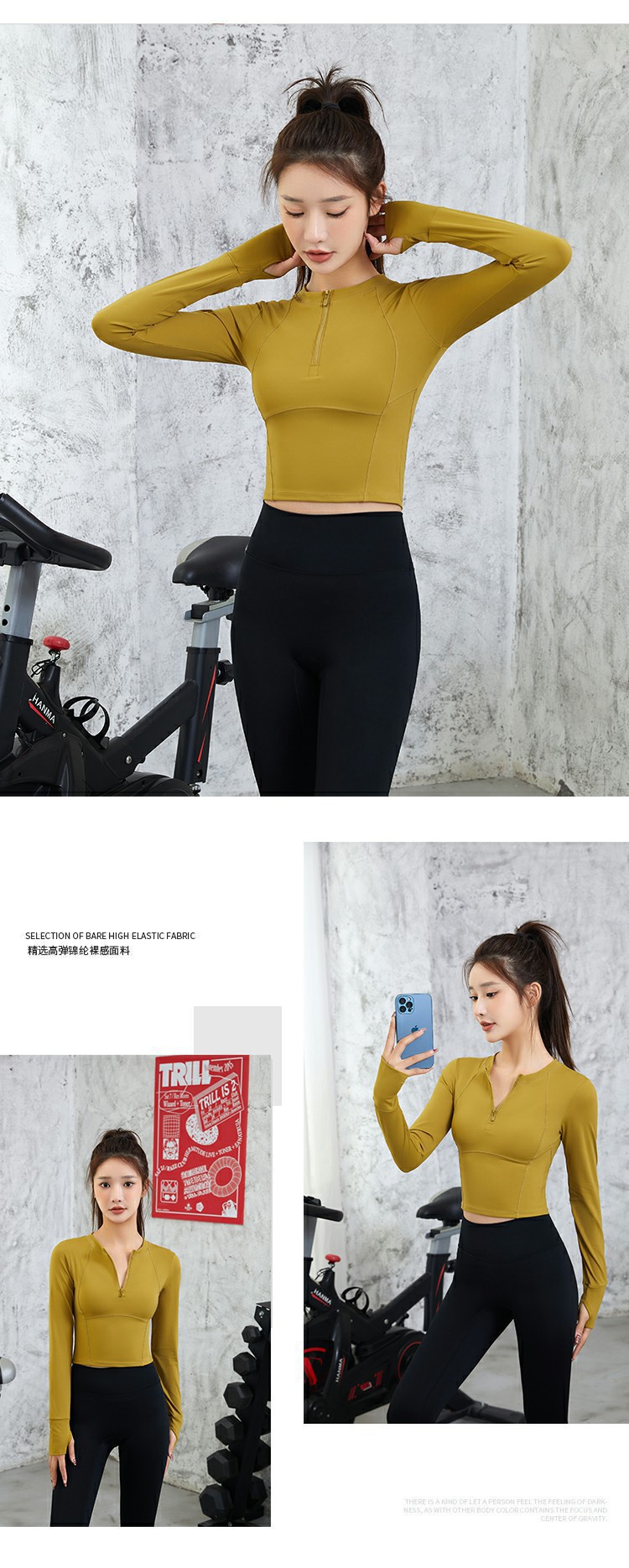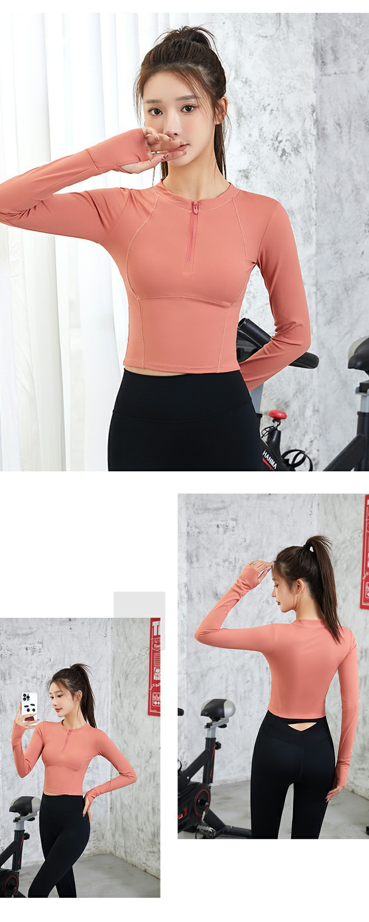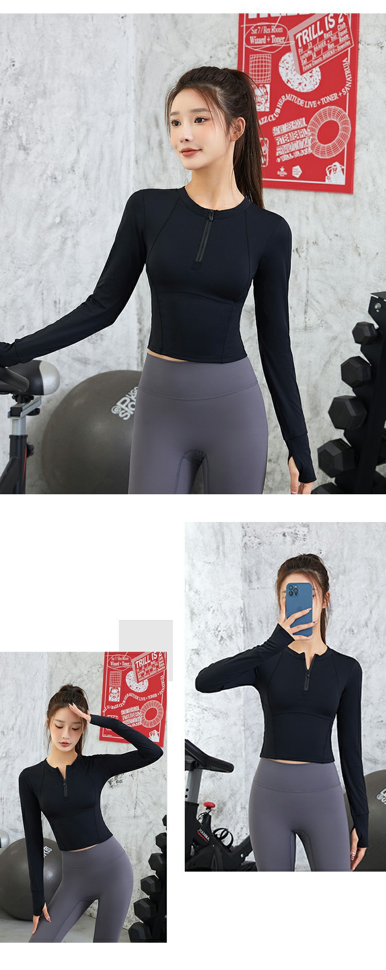 SPLAN 웨이크 업 계획 타이트한 짧은 스트레치 스포츠 탑 긴 소매 달리기 여성용 슬리밍 하프 지퍼 요가 옷스토어 가기