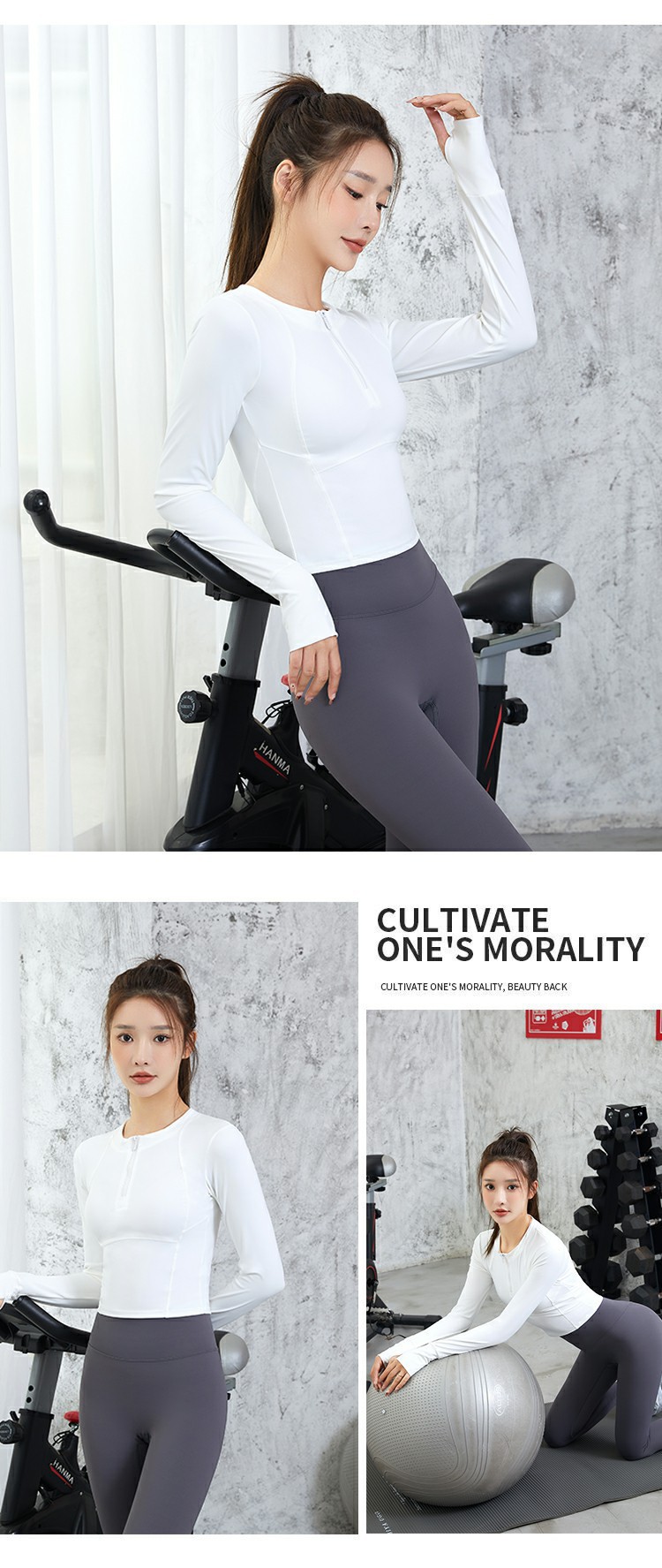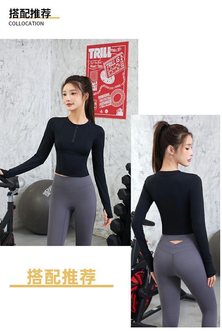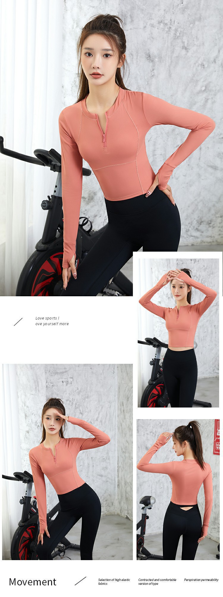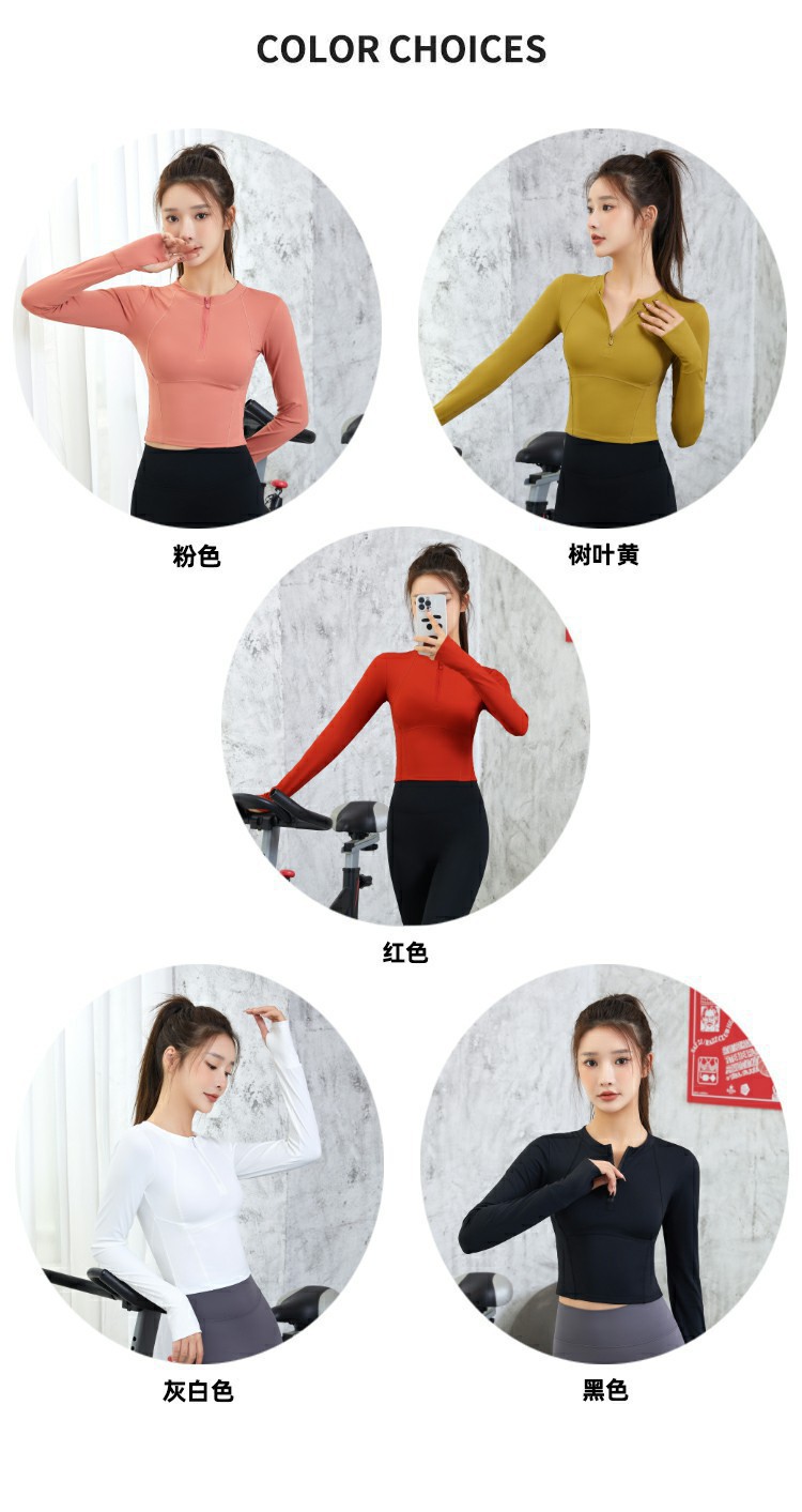 SPLAN 웨이크 업 계획 타이트한 짧은 스트레치 스포츠 탑 긴 소매 달리기 여성용 슬리밍 하프 지퍼 요가 옷스토어 가기