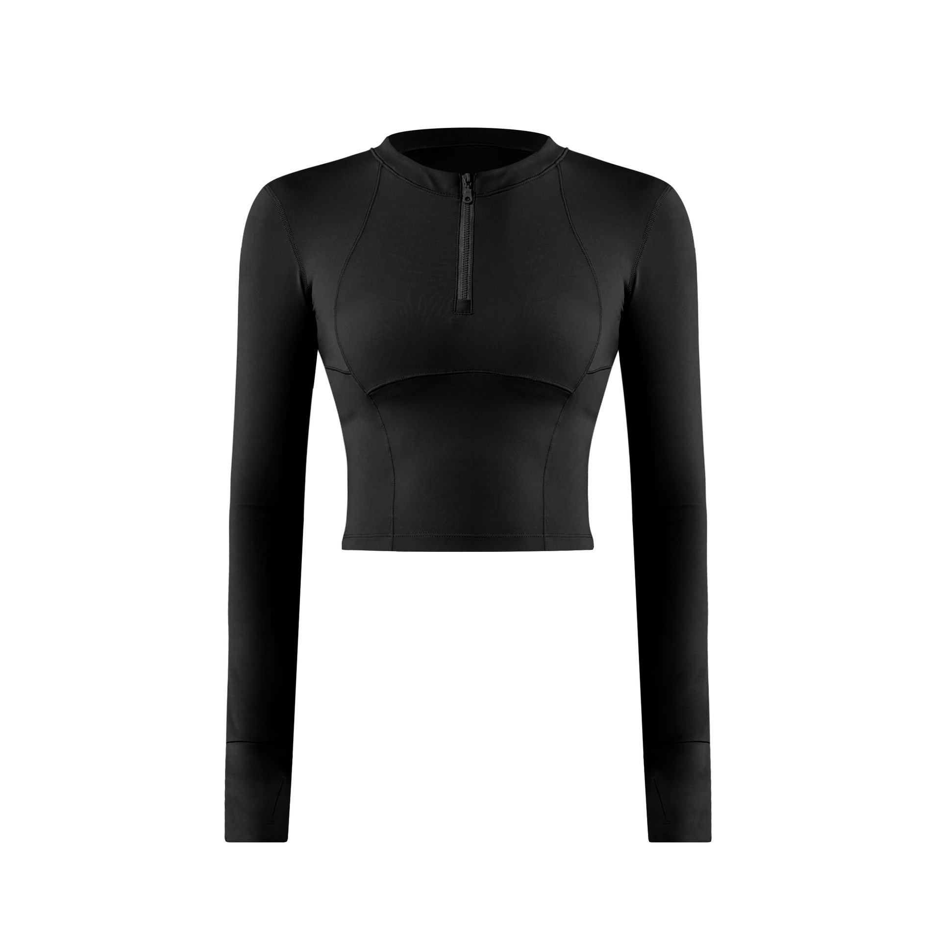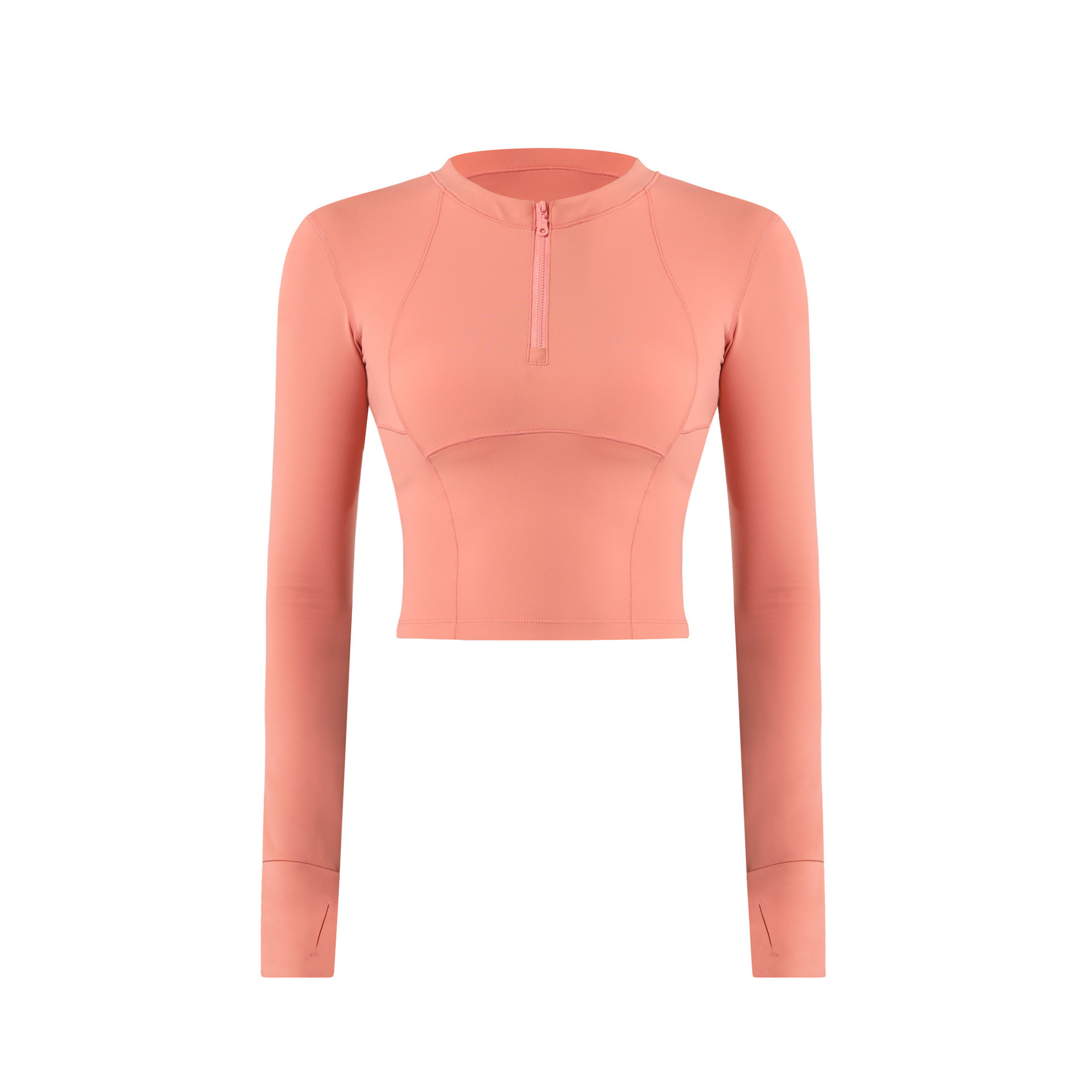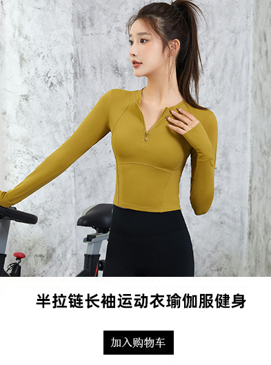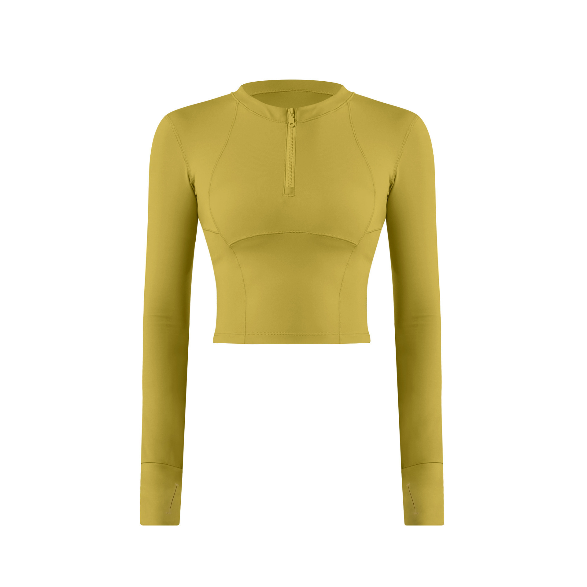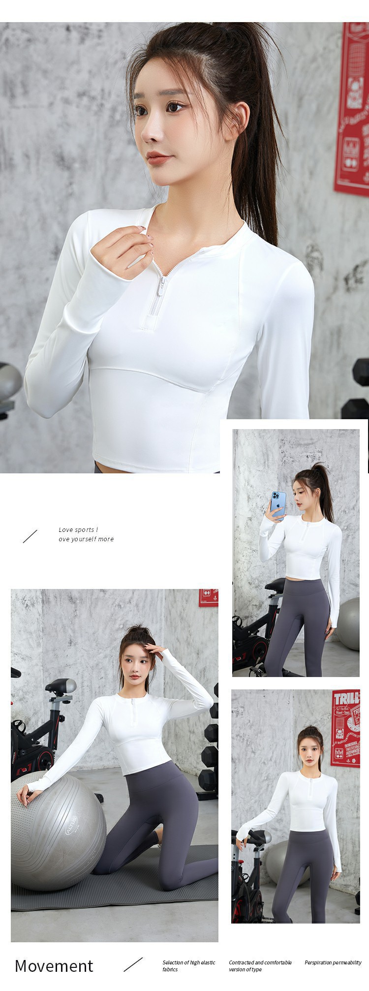 SPLAN 웨이크 업 계획 타이트한 짧은 스트레치 스포츠 탑 긴 소매 달리기 여성용 슬리밍 하프 지퍼 요가 옷스토어 가기