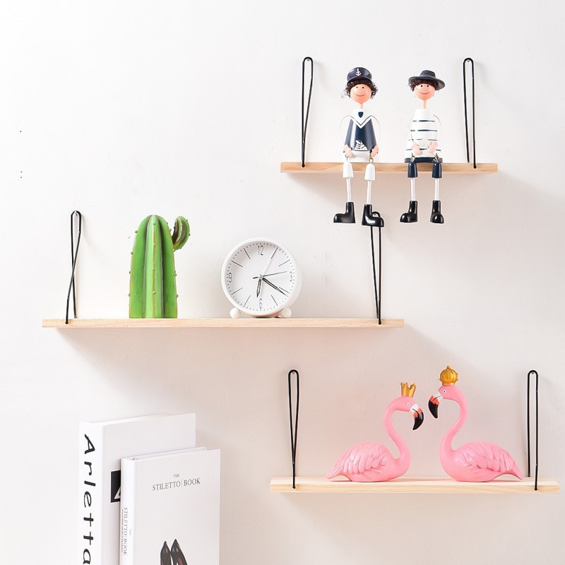 국제 배송 목재 수납 선반 가정용 거실 책장 목재 화분대 다기능 벽걸이형 일자형 선반