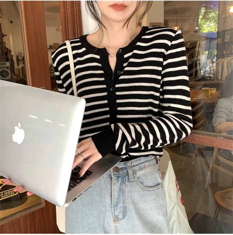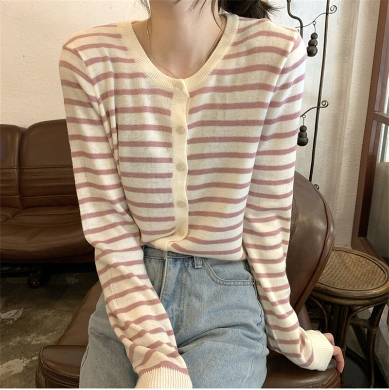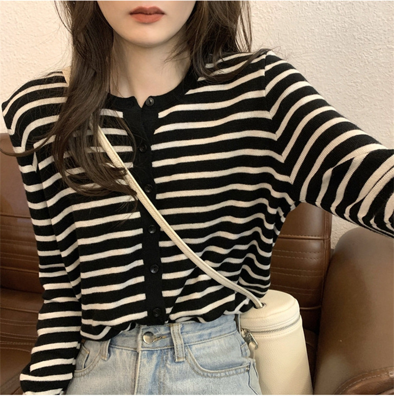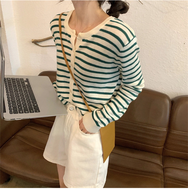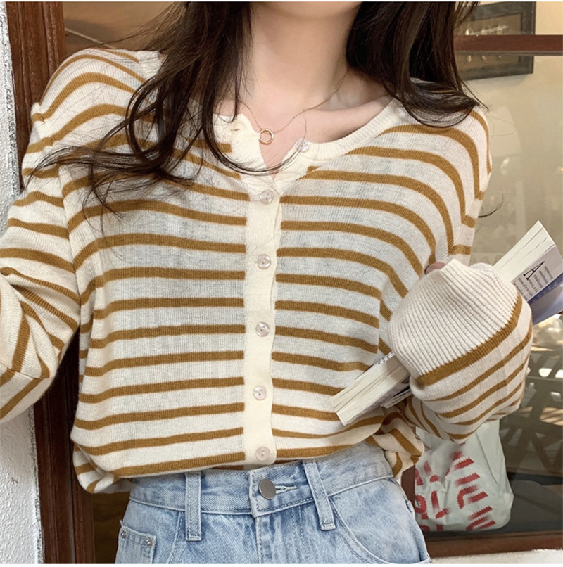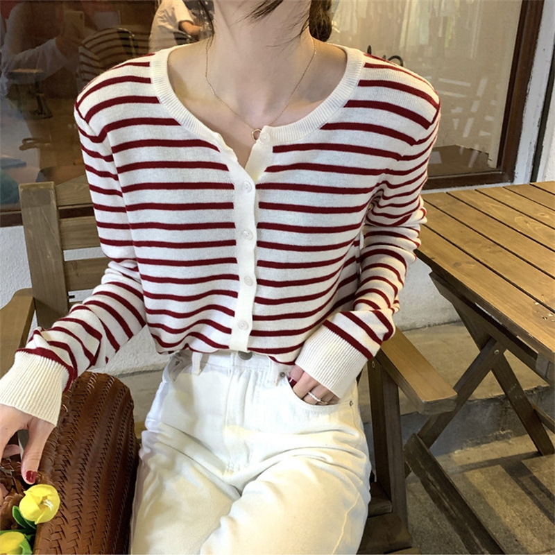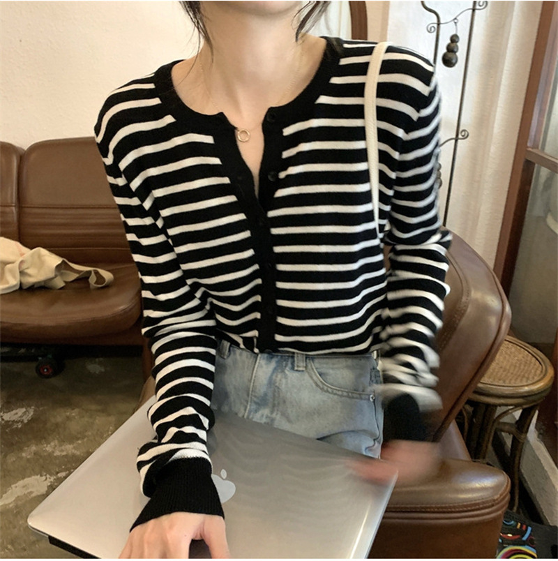 여성용 가디건 니트 자켓 2026 신상 가을 겨울 한국 스타일 슬림핏 루즈핏 V넥 탑 캐시미어 스트라이프 스웨터스토어 가기