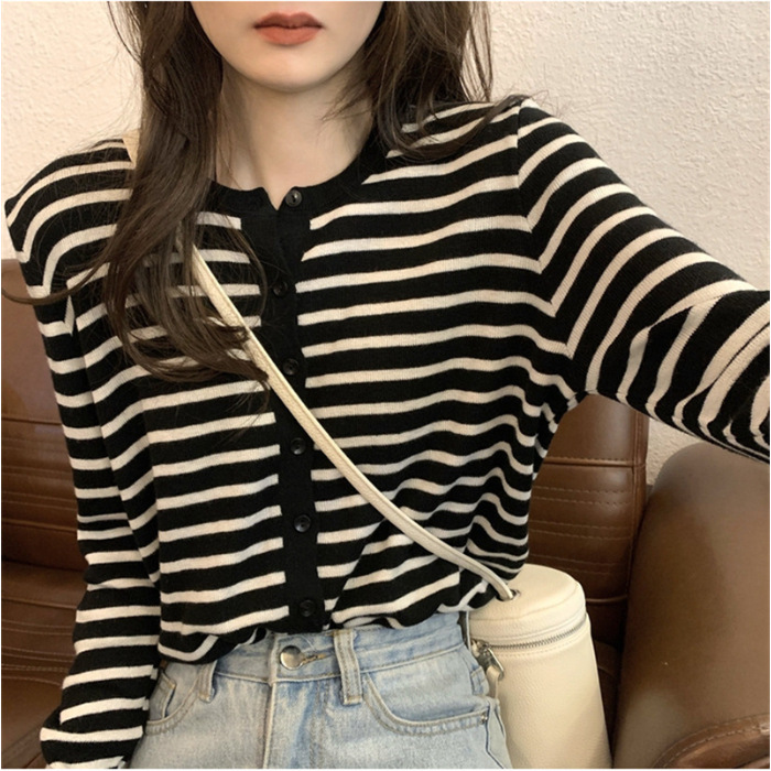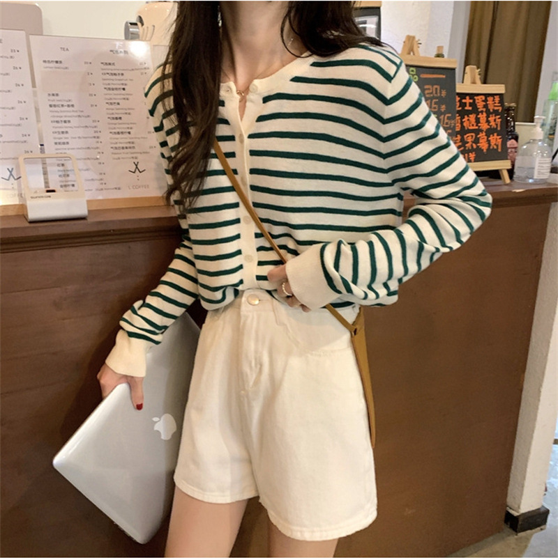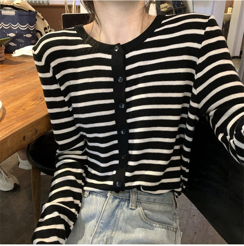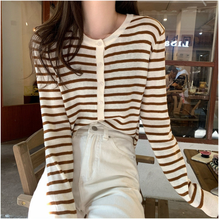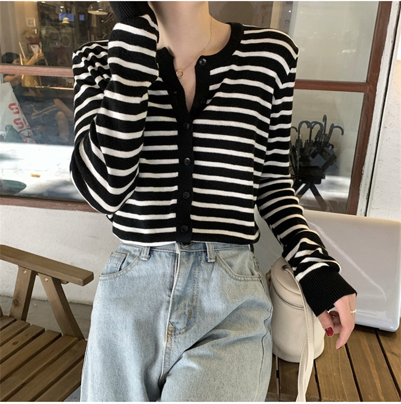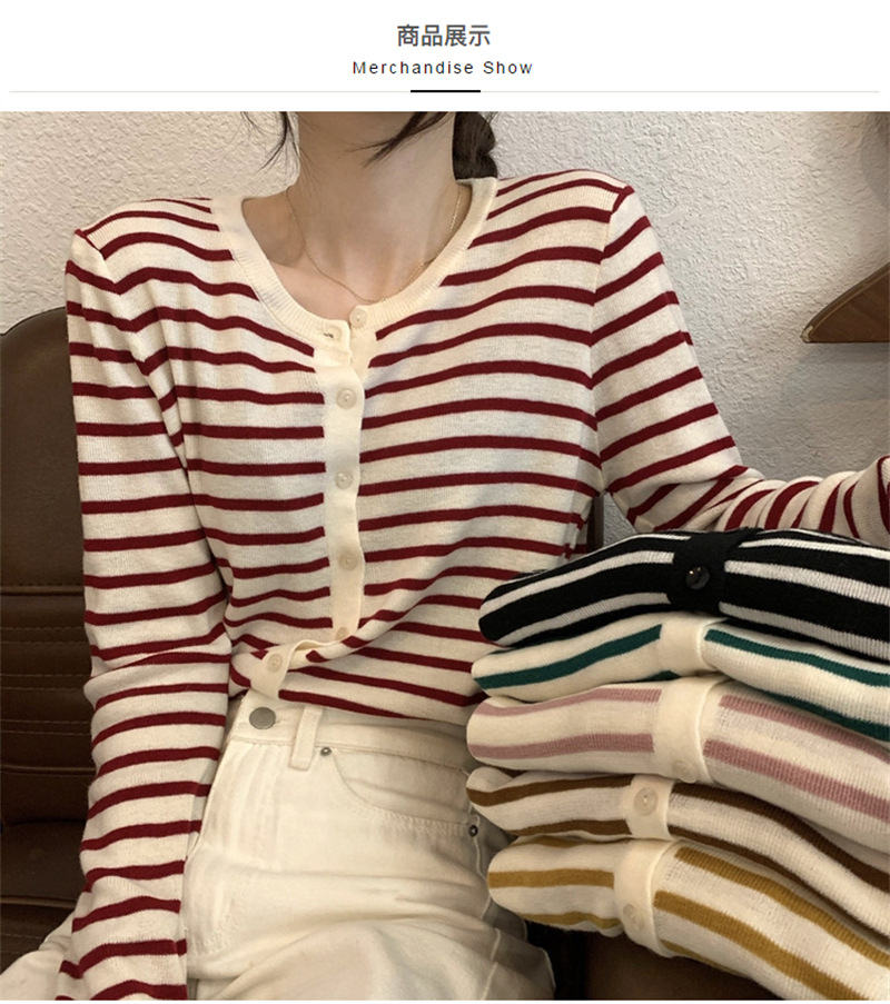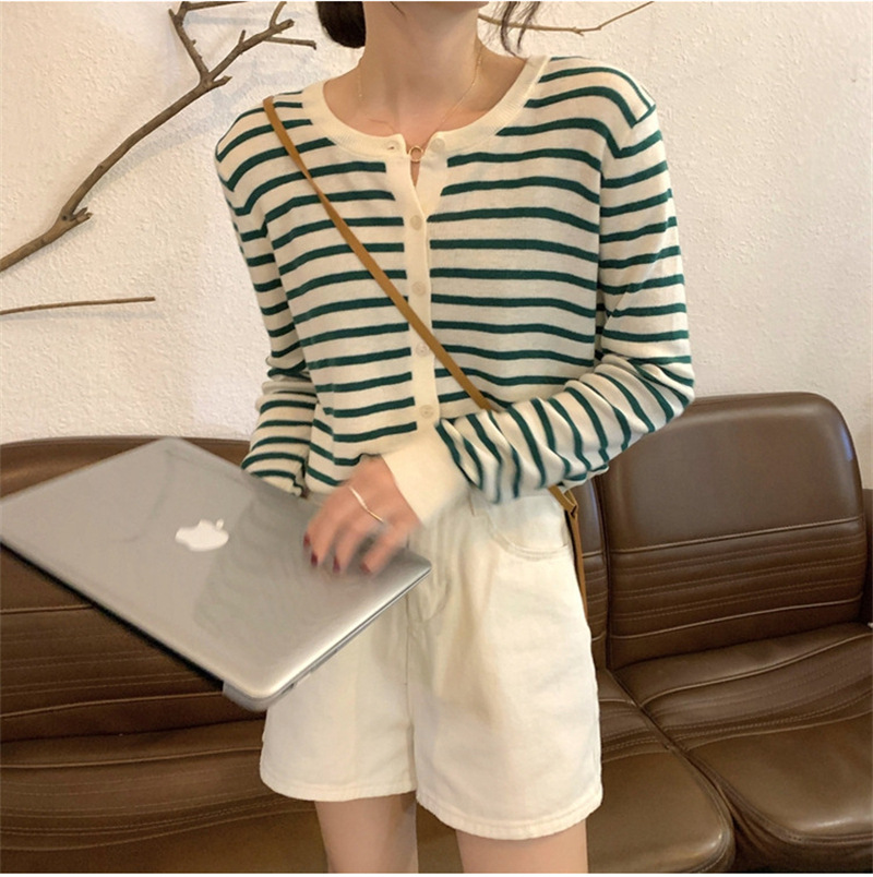 여성용 가디건 니트 자켓 2026 신상 가을 겨울 한국 스타일 슬림핏 루즈핏 V넥 탑 캐시미어 스트라이프 스웨터스토어 가기