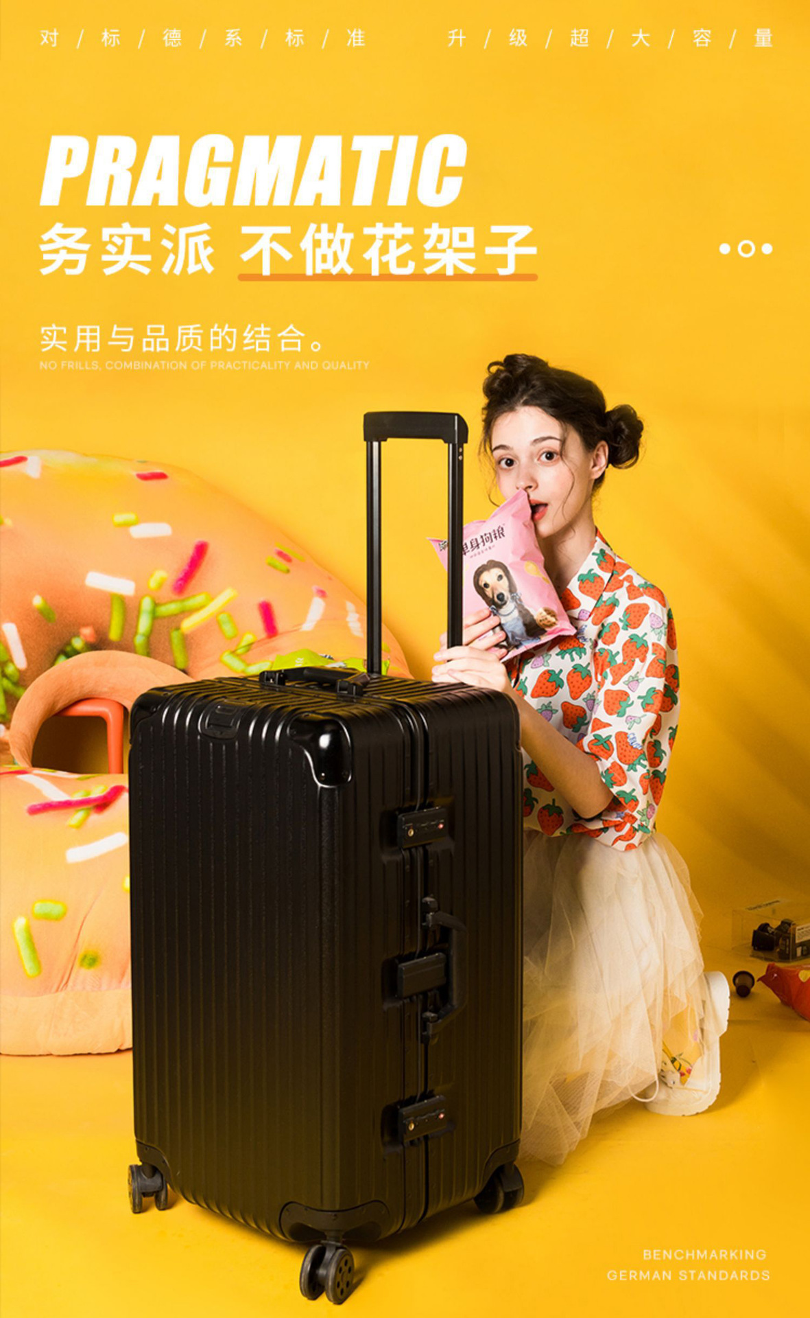 江西杰之瑞箱包有限公司,江西箱包源头生产厂家,是集研发、设计、生产、销售为一体的行李箱专业生产加工的厂家,坐落于美丽的的江西省新干县河西现代箱包产业园,占地面积 15000 多平,1 栋综合办公楼, 2 栋生产厂房, 拥有完整、科学的质量管理体系,公司秉承“产品品质是企业的生命线,优质的售后服务是企业信誉背书”的经营理念,坚持“客户第一”的原则! 现公司月产量 50000余件,主营:旅行箱、登机箱、托运箱、化妆箱、ABS拉杆箱、PC行李箱、铝镁行李箱、牛津布行李箱等,加工方式:OEM加工、ODM加工、手工加工等。 我们的诚信、实力和产品质量都获得了业界的认可,欢迎各界朋友莅临参观、指导和业务洽谈。
