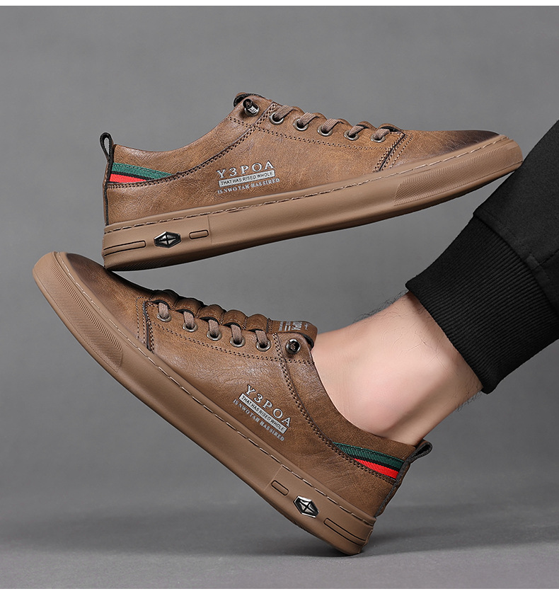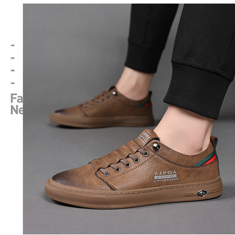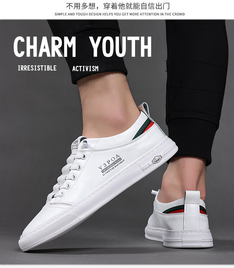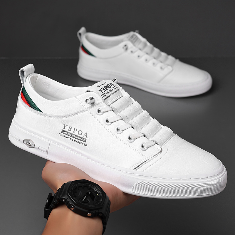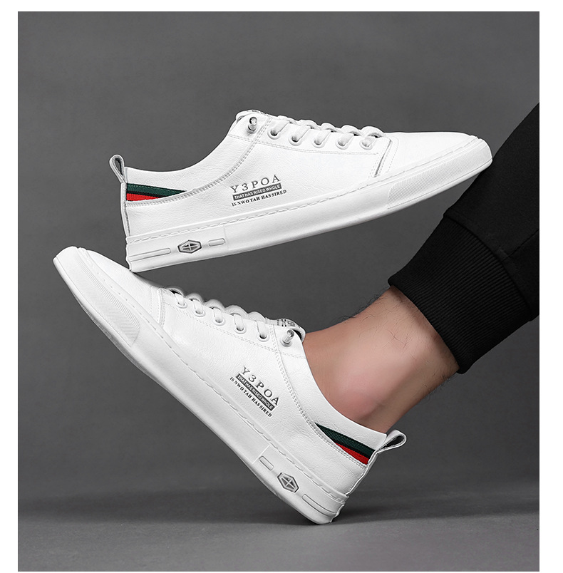 남성 신발 가을 새로운 패션 트렌디 한 운동화 남성용 통기성 부드러운 바닥 미끄럼 올-매치 스포츠 캐주얼 가죽 흰색 신발