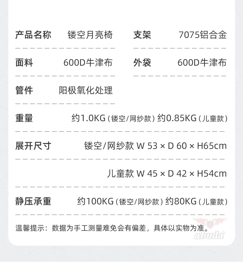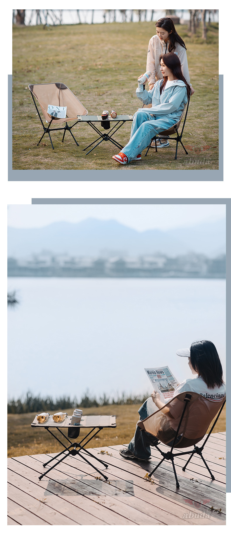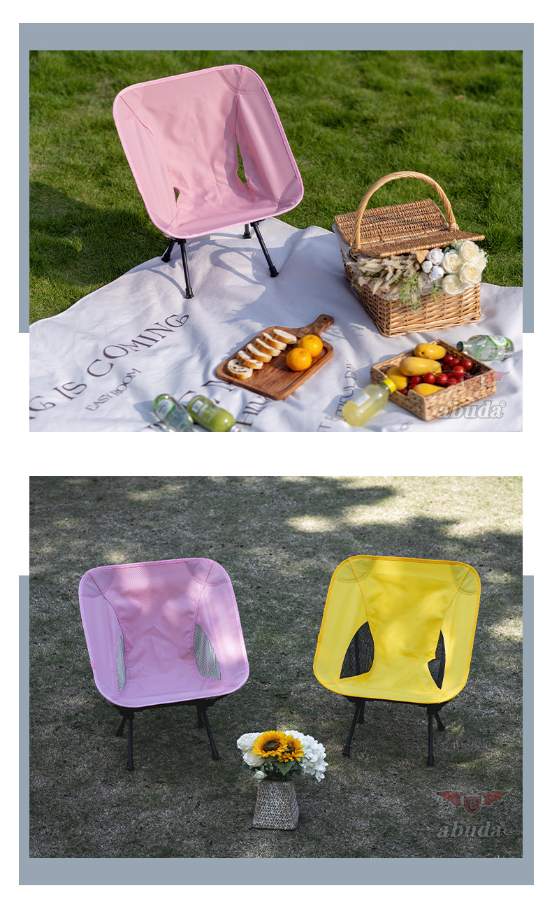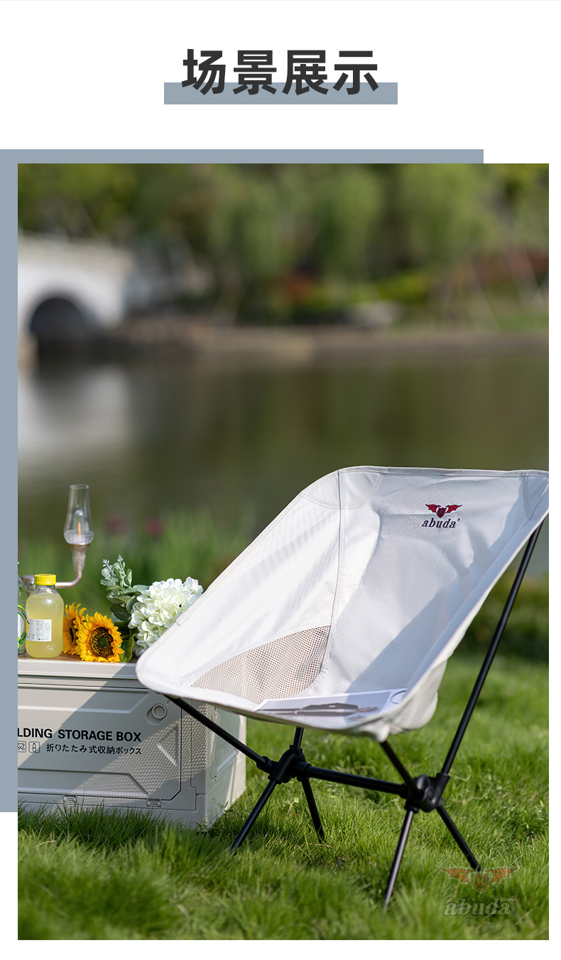 Abuda 도매 알루미늄 합금 편리한 야외 피크닉 캠핑 중공 메쉬 접이식 달 의자스토어 가기