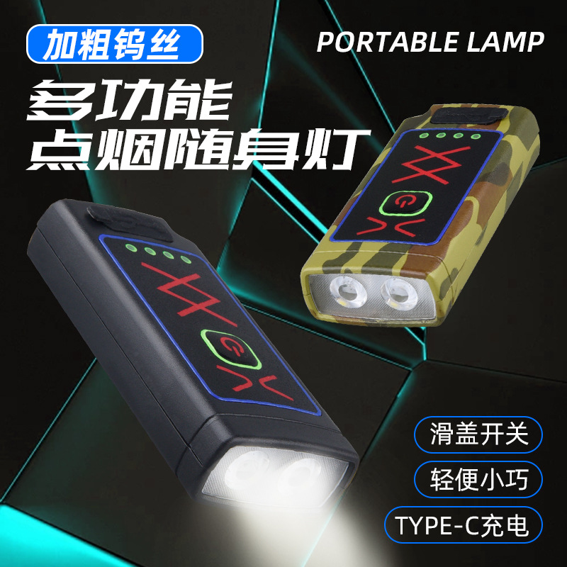 새로운 담배 라이터 휴대용 조명 램프 다기능 손전등 라이터 작업 램프 충전식 손전등