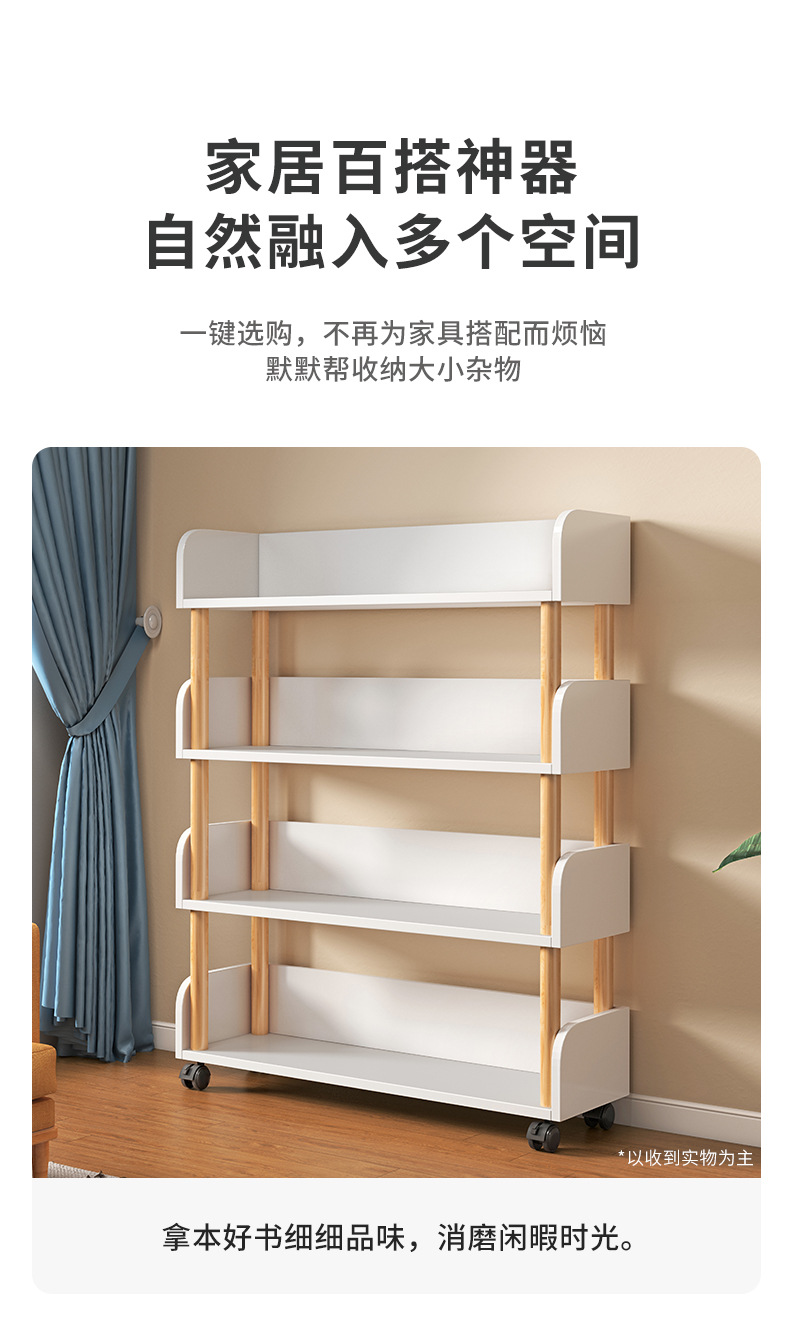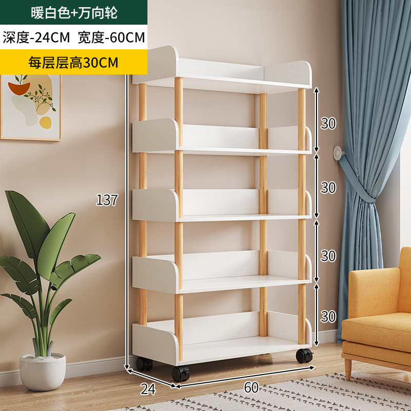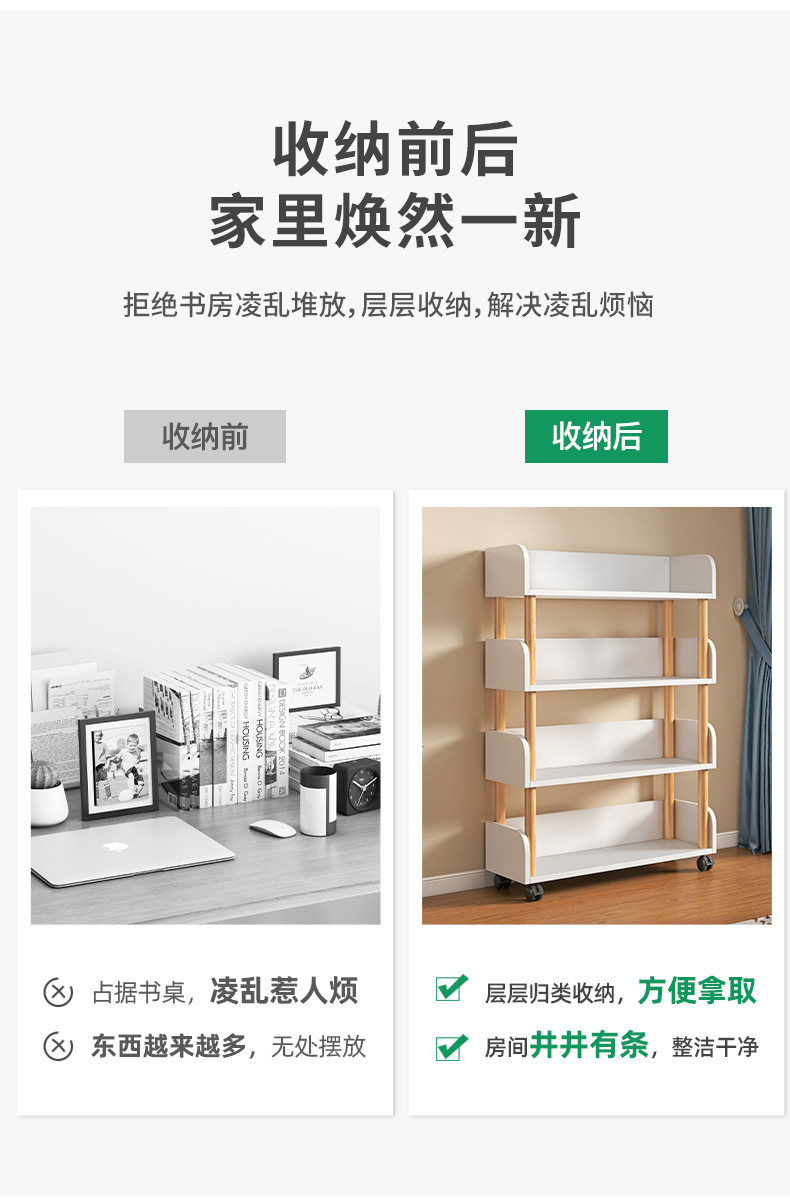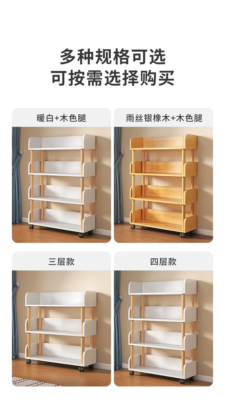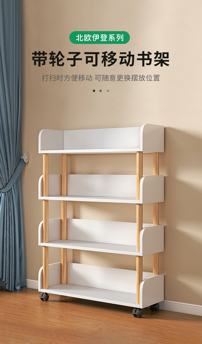 简易书桌旁桌边网红可移动小书架带轮置物架落地多层书本收纳架子