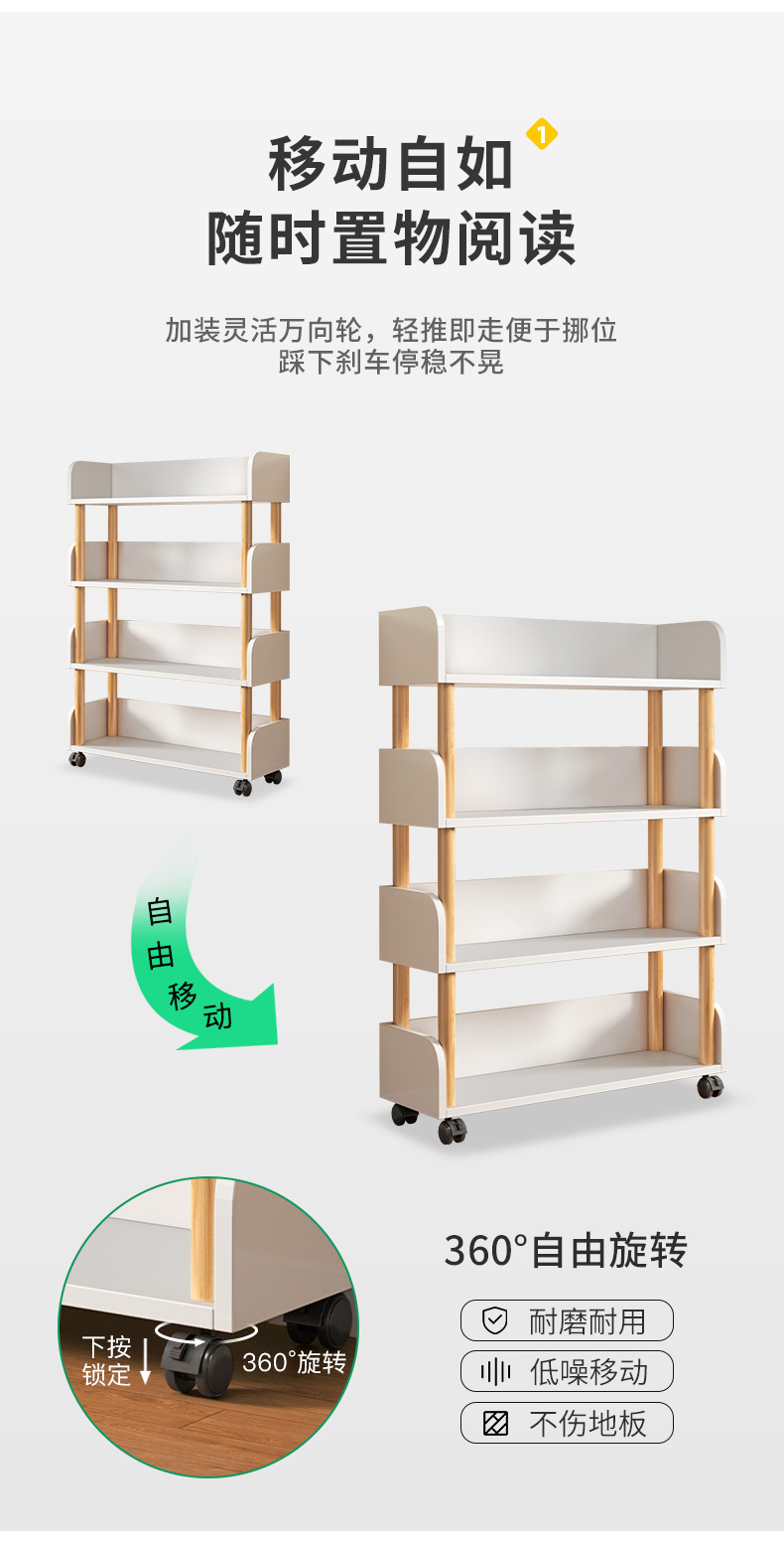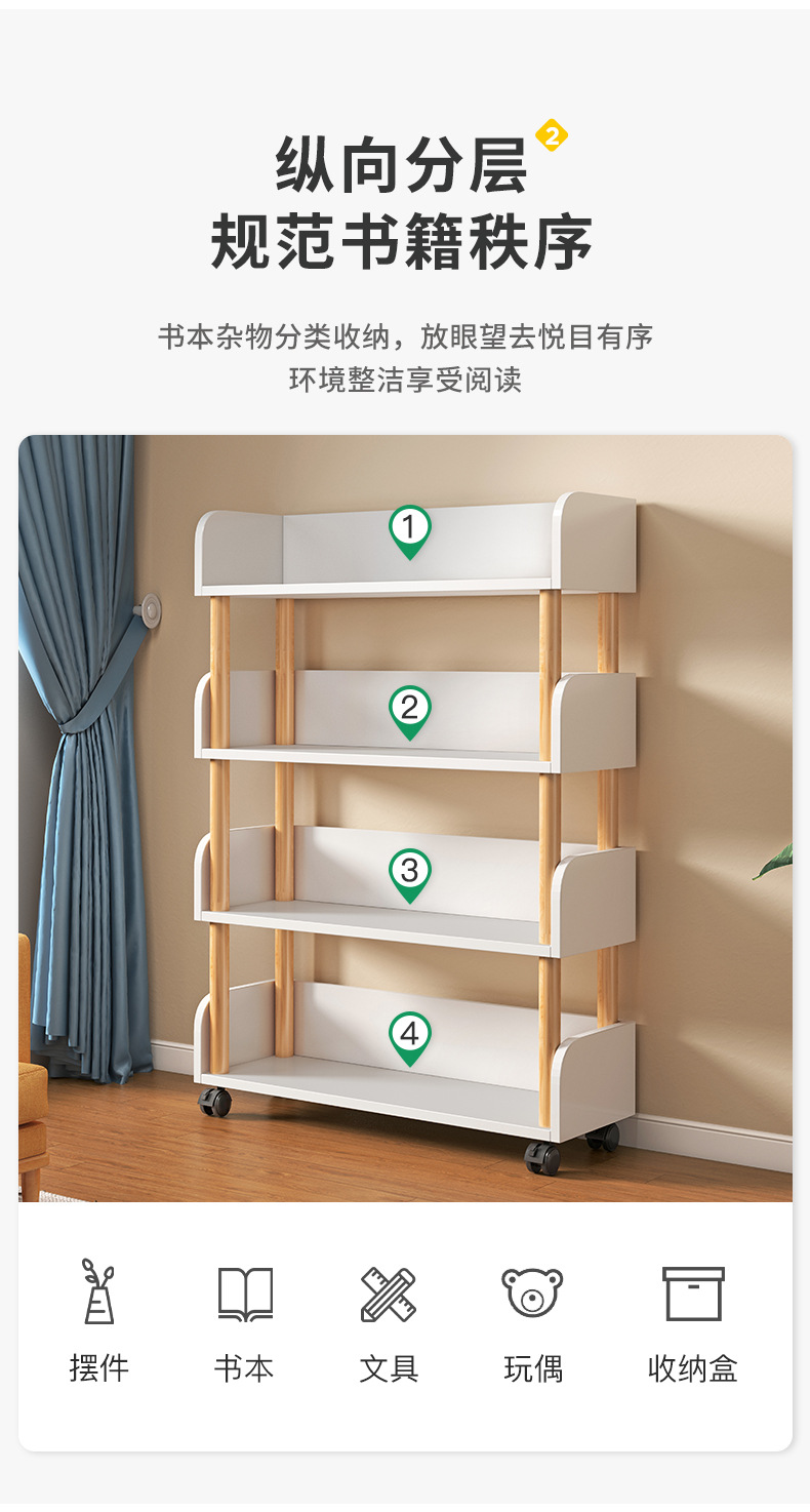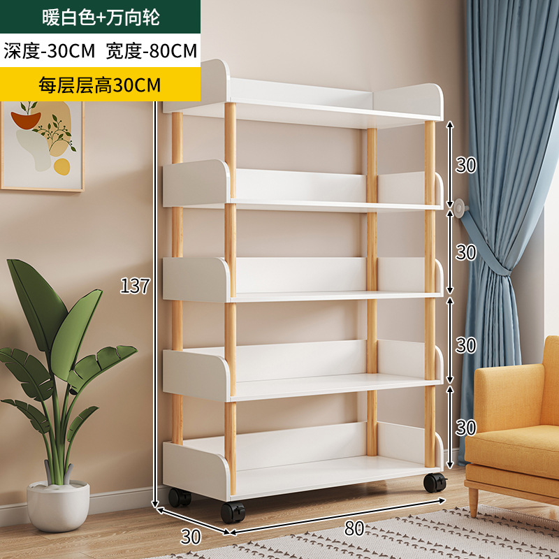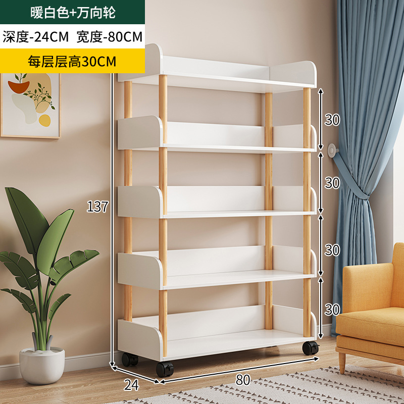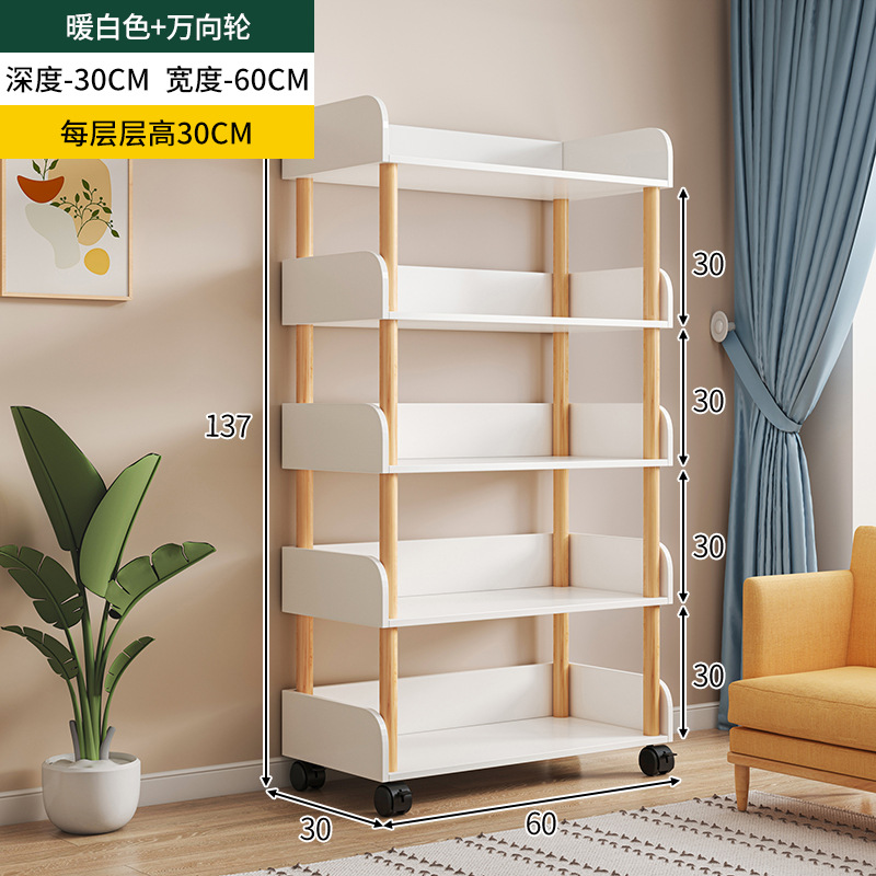 简易书桌旁桌边网红可移动小书架带轮置物架落地多层书本收纳架子
