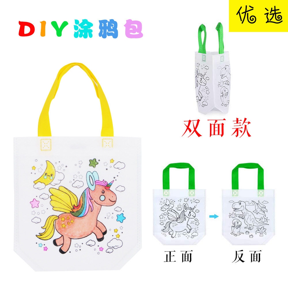 STD 부직포 그래피티 가방 어린이 생일 파티 선물 가방 그림 색칠 가방 양면 DIY 수제 CPCE