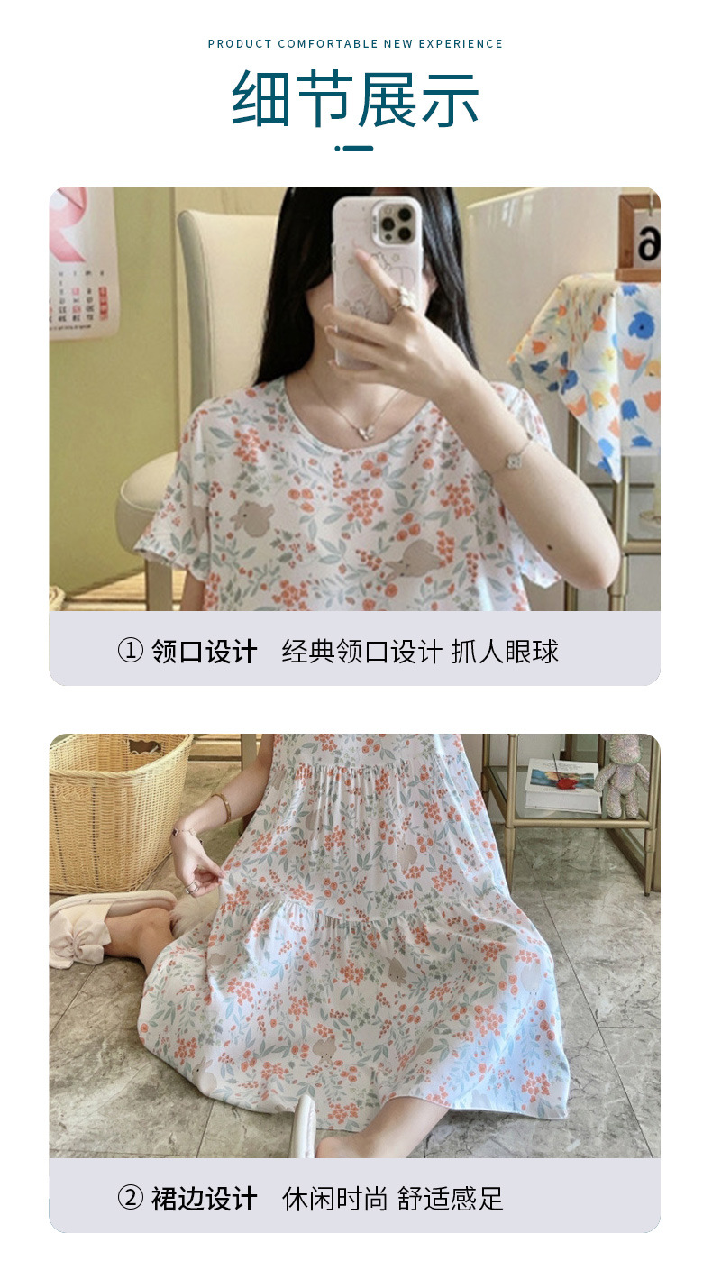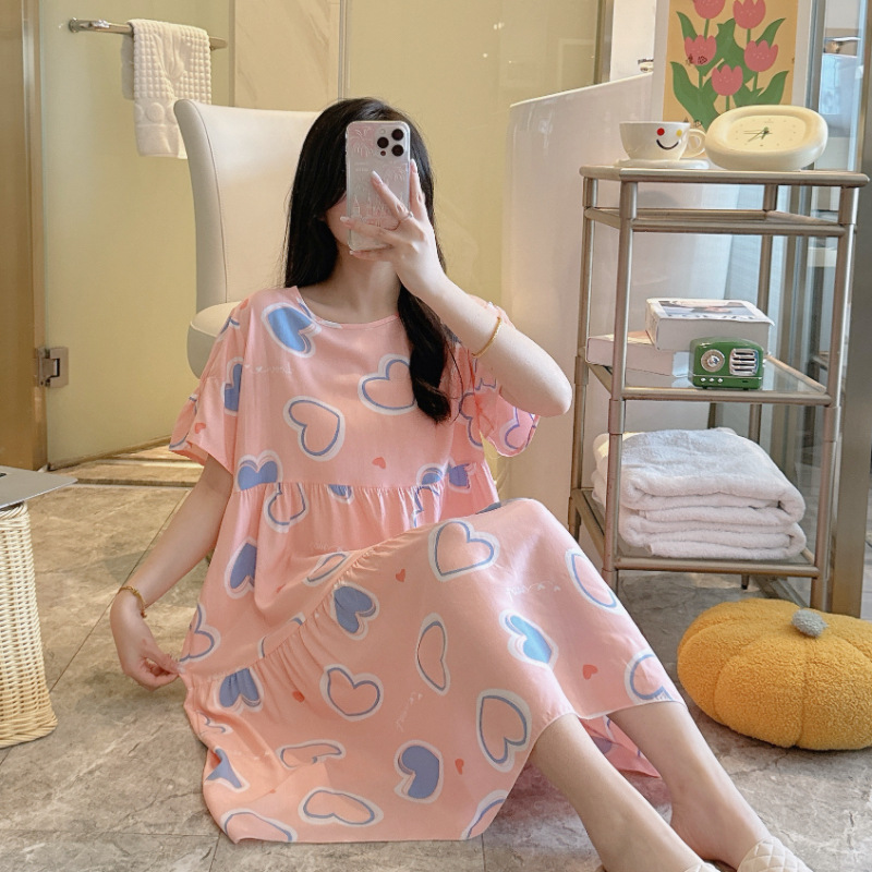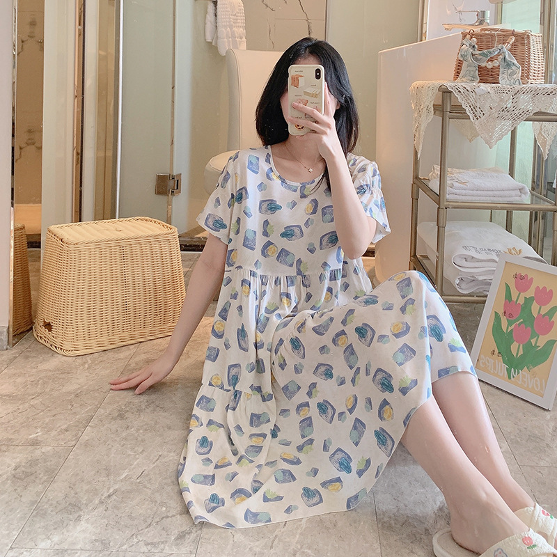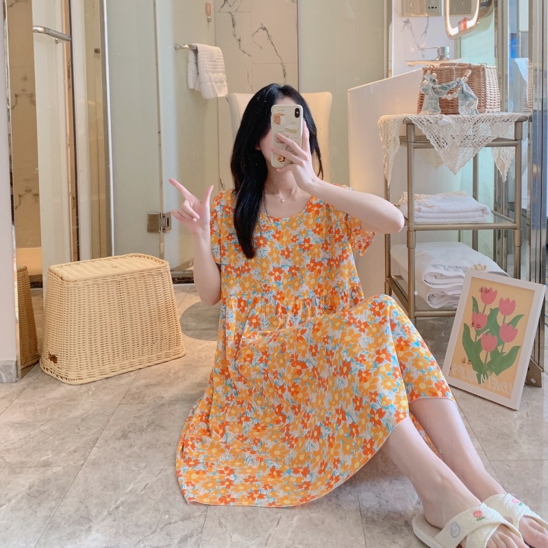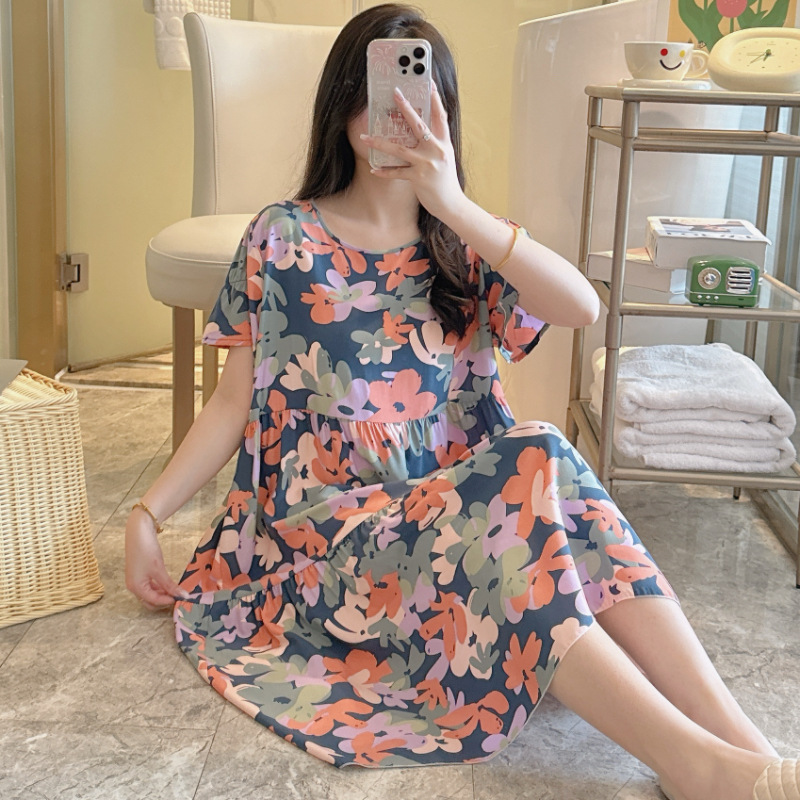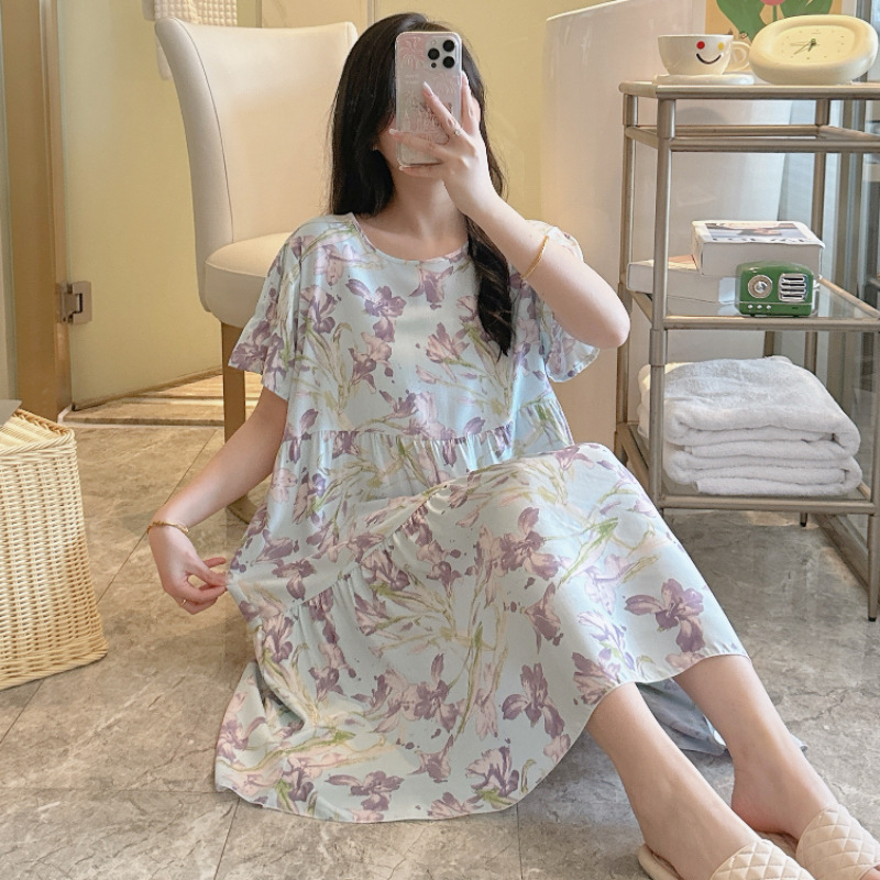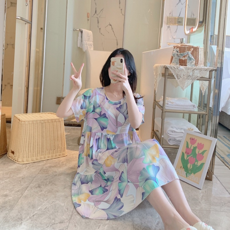 면 실크 잠옷 여성용 여름 반팔 대형 사이즈 수출용 프린트 잠옷 봄 가을 얇은 고급 레이온 홈웨어스토어 가기