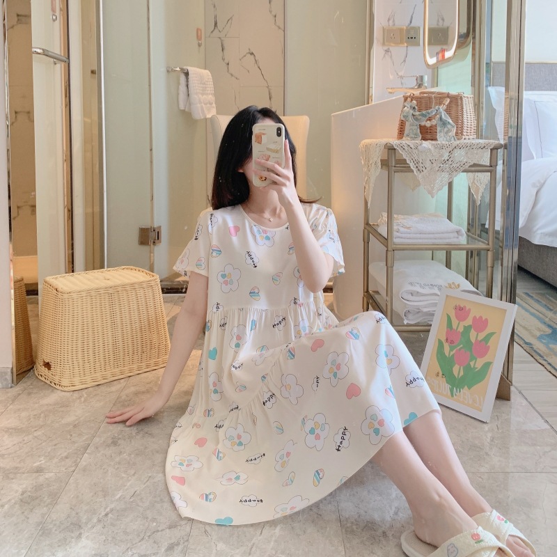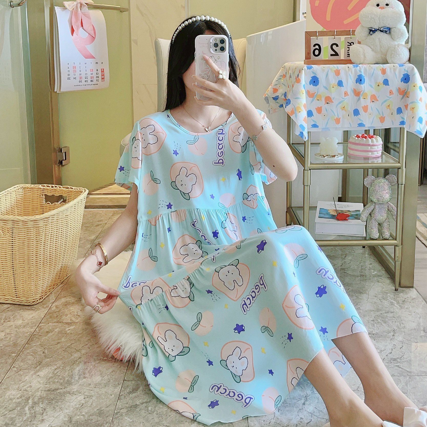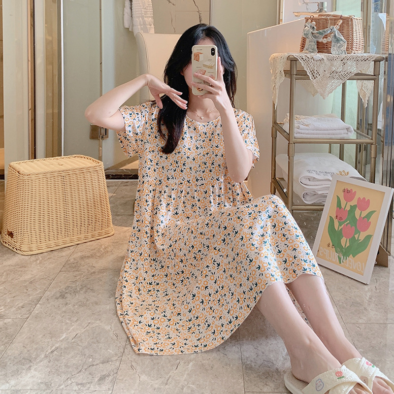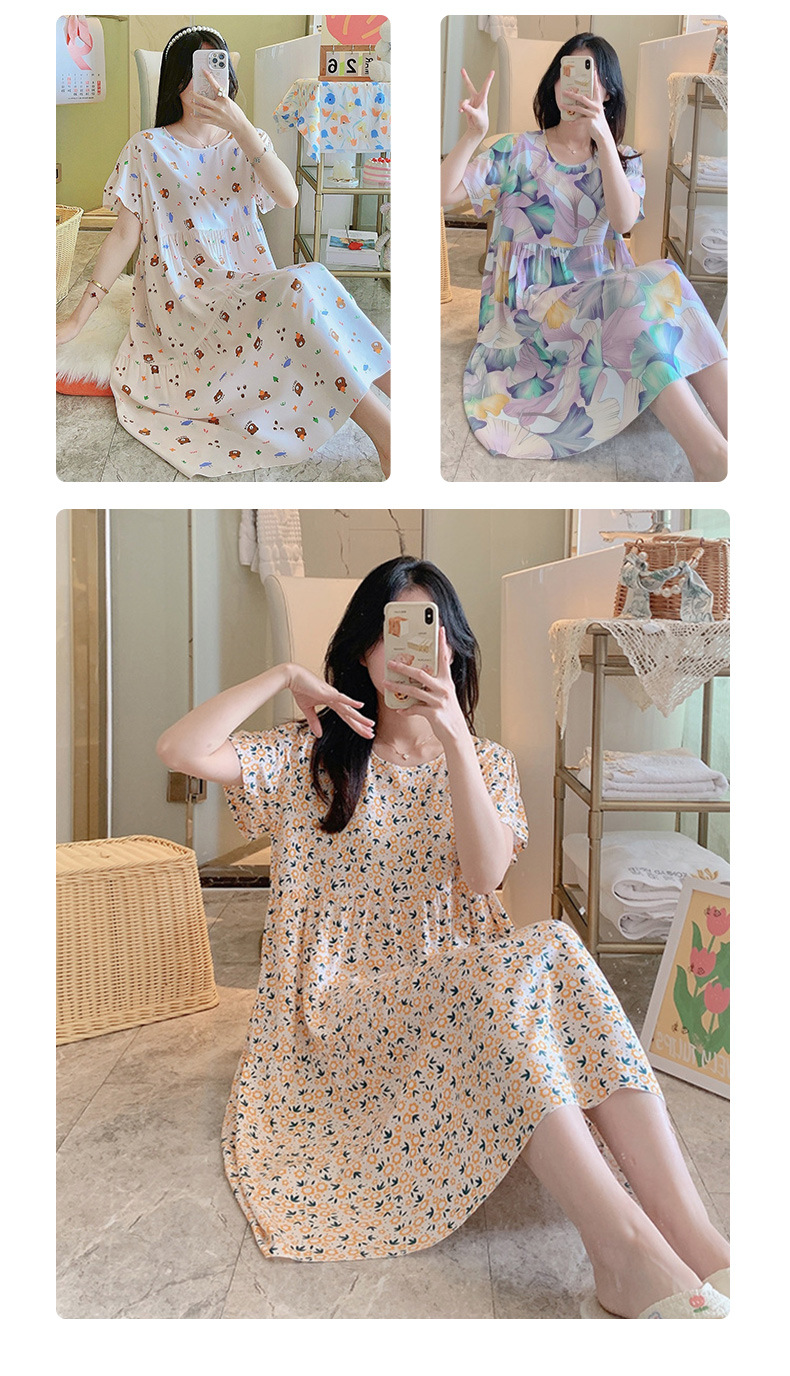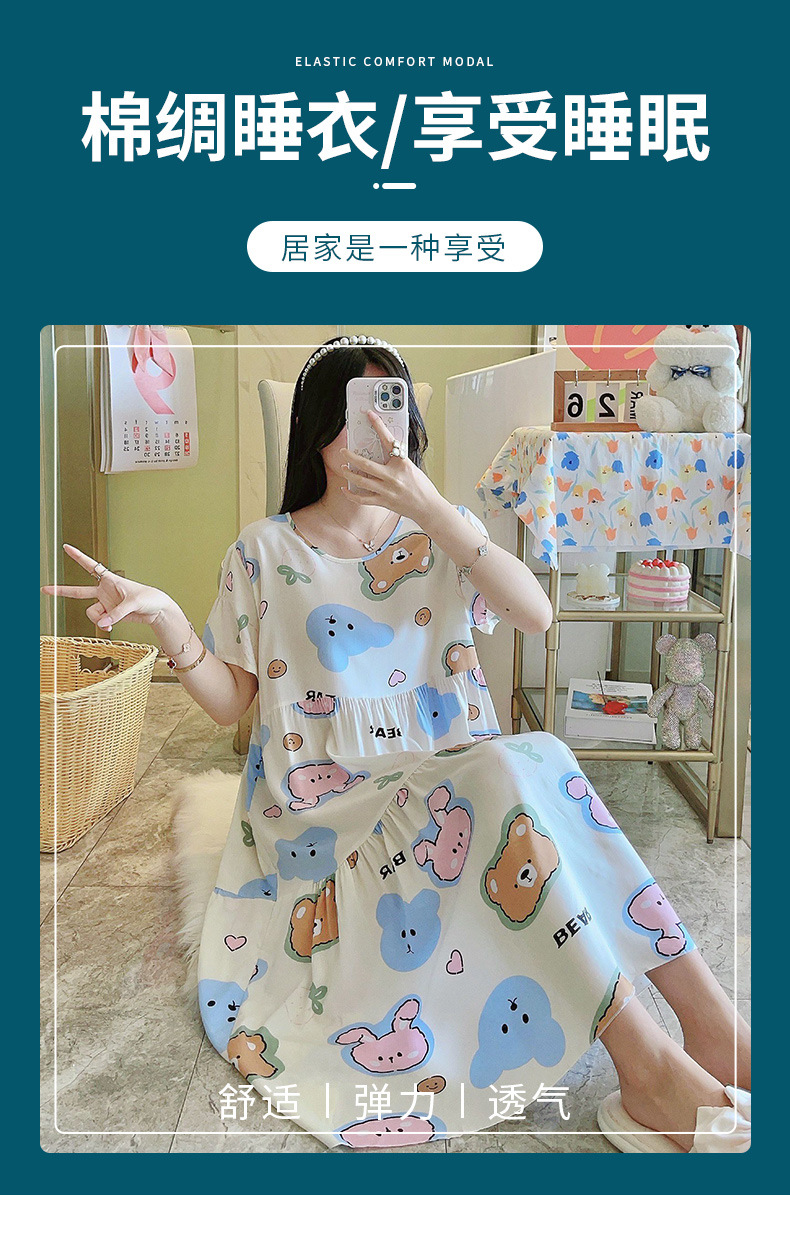 면 실크 잠옷 여성용 여름 반팔 대형 사이즈 수출용 프린트 잠옷 봄 가을 얇은 고급 레이온 홈웨어스토어 가기
