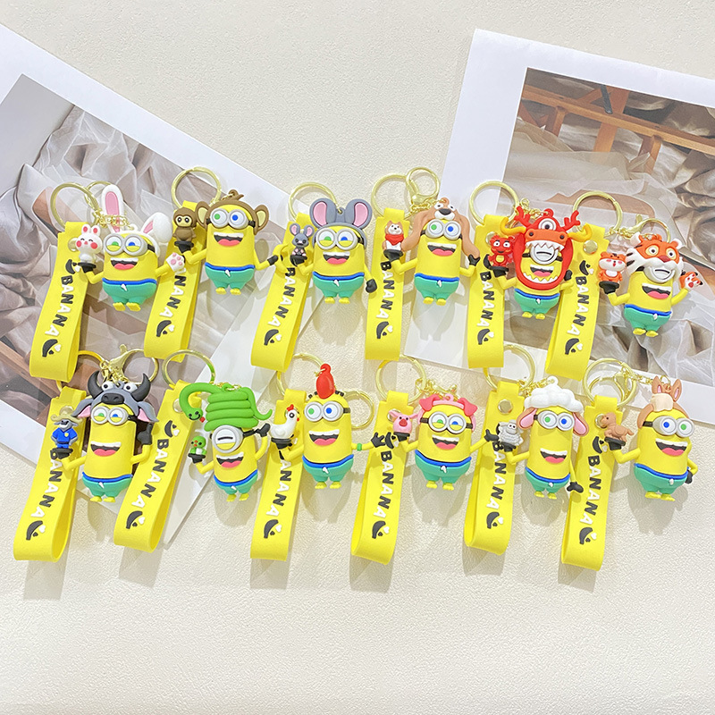 창조적 인 만화 조디악 인형 키 체인 국가 패션 펜던트 귀여운 노란색 PVC 키 체인 인형 매달려 장식품스토어 가기