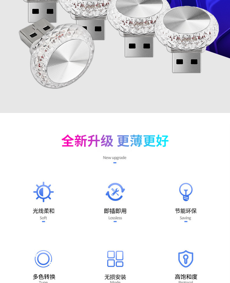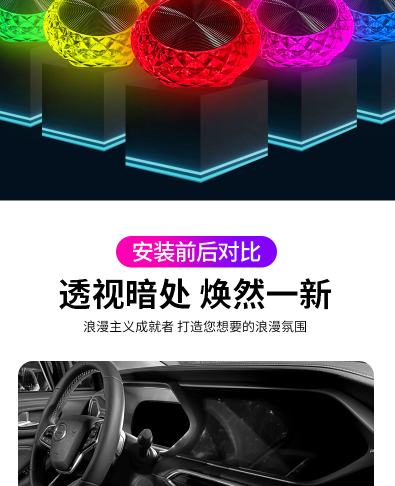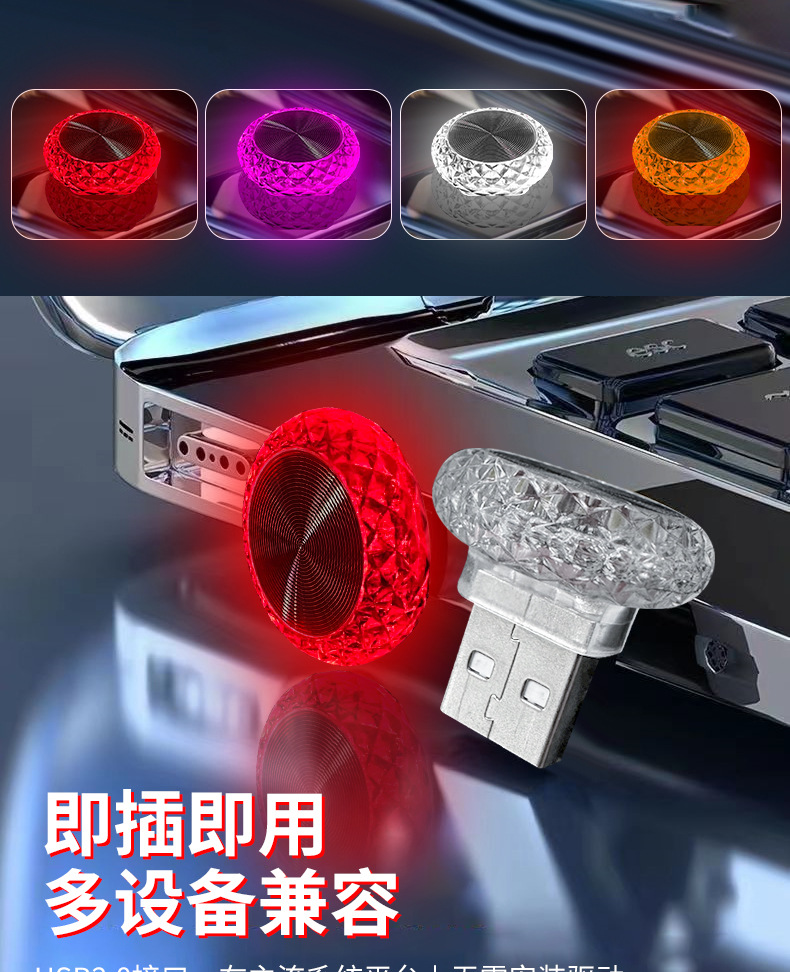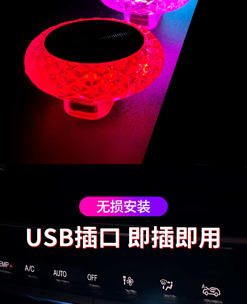 자동차 인테리어 분위기 가벼운 자동차 USB 야간 조명 조명 무선 깜박이는 다채로운 분위기 빛 변화 장식 용품