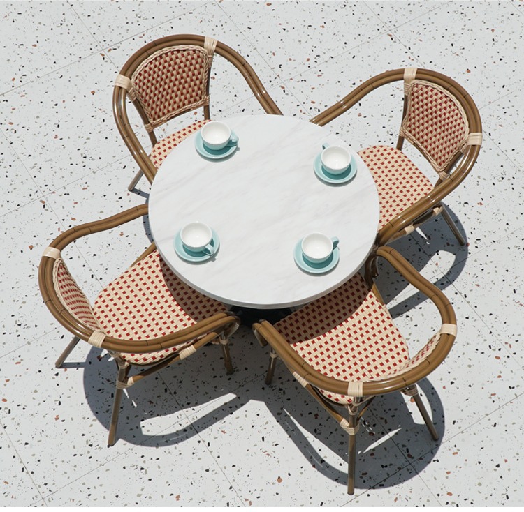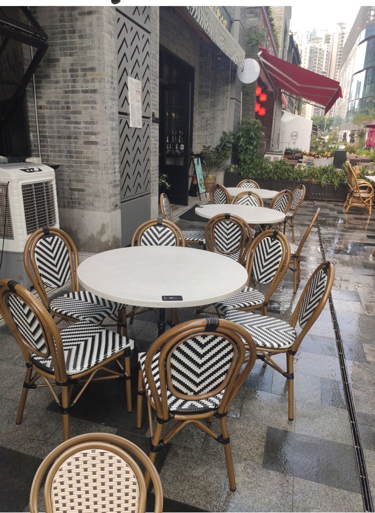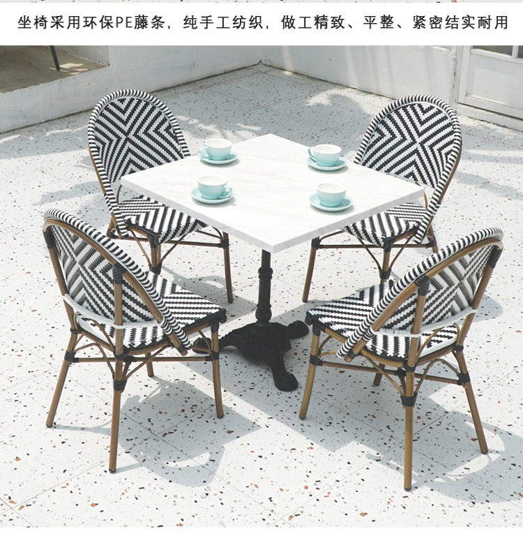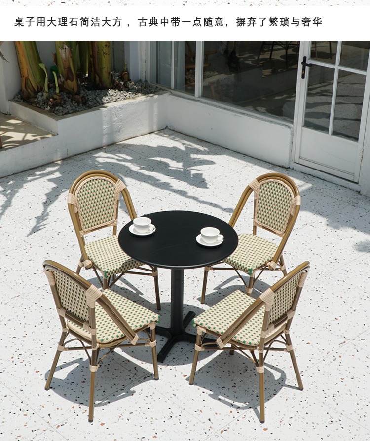 프랑스 식탁 서양 식당 바위 석판 대리석 테이블 카페 우유 차 가게 발코니 정원 야외 등나무 테이블 및 의자