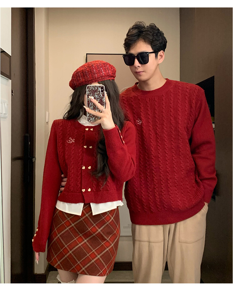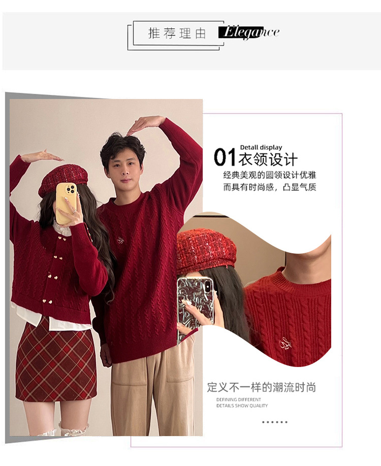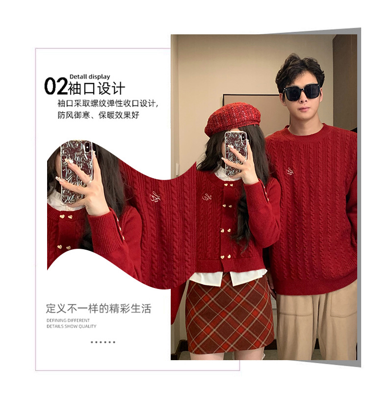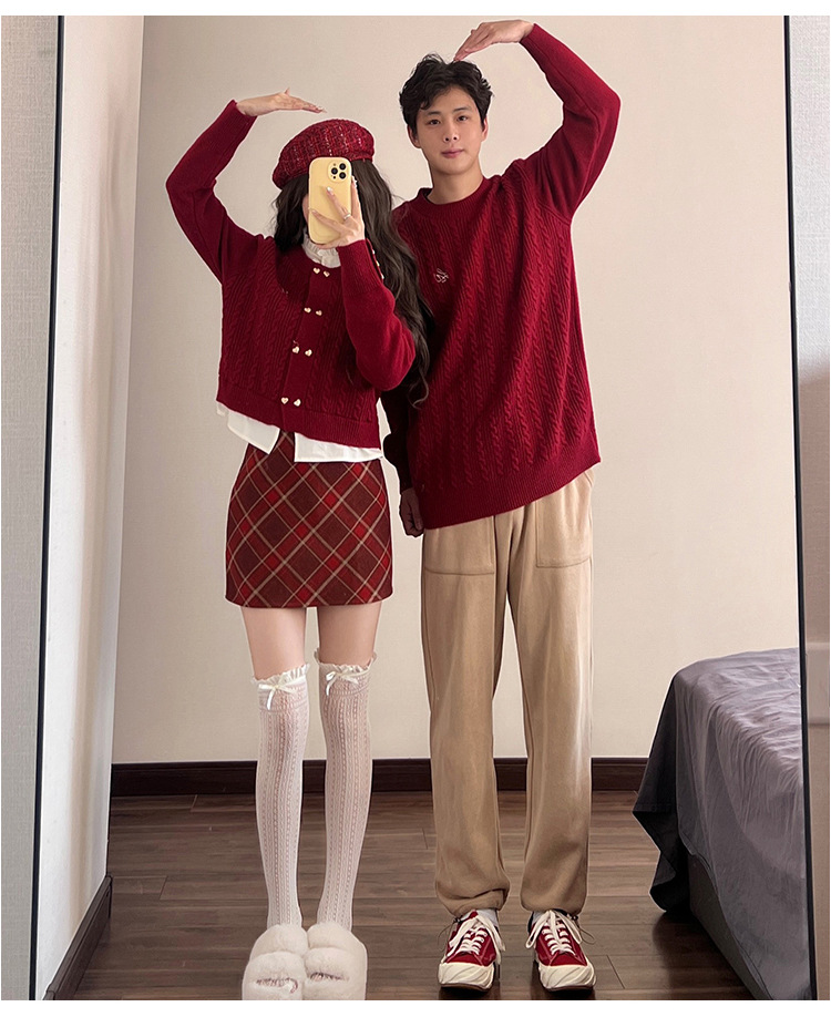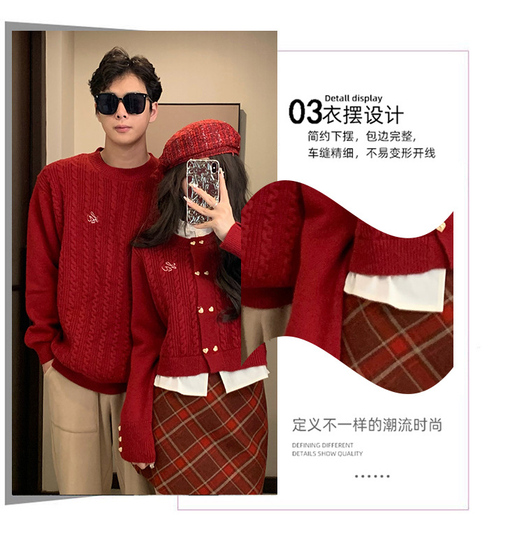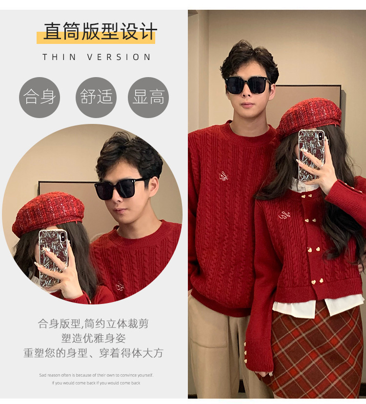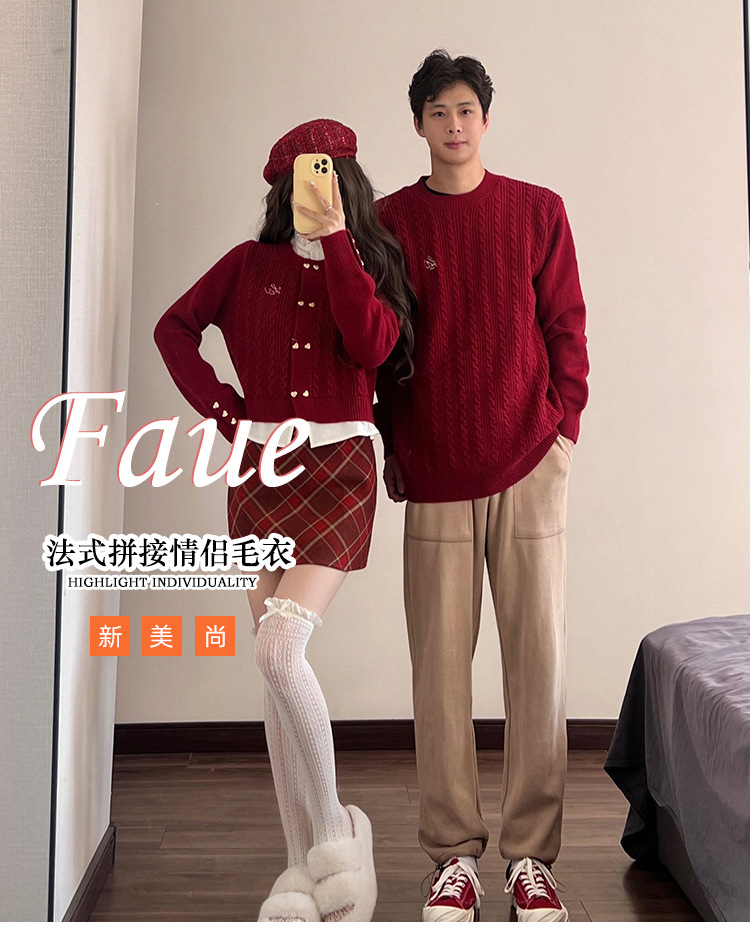 2023 년 가을 겨울 신년 크리스마스 원피스 커플 여성 가짜 투피스 스웨터 탑 니트 스웨터스토어 가기