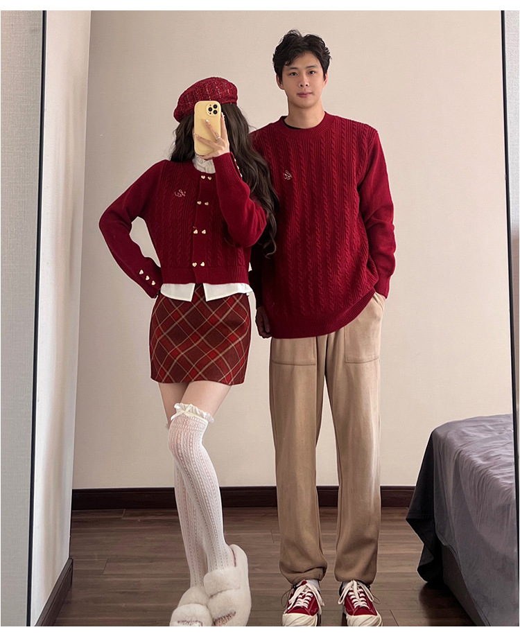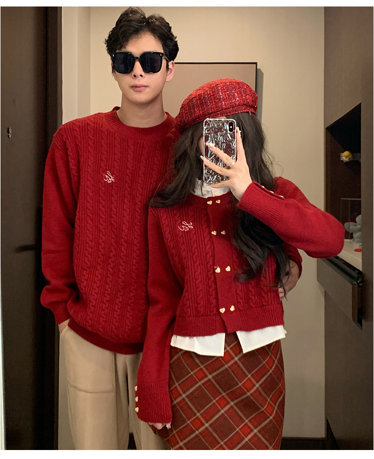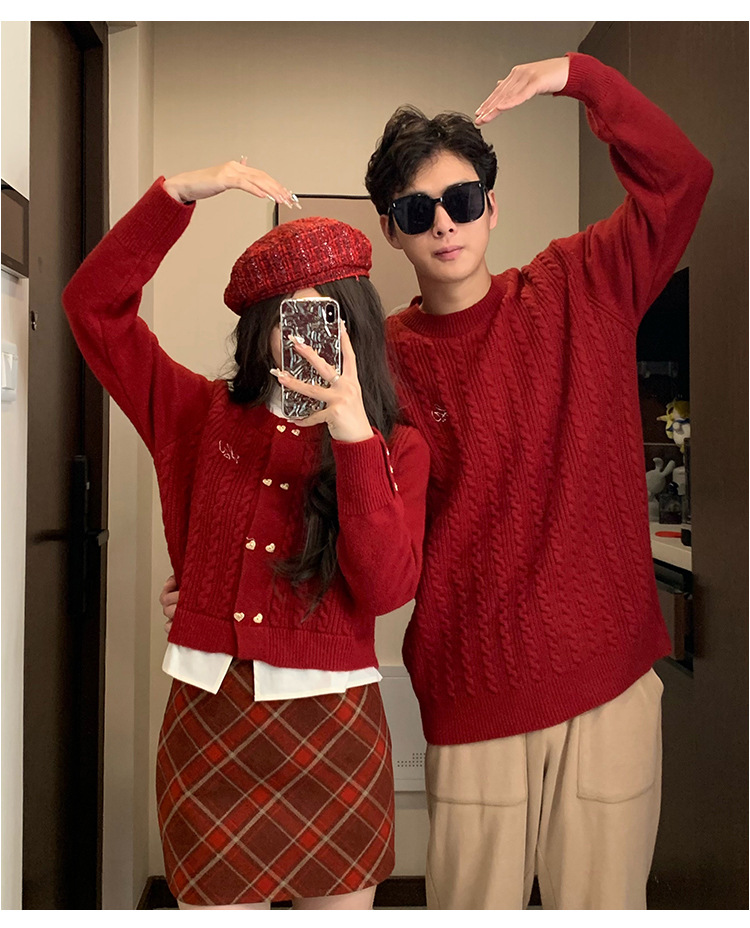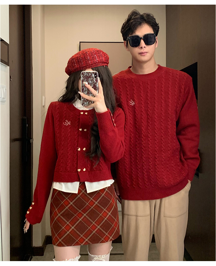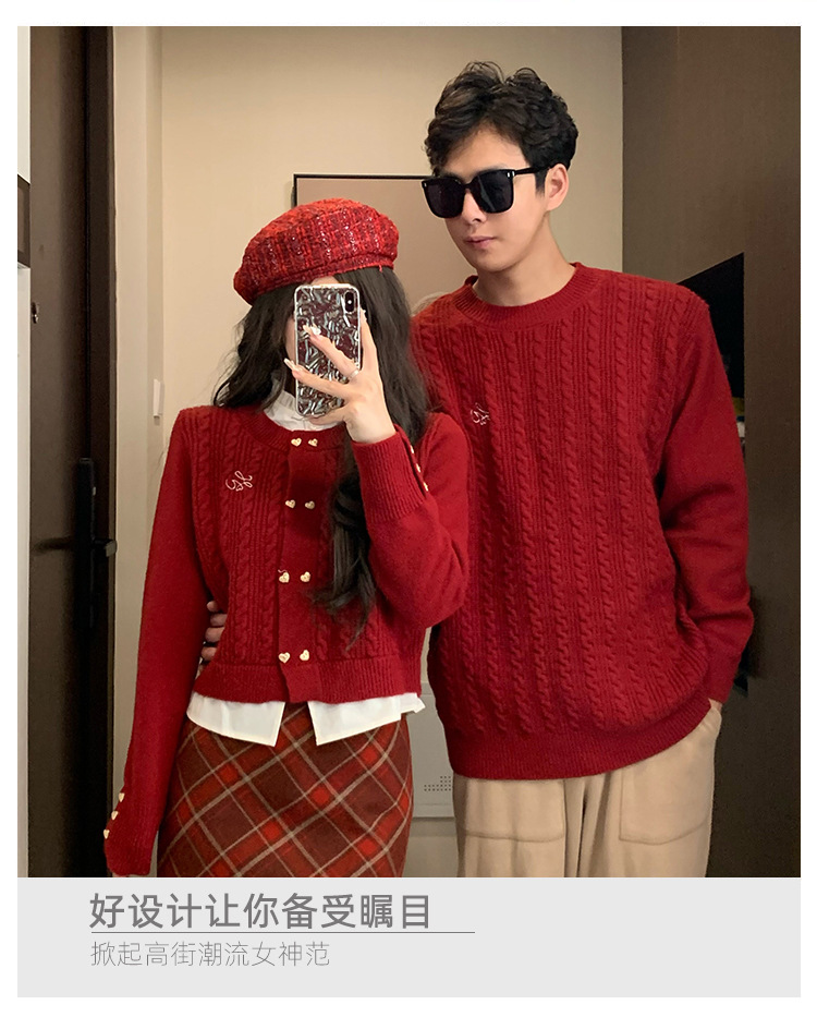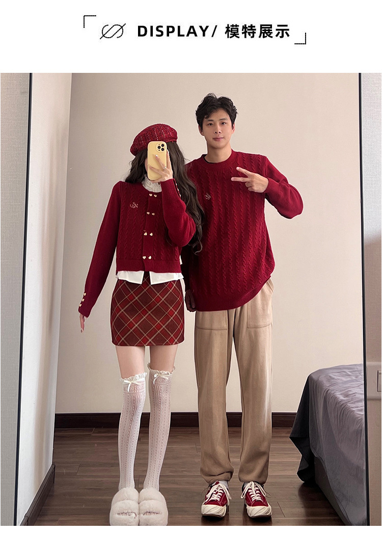 2023 년 가을 겨울 신년 크리스마스 원피스 커플 여성 가짜 투피스 스웨터 탑 니트 스웨터스토어 가기