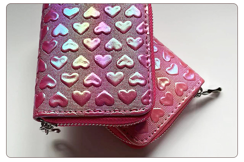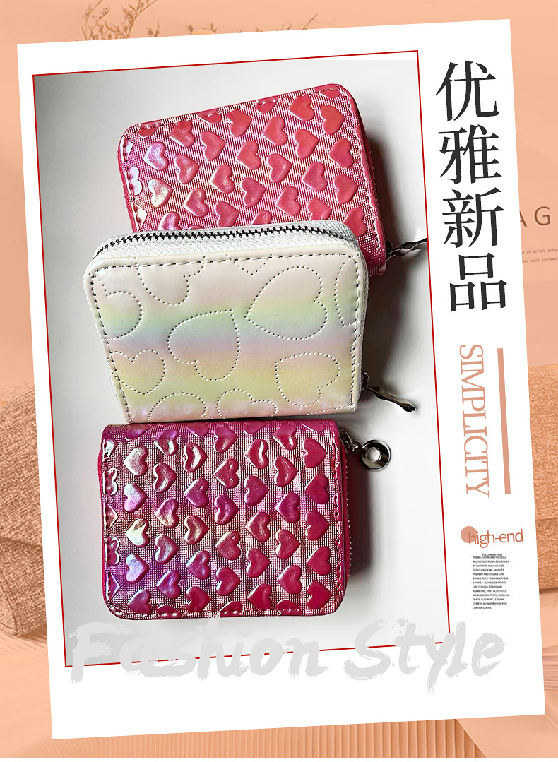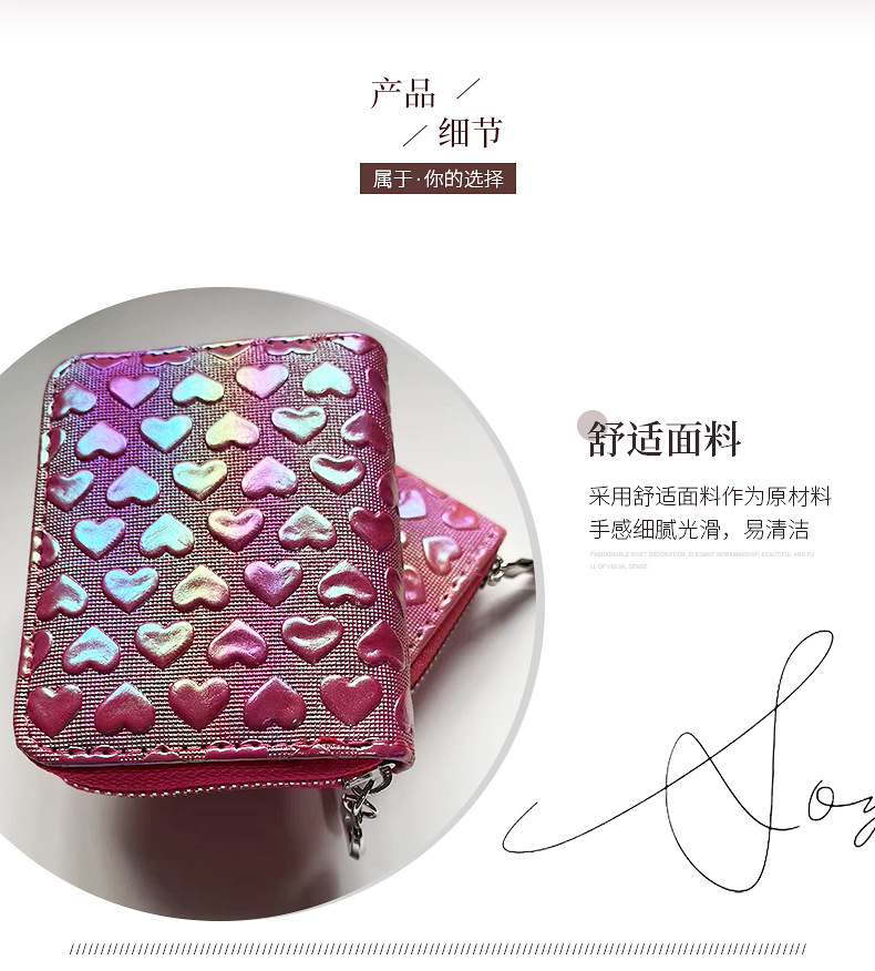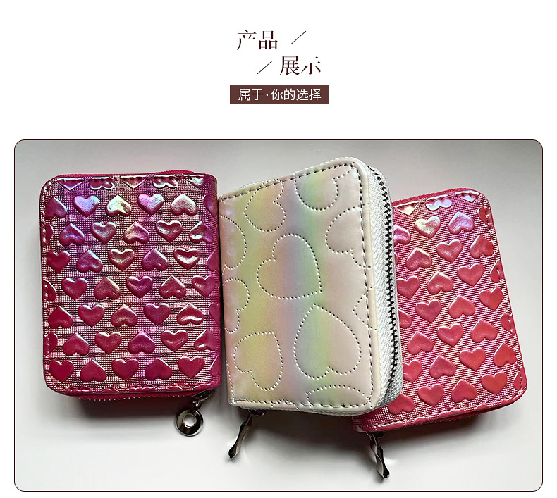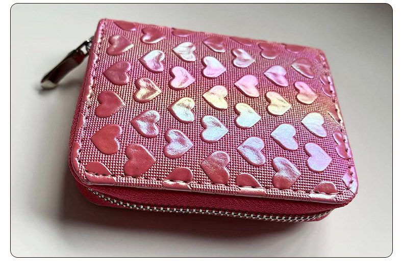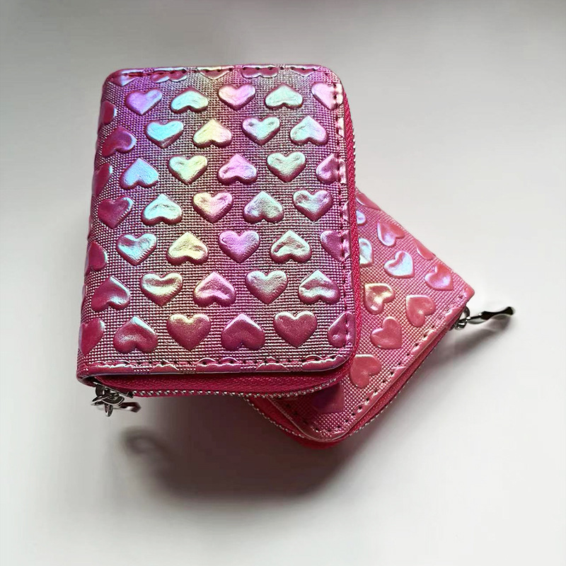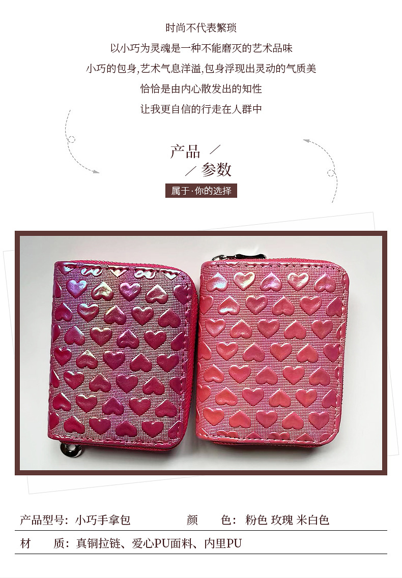 2025년 여성용 지갑 신상 짧은형 하트 모양 지갑 베이직 핑크색 짧은형 지갑 PU 가죽 지갑스토어 가기
