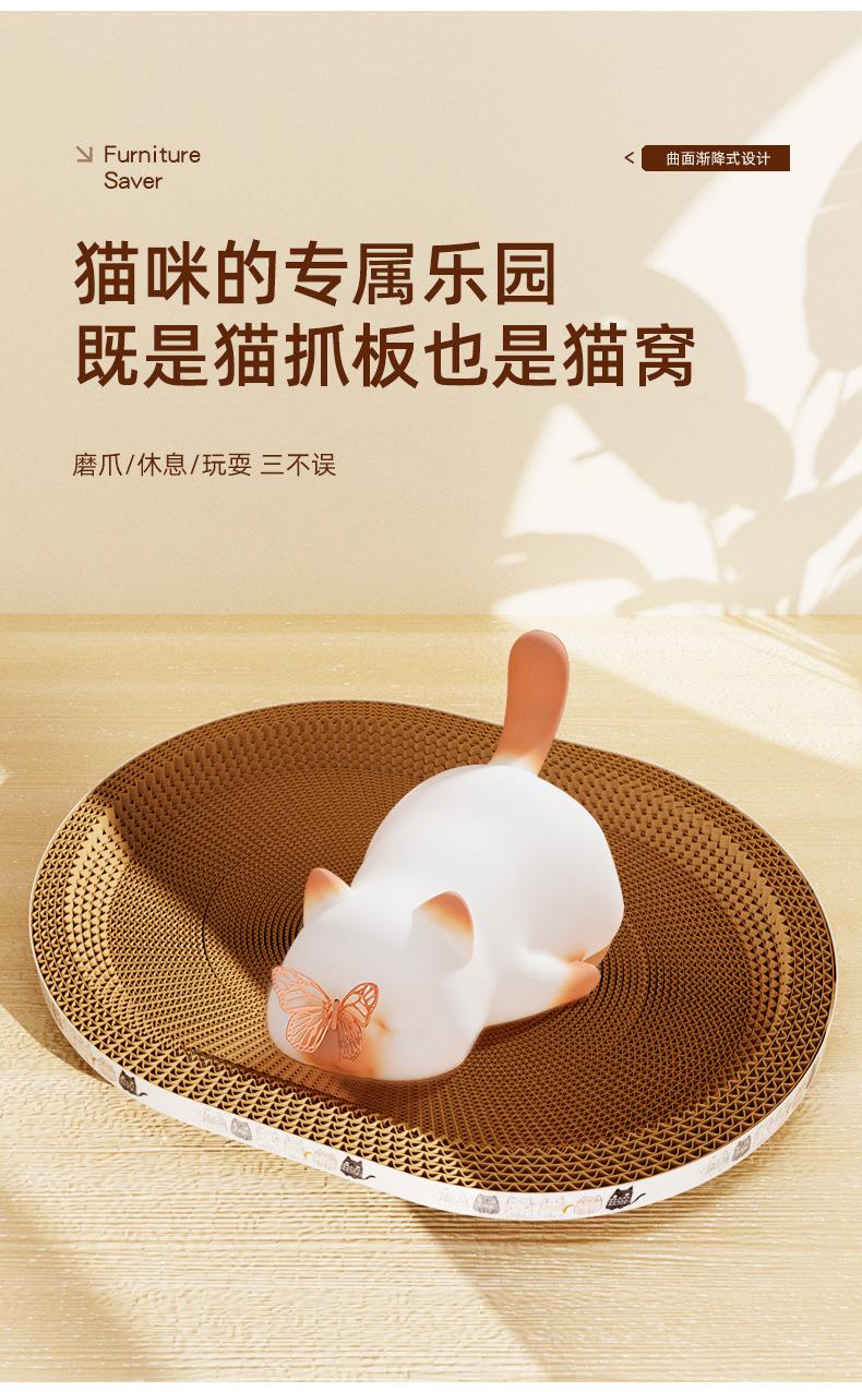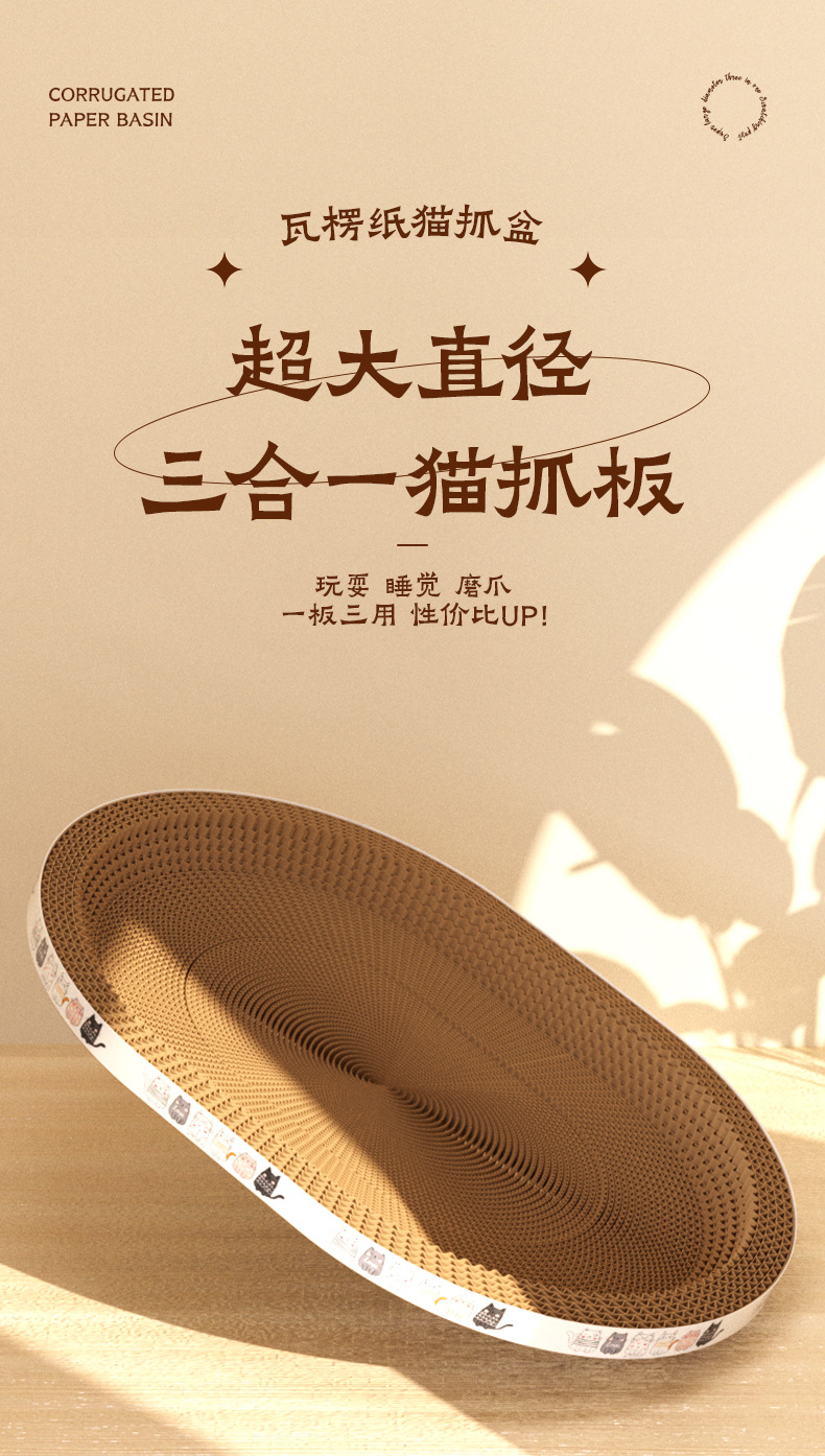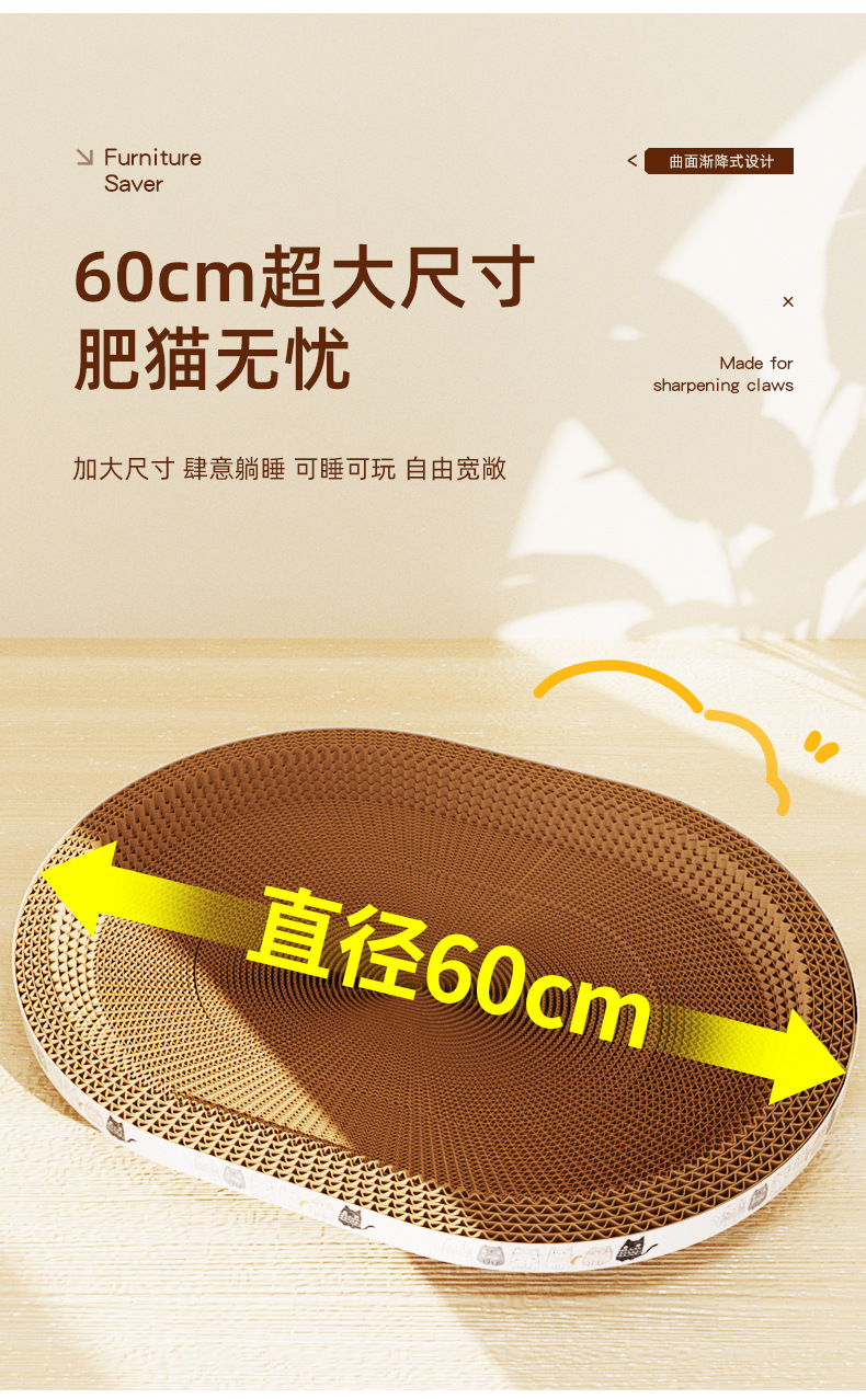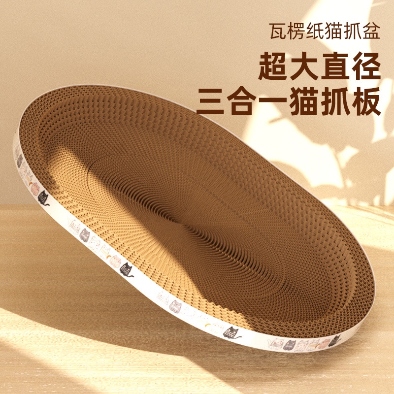 대형 골판지 고양이 스크래치 보드 타원형 고양이 스크래치 분지 고양이 둥지 초대형 라운드 고양이 장난감 고양이 용품 그릇 유형스토어 가기