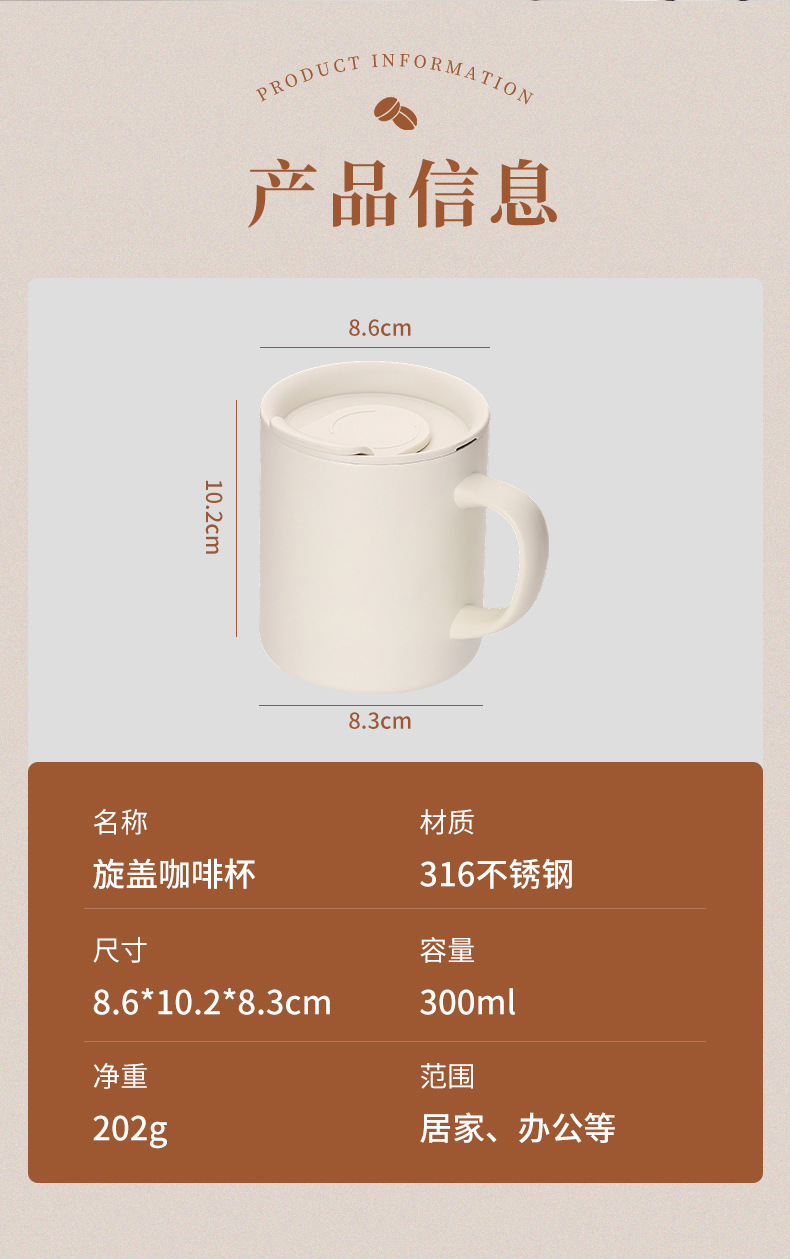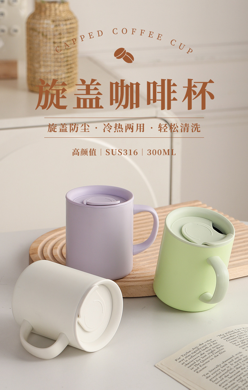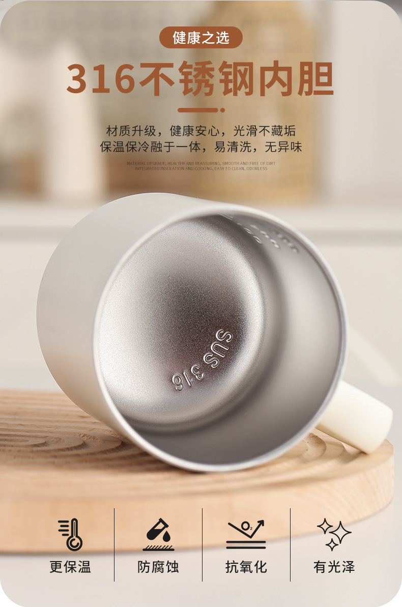 손잡이가 있는 창의적인 이중층 316 스테인레스 스틸 보온 커피 컵, 사무실 단열 가정용 물컵