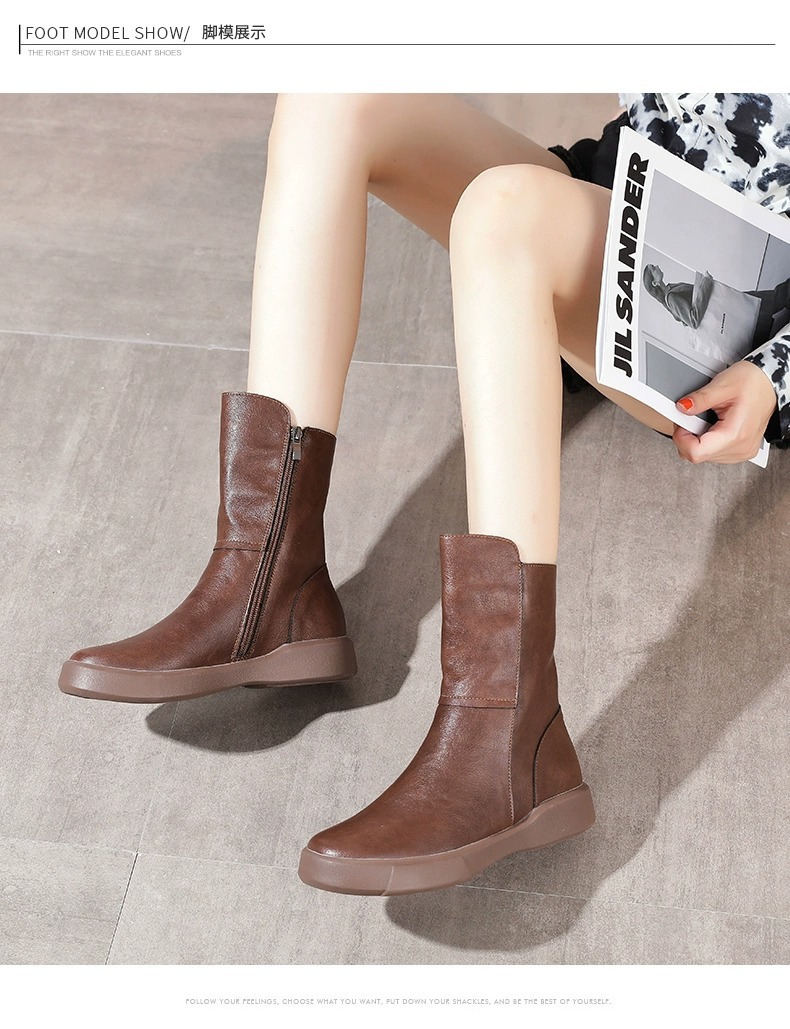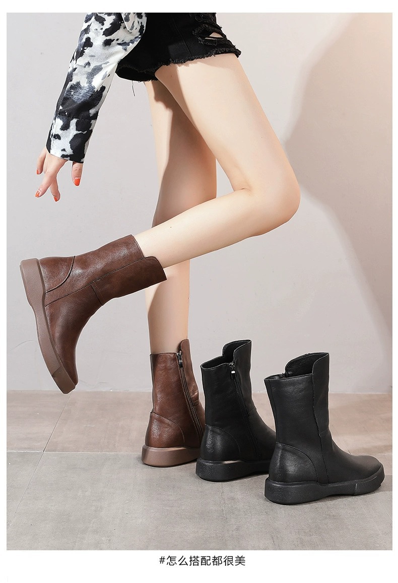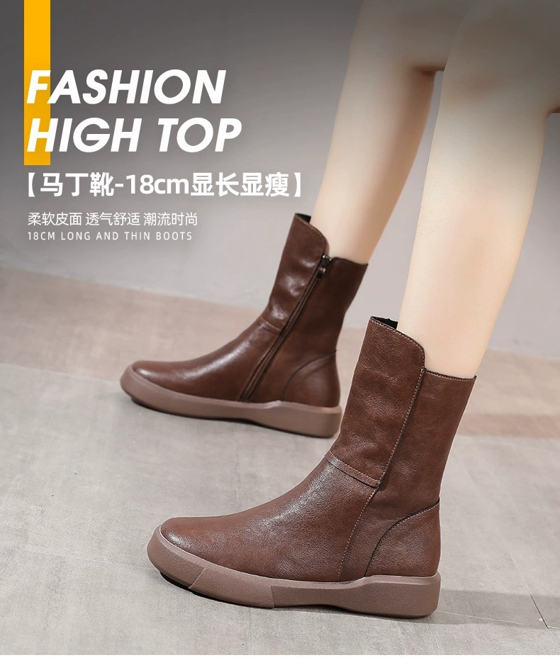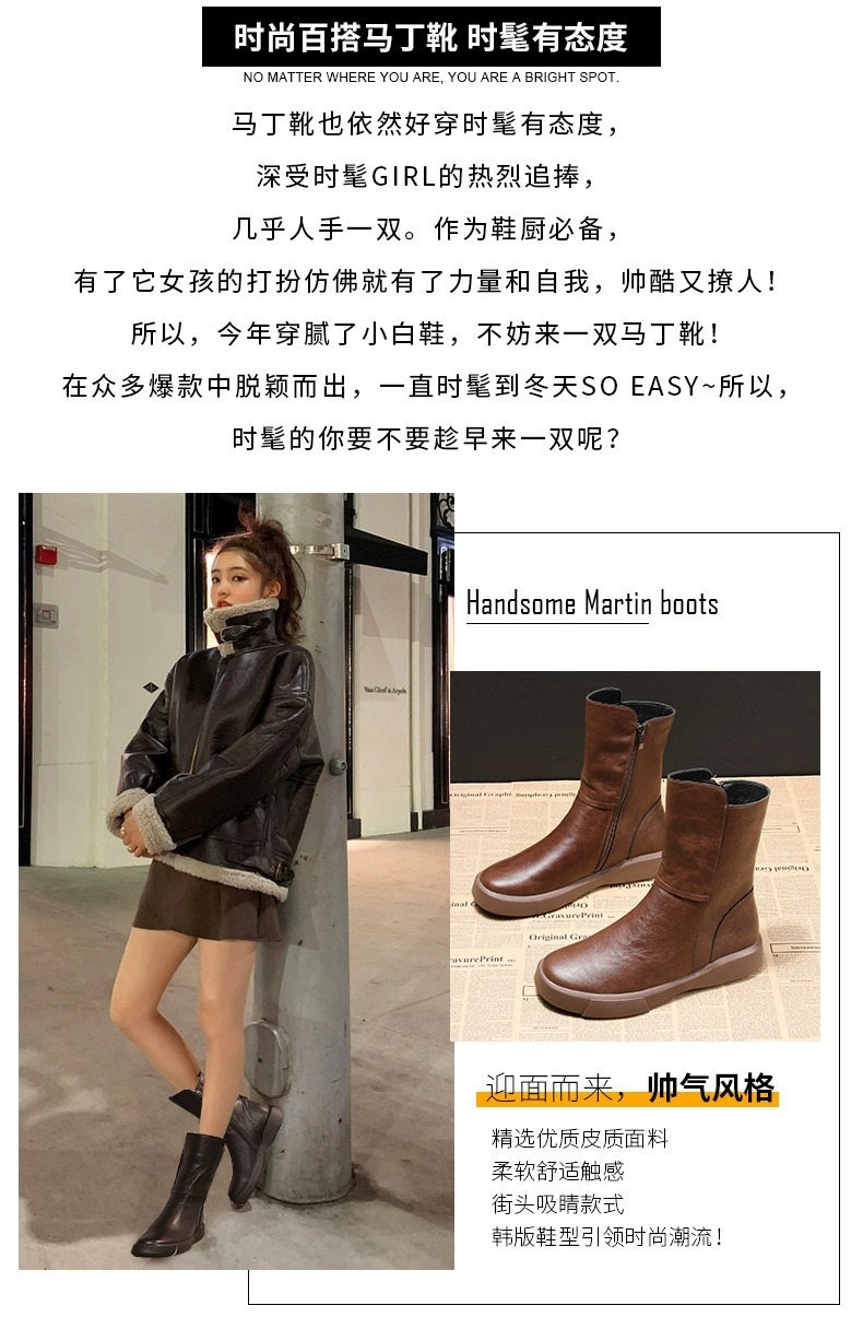 마틴 부츠 2026년 신상 여성 가을 겨울 영국풍 레트로 부츠 나이트 부츠 플러스 벨벳 플랫솔 미드부츠