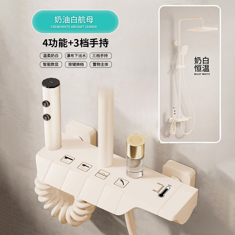 크림 스타일 화이트 일정한 온도 샤워 세트 샤워 욕실 가정용 피아노 키 레인 샤워 헤드 샤워 노즐스토어 가기