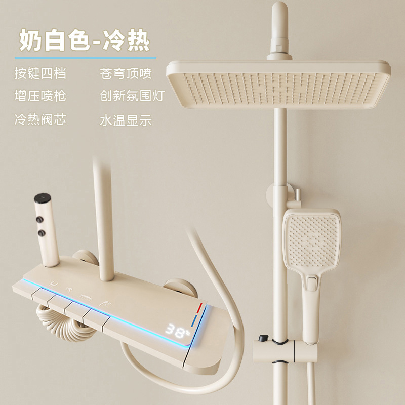 크림 스타일 화이트 일정한 온도 샤워 세트 샤워 욕실 가정용 피아노 키 레인 샤워 헤드 샤워 노즐