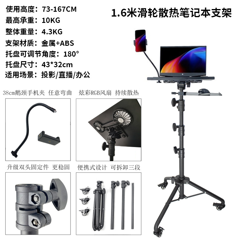 • 1.6 m 도르래 냉각 트레이 + 고정 마우스 트레이 + 휴대 전화 호스 클램프